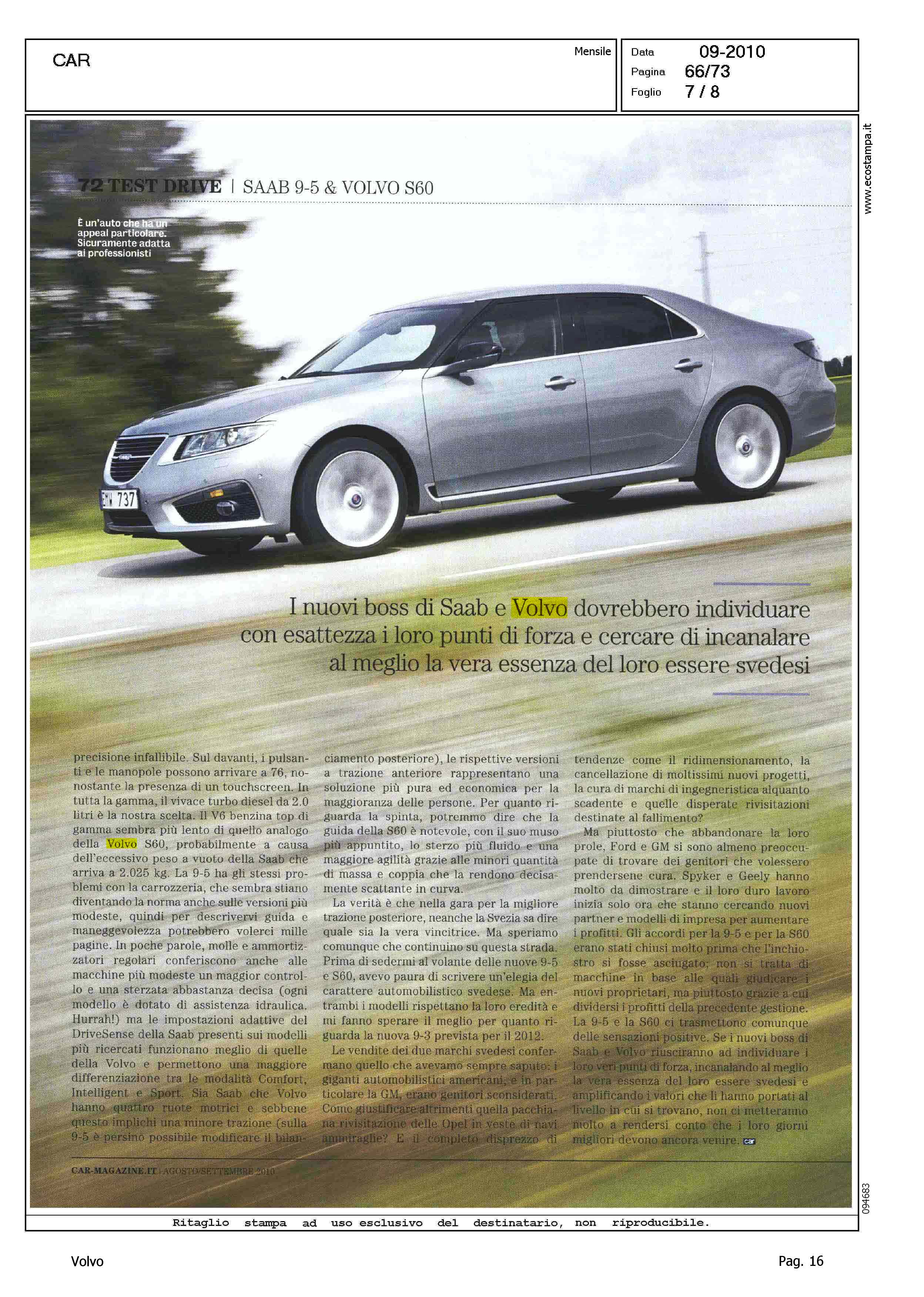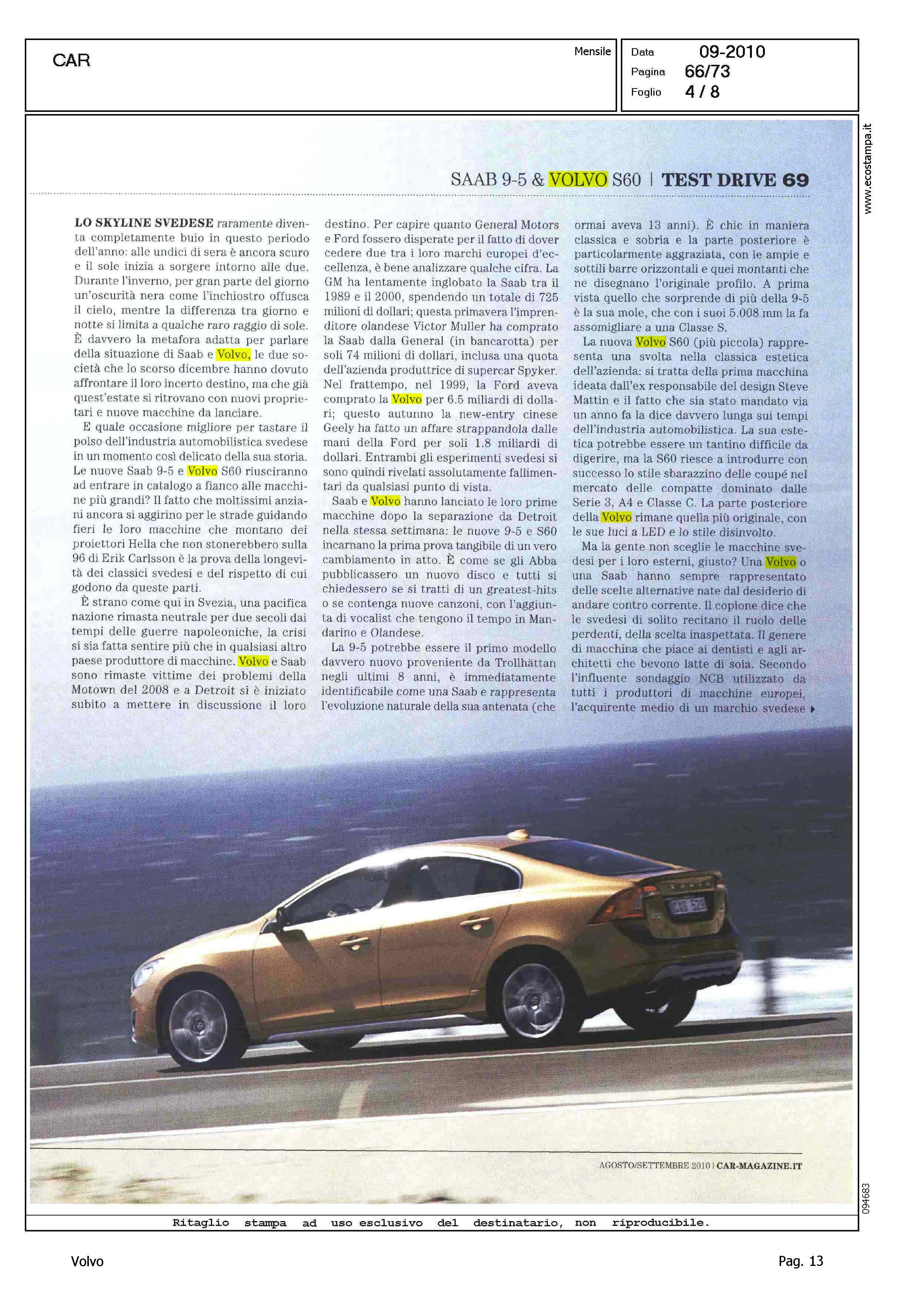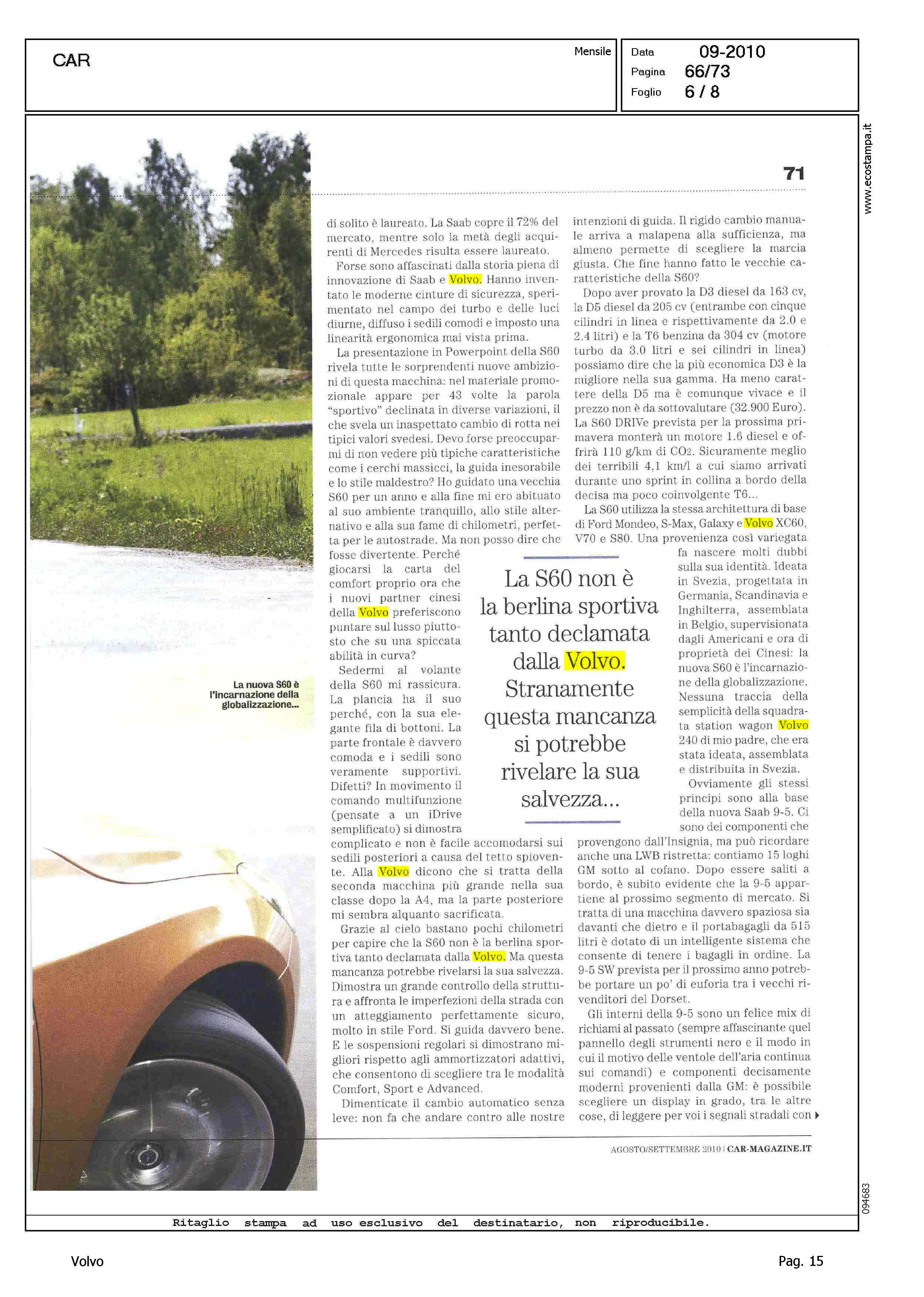 Author: Line: S60 Model: Linea S60 Testdrive Subject: - Title: IL SOGNO SVEDESEHighlight: GEELY - DESIGN - SICUREZZA - ABITACOLO - INTERNI - DINAMICA DI MARCIA - CAMBIO - MOTORI - PREZZO - ASSETTO