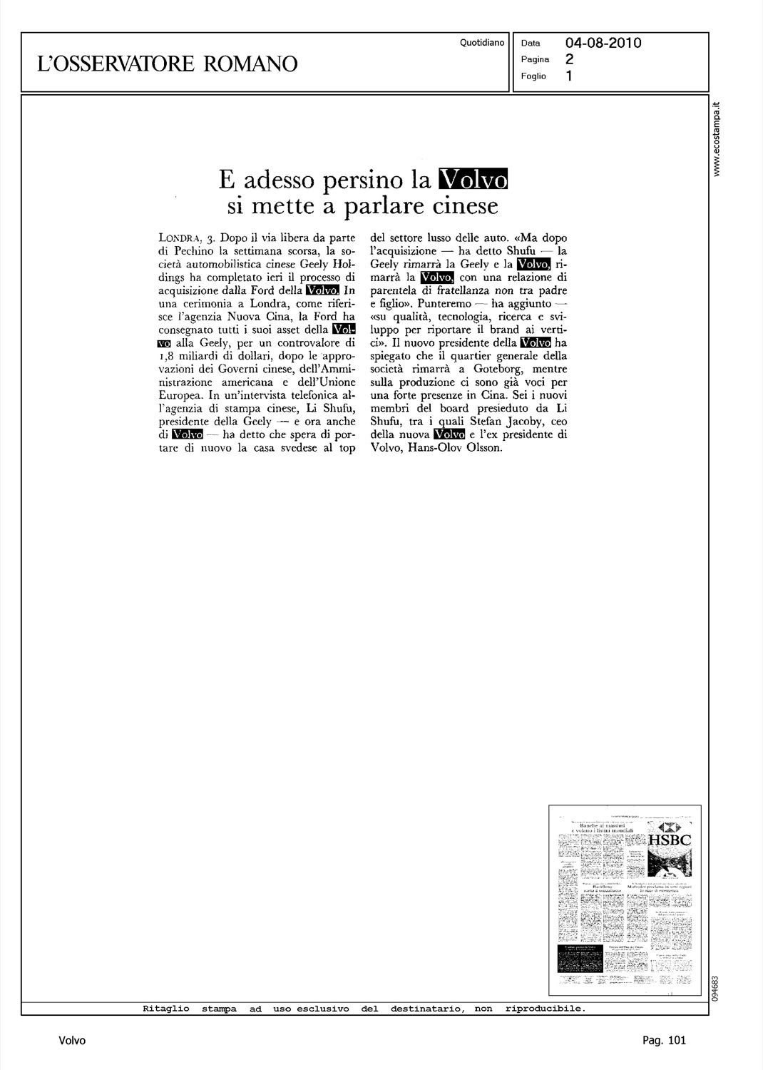 Author: Line: Corporate Model: Corporate Subject: - Title: E ADESSO PERSINO LA VOLVO SI METTE A PARLARE CINESEHighlight: GEELY - VOLVO