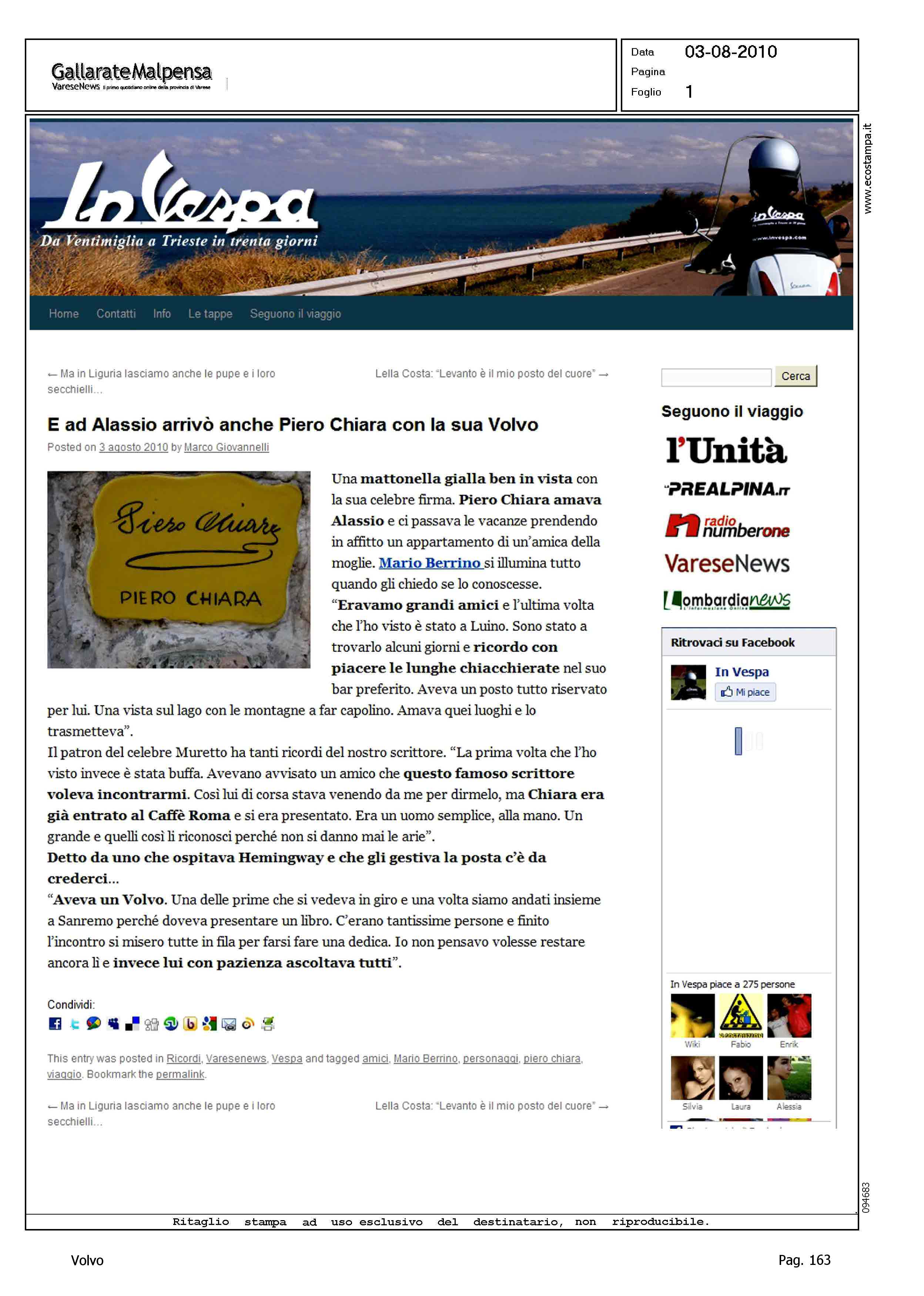 Author: Line: Corporate Model: Corporate Subject: - Title: E AD ALASSIO ARRIVO' ANCHE PIERO CHIARA CON LA SUA VOLVOHighlight: PIERO CHIARA - ALASSIO - COLORE