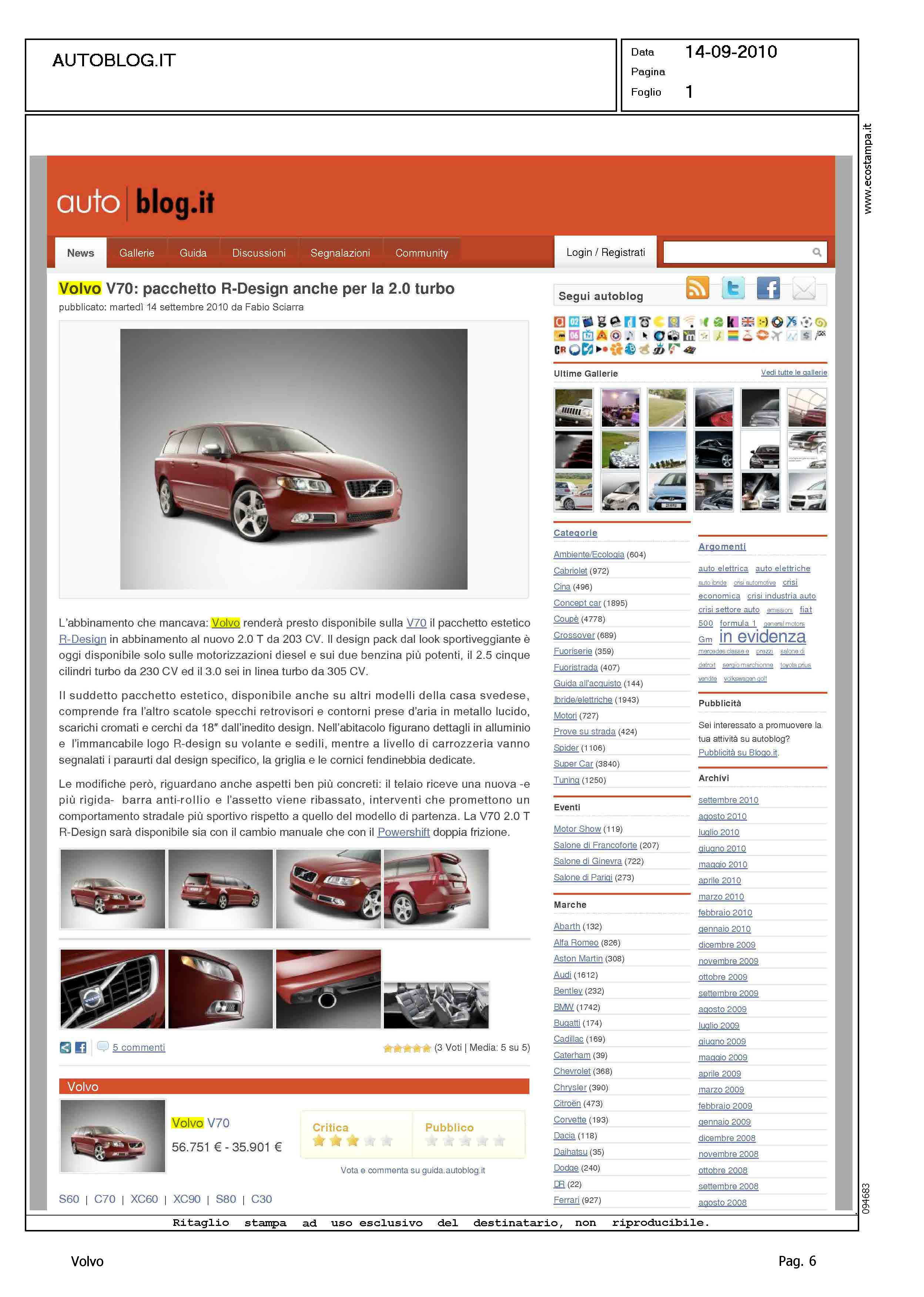 Author: Line: Corporate Model: Volvo V70 Subject: - Title: VOLVO V70: PACCHETTO R-DESIGN ANCHE PER LA 2.0 TURBOHighlight: DESIGN - MOTORE - ALLESTIMENTO - POWERSHIFT