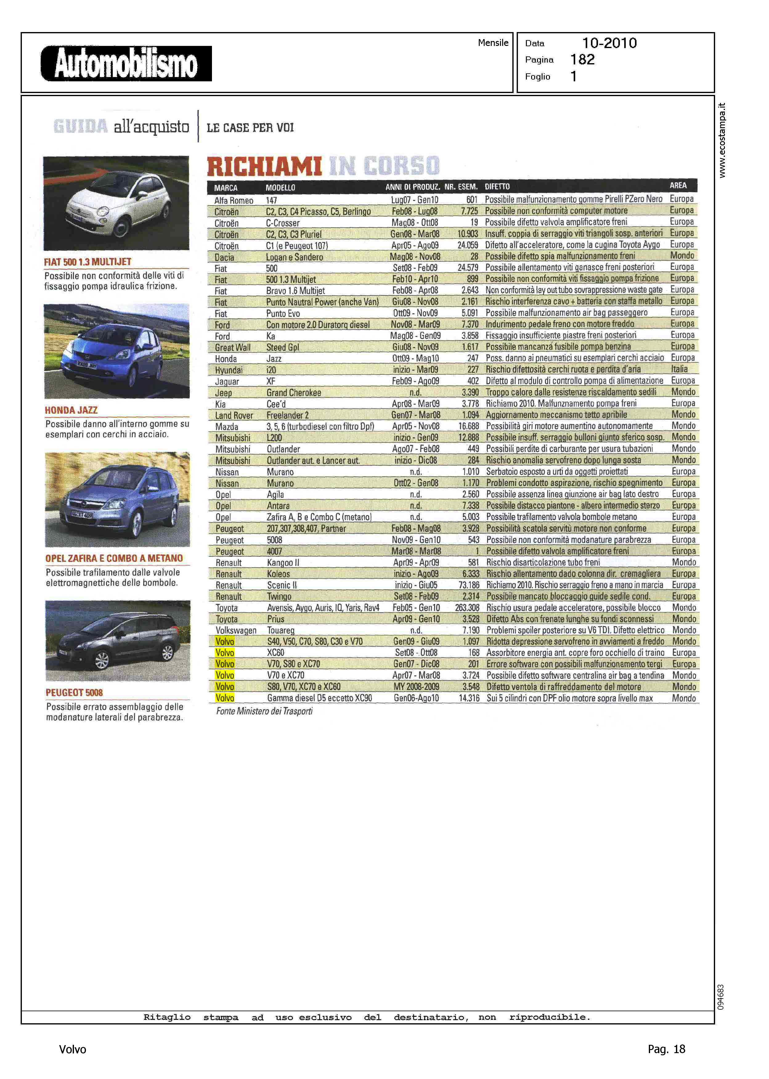 Author: Line: Corporate Model: Corporate Subject: - Title: LE CASE PER VOI - RICHIAMIHighlight: TABELLA RICHIAMI - MODELLI VOLVO