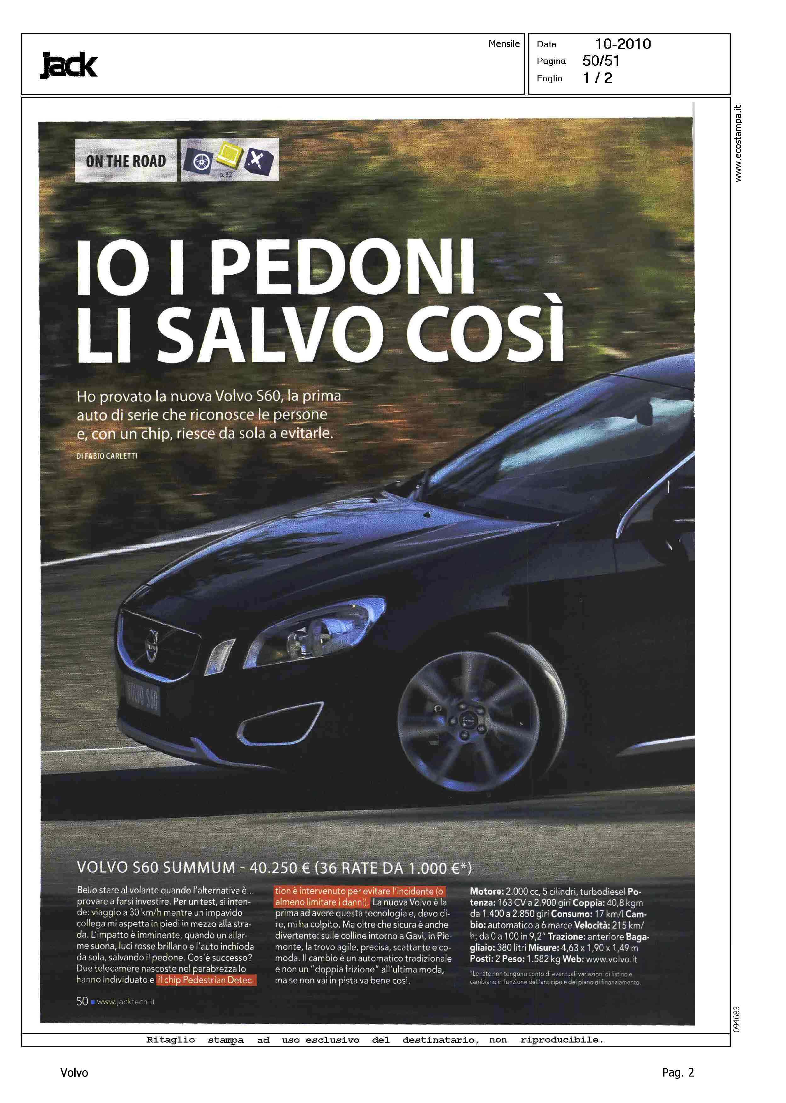 Highlight: MILANO - SICUREZZA - PEDESTRIAN DETECTION - DINAMICA DI MARCIA - CAMBIO - SCHEDA TECNICA MOTORE - DISPOSITIVI SICUREZZA - TELAIO