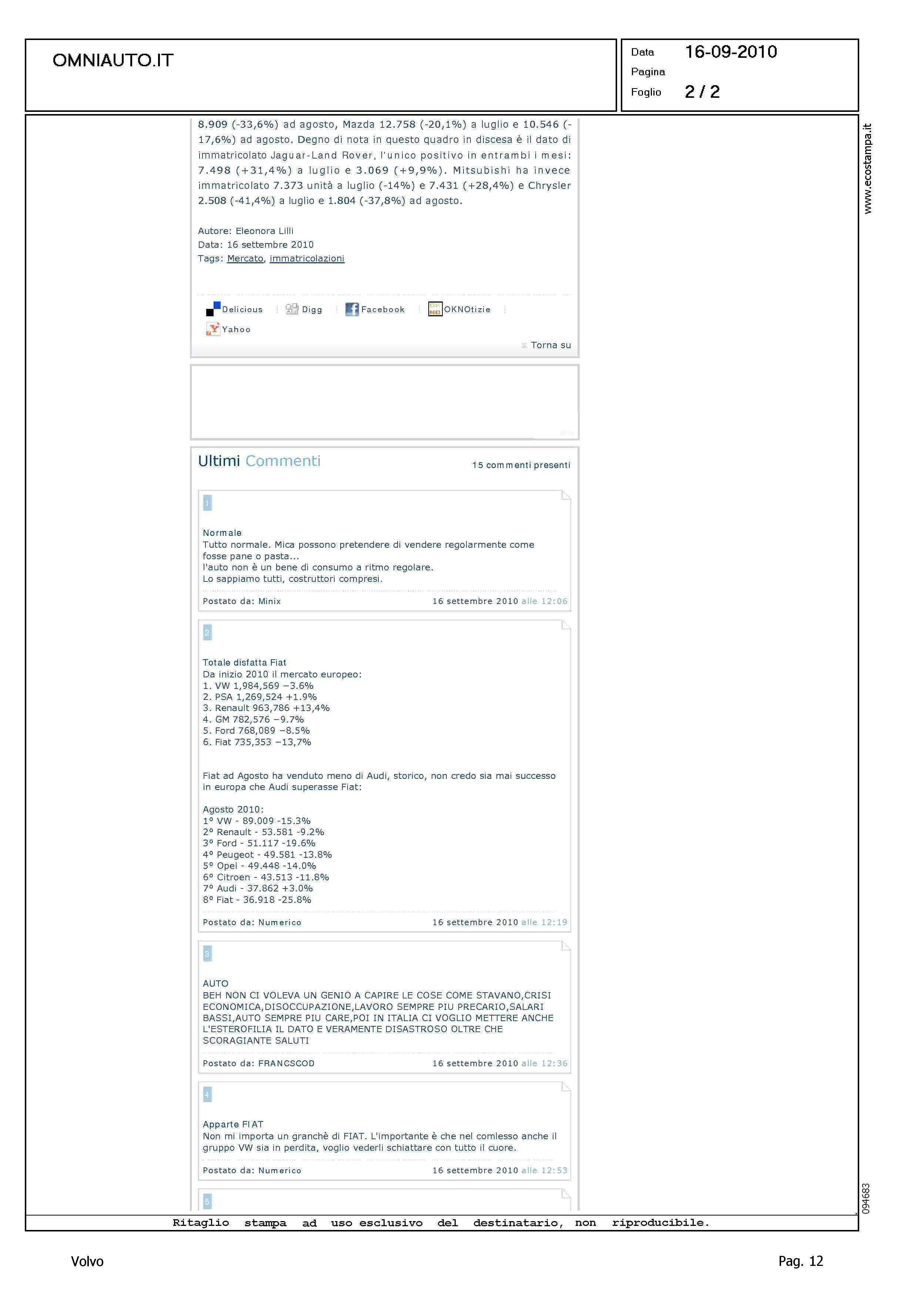 Author: Line: Corporate Model: Corporate Subject: - Title: MERCATO AUTO: ESTATE NERA PER L'EUROPAHighlight: MERCATO EUROPA - POSIZIONE VOLVO