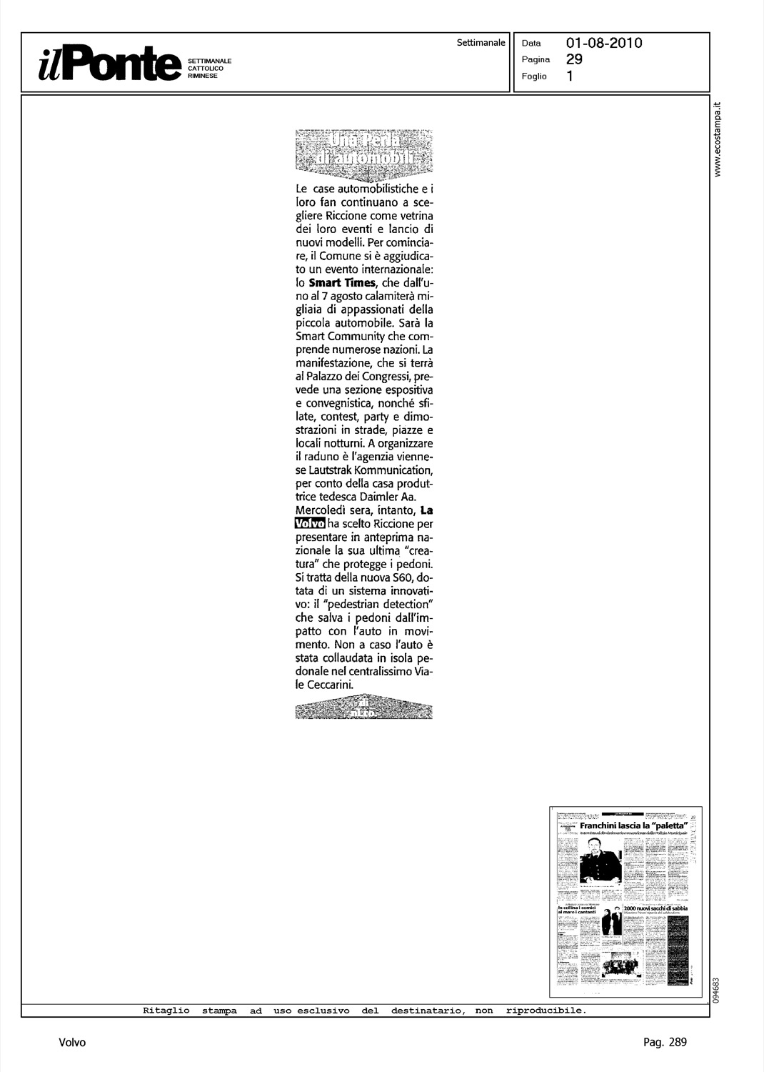 Author: Line: Corporate Model: Corporate Subject: - Title: UNA PERLA DI AUTOMOBILIHighlight: SICUREZZA - PEDESTRIAN DETECTION - ATTIVITA' SU S60 A RICCIONE, VIALE CECCARINI