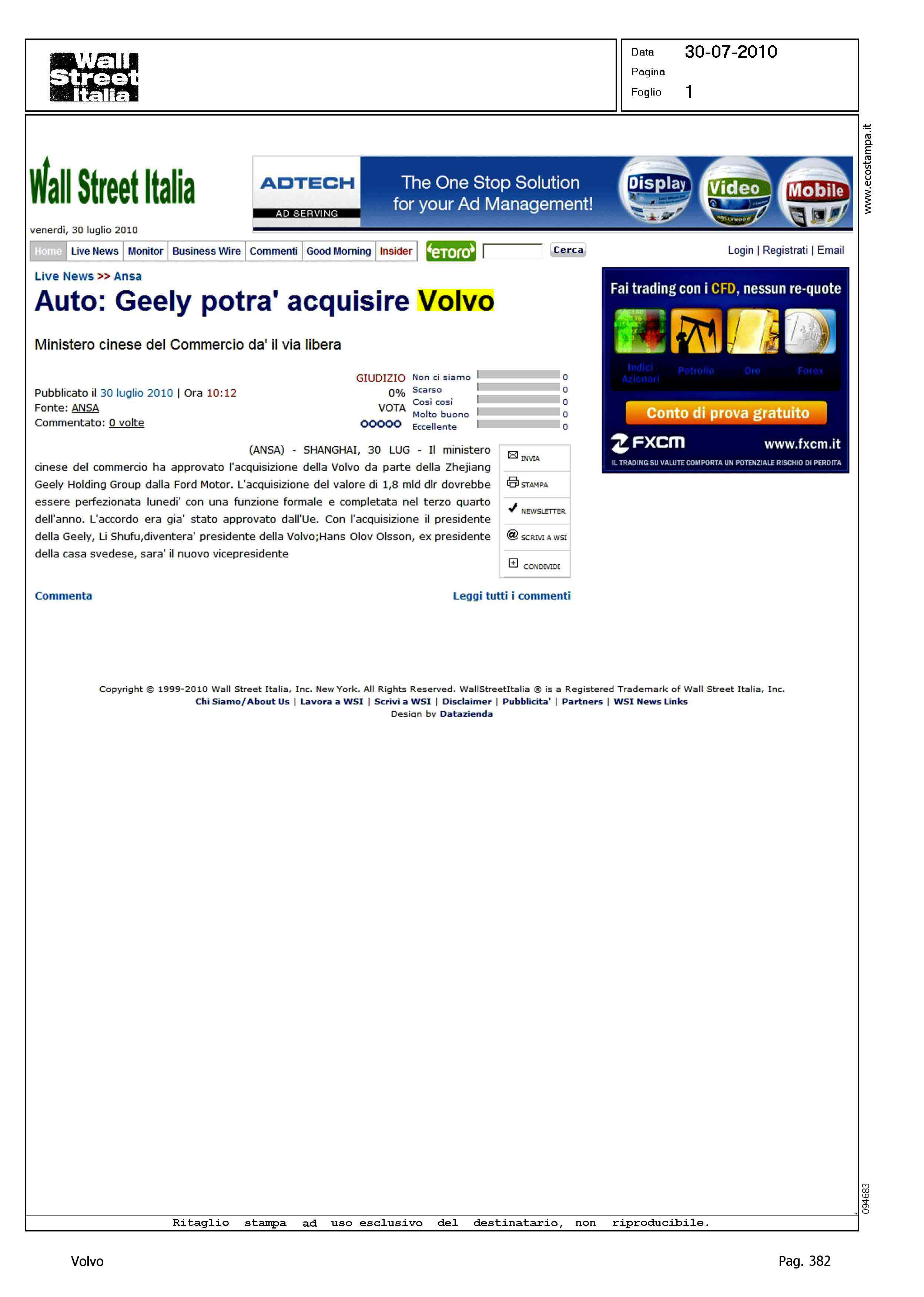 Author: Line: Corporate Model: Corporate Subject: - Title: AUTO: GEELY POTRA' ACQUISIRE VOLVOHighlight: GEELY - VOLVO