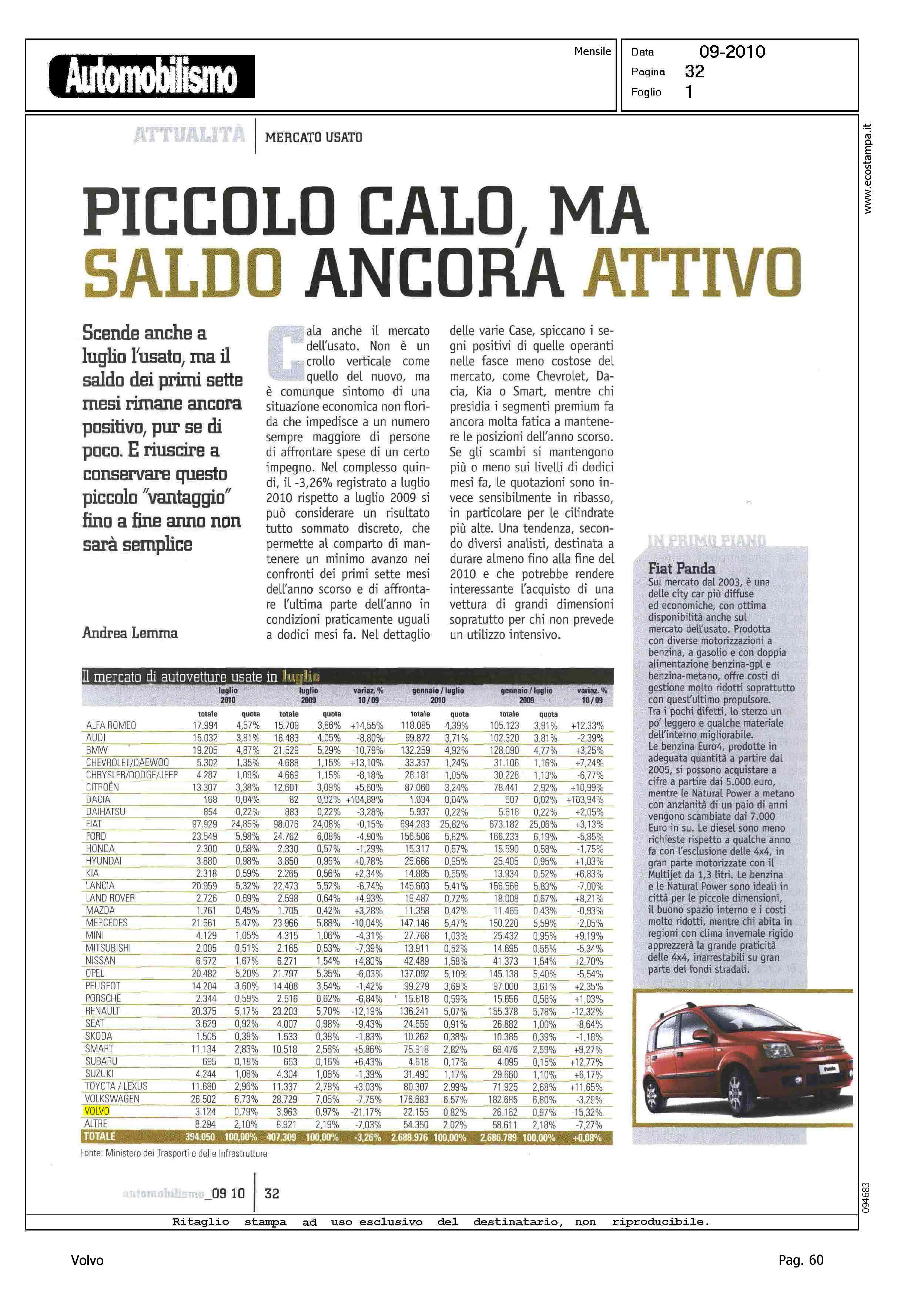 Author: Line: Corporate Model: Corporate Subject: - Title: PICCOLO CALO, MA SALDO ANCORA ATTIVOHighlight: TABELLE MERCATO USATO - POSIZIONE VOLVO
