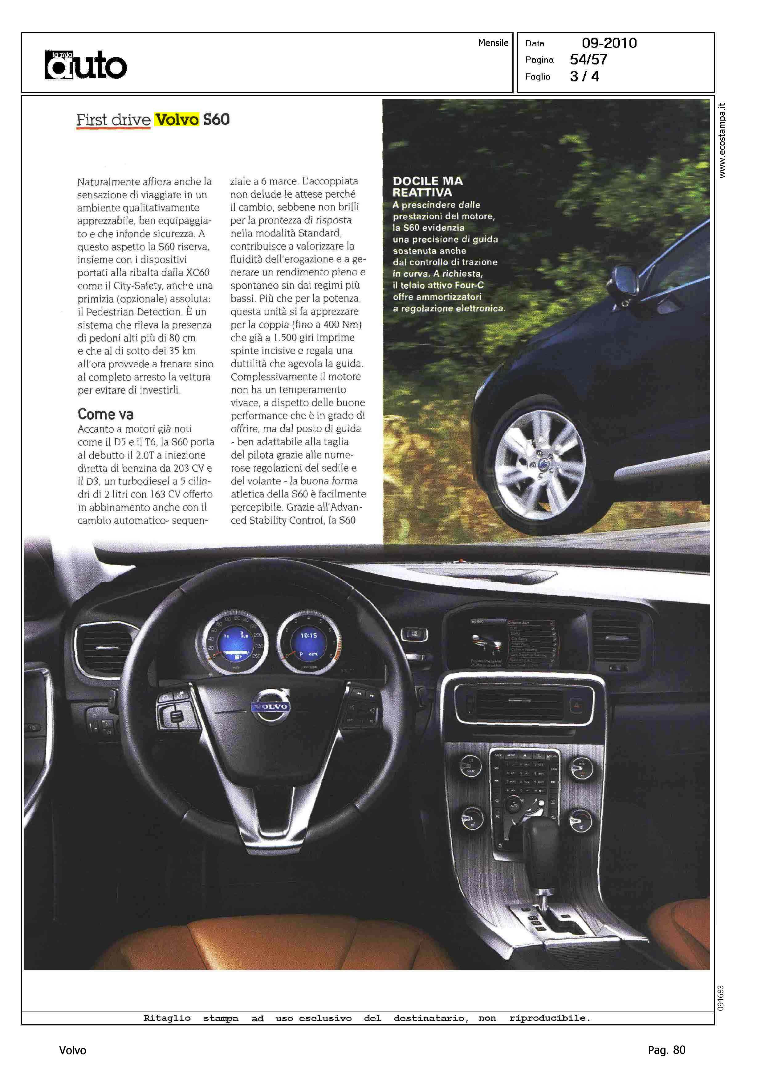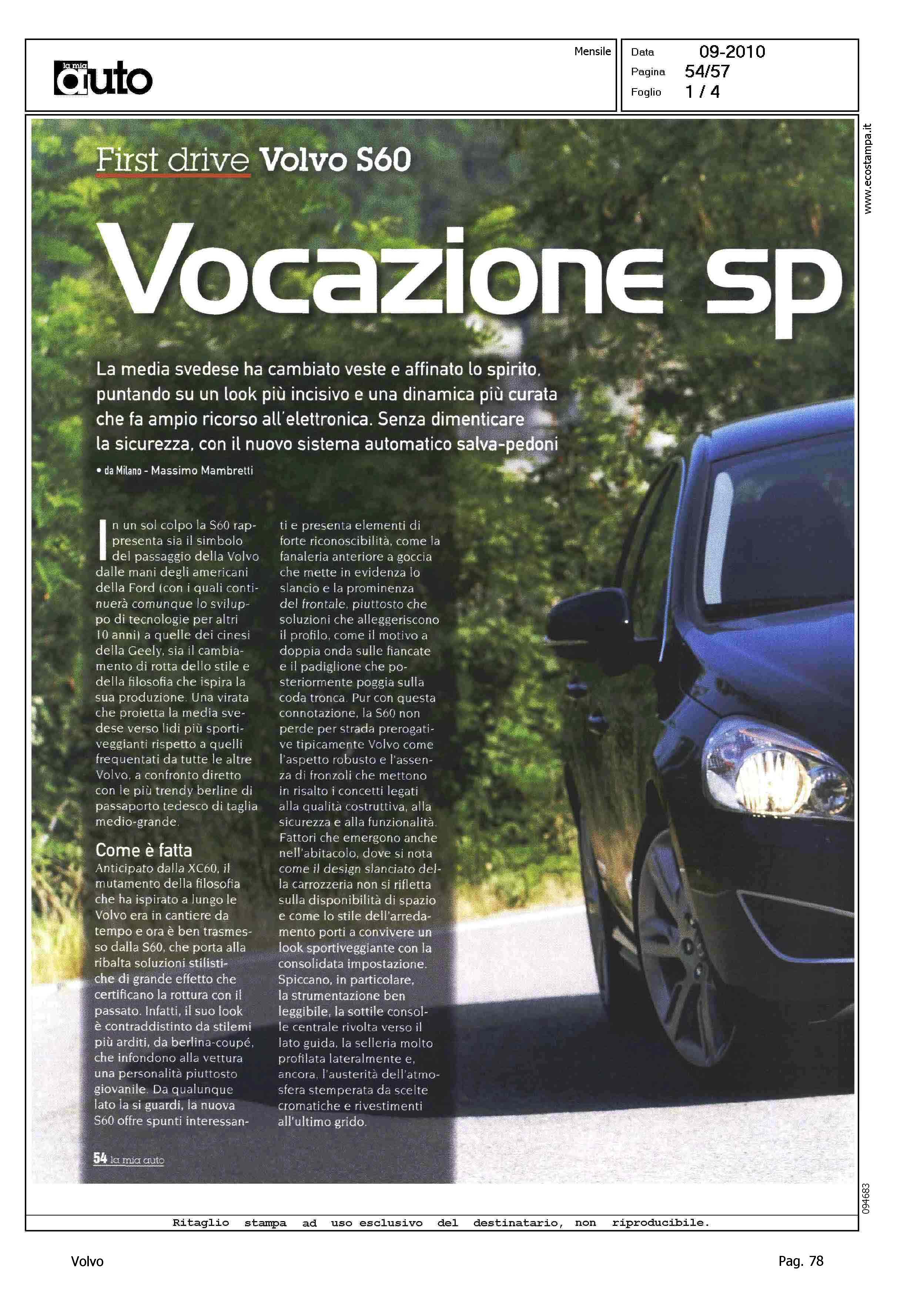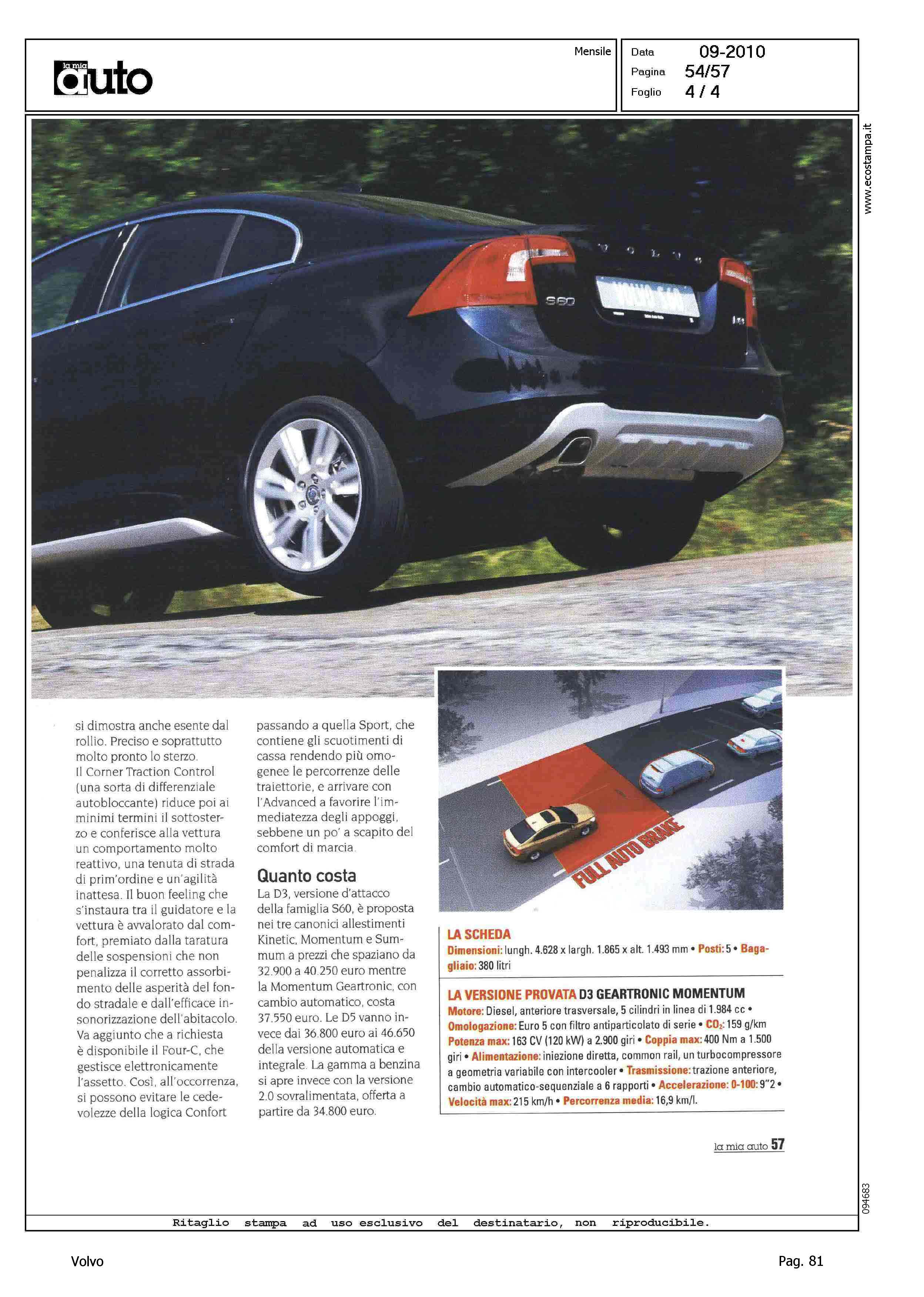 Highlight: VOLVO S60 D3 GEARTRONIC MOMENTUM - GEELY - PROFILO PRODOTTO - DESIGN - SICUREZZA - CITY SAFETY - PEDESTRIAN DETECTION - MOTORI - DINAMICA DI MARCIA - ACCESSORI SICUREZZA DINAMICA DI MARCIA - ASSETTO - GAMMA - PREZZI - SCHEDA PRODOTTO IN PROVA