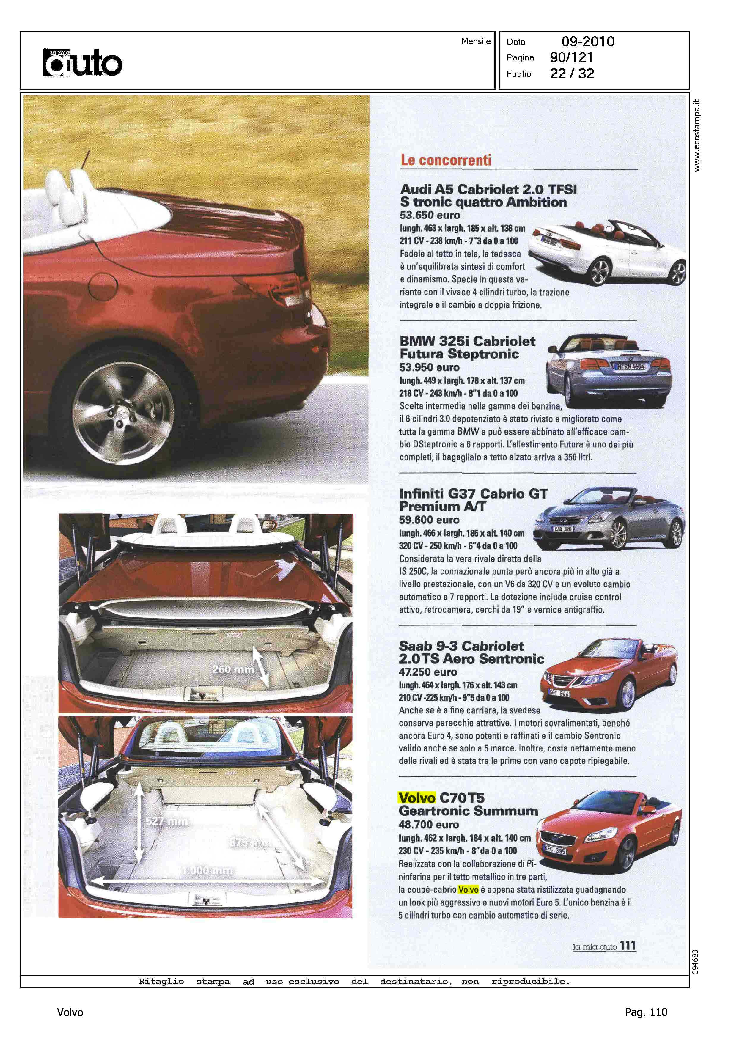 Title: DOSSIER CABRIO - IN QUATTRO SOTTO IL CIELO - LE CONCORRENTI - VOLVO C70 T5 GEARTRONIC SUMMUM