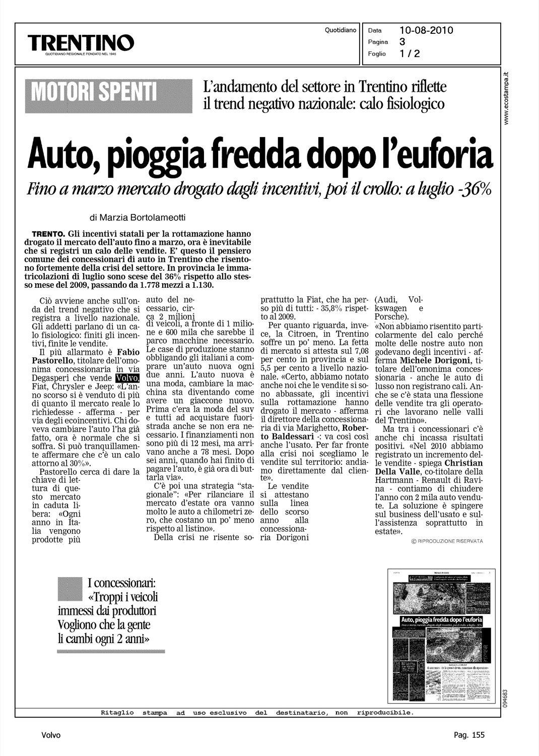 Author: BORTOLAMEOTTI, MARZIALine: Corporate Model: Corporate Subject: - Title: AUTO, PIOGGIA FREDDA DOPO L'EUFORIAHighlight: MERCATO ITALIA - COMMENTO ANDAMENTO LUGLIO