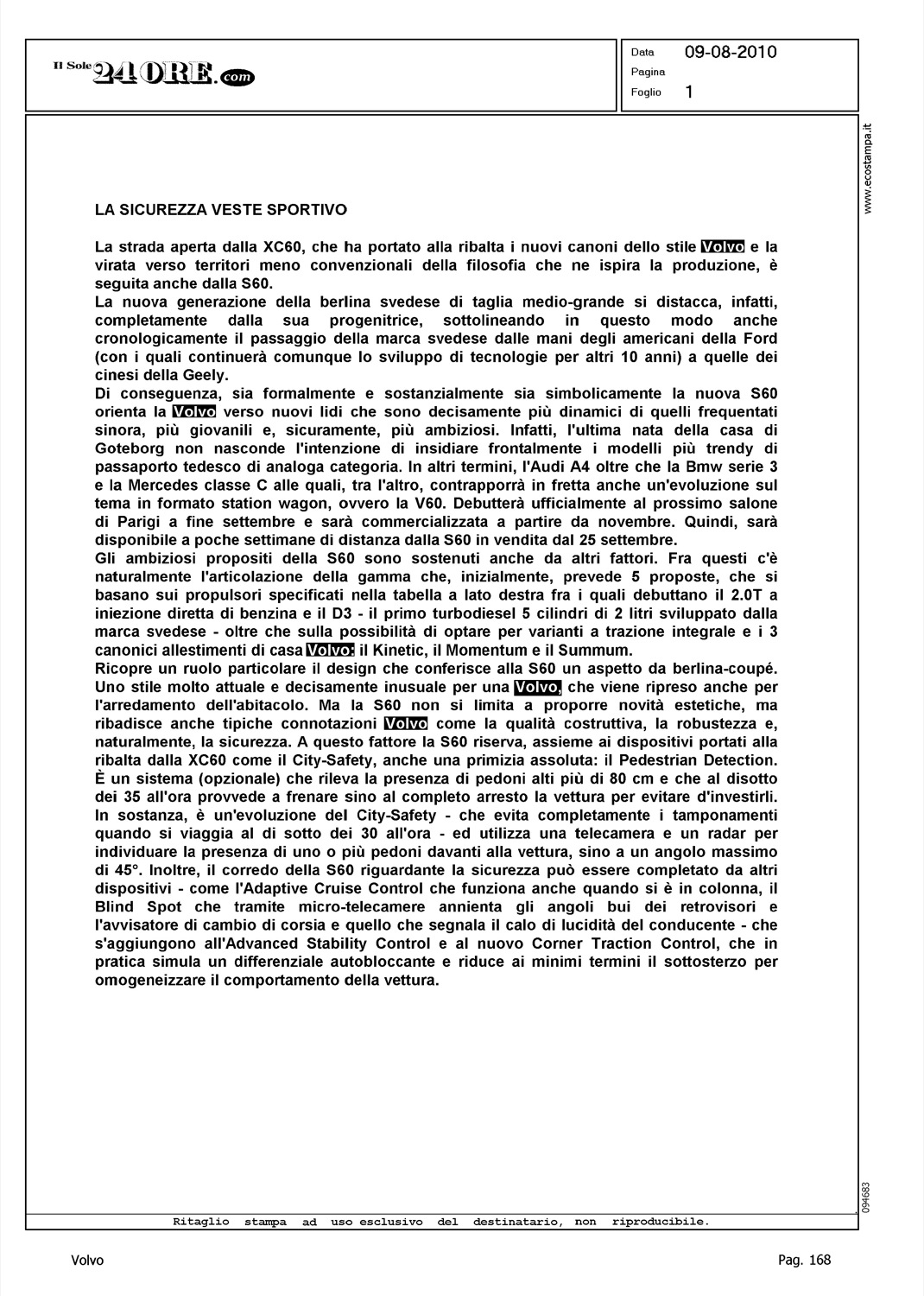 Line: S60 Model: Linea S60 Testdrive Subject: -
