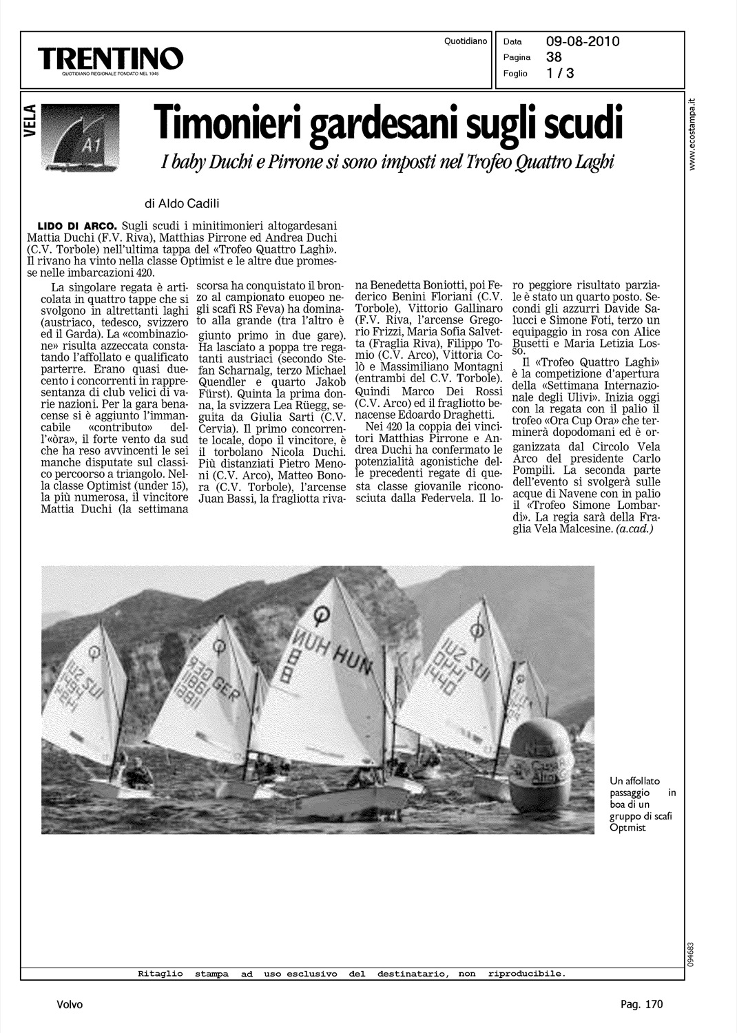 Author: CADILI, ALDOLine: Corporate Model: Corporate Subject: Volvo Cup Title: PER IL CIRCOLO E' ANCORA MAGIC MOMENTHighlight: PROFILO CIRCOLO VELA TORBOLE - VOLVO CUP