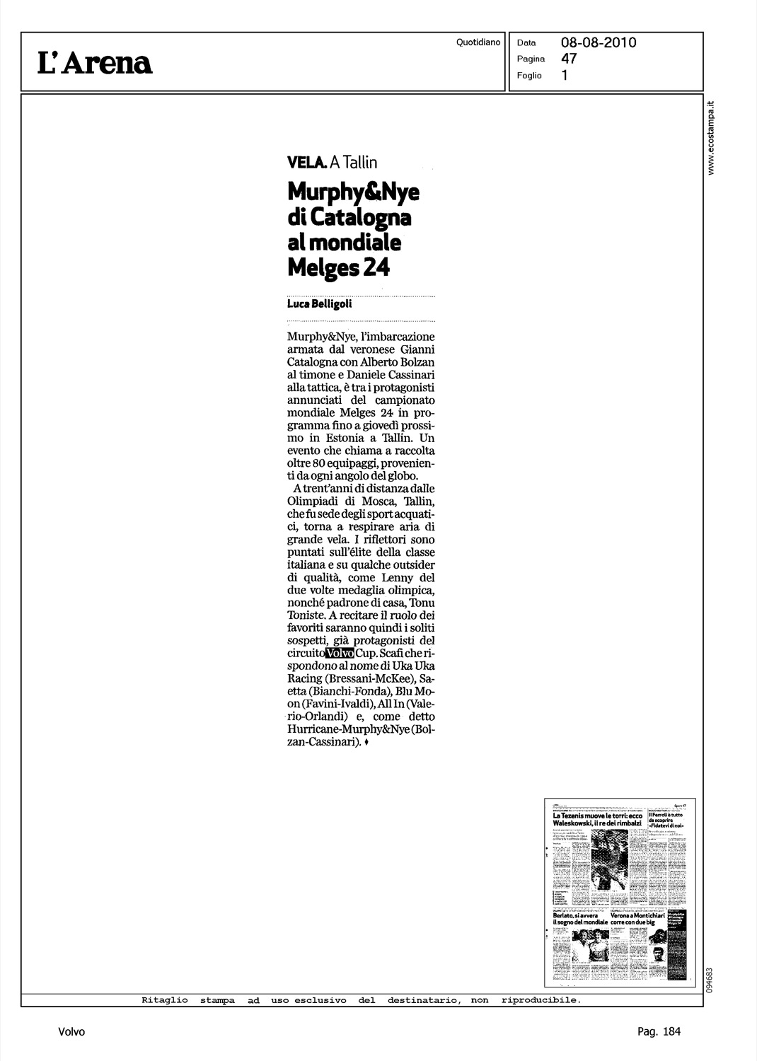 Author: BELLIGOLI, LUCALine: Corporate Model: Corporate Subject: Volvo Cup Title: MURPHY&NYE DI CATALOGNA AL MONDIALE MELGES 24\Highlight: REGATE DI TALLIN