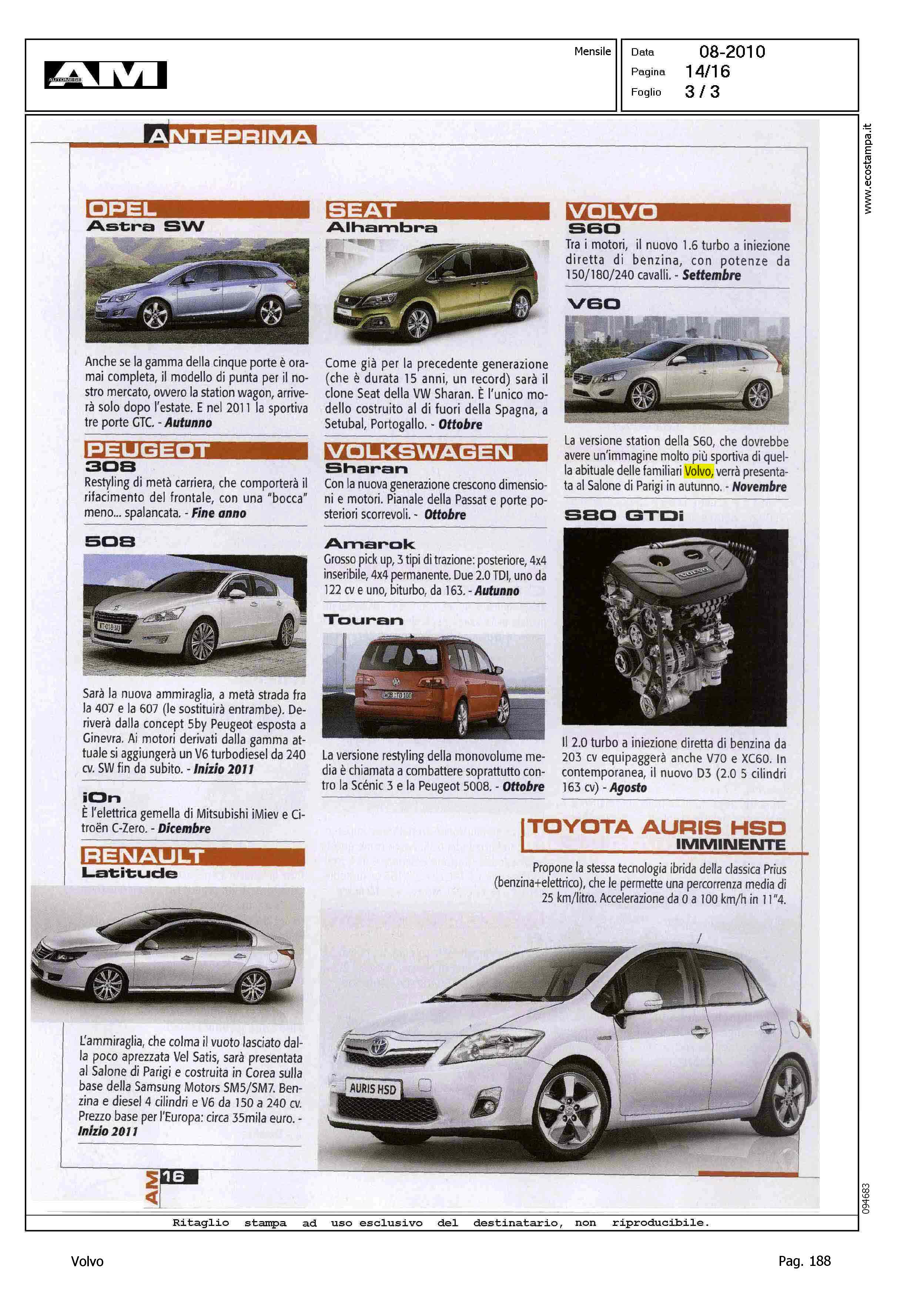 Author: Line: Corporate Model: Corporate Subject: - Title: STANNO ARRIVANDO - VOLVO S60 - V60 S80 GTDIHighlight: PERIODO COMMERCIALIZZAZIONE - POTENZA - CILINDRATA - PROFILO PRODOTTO - PARIGI