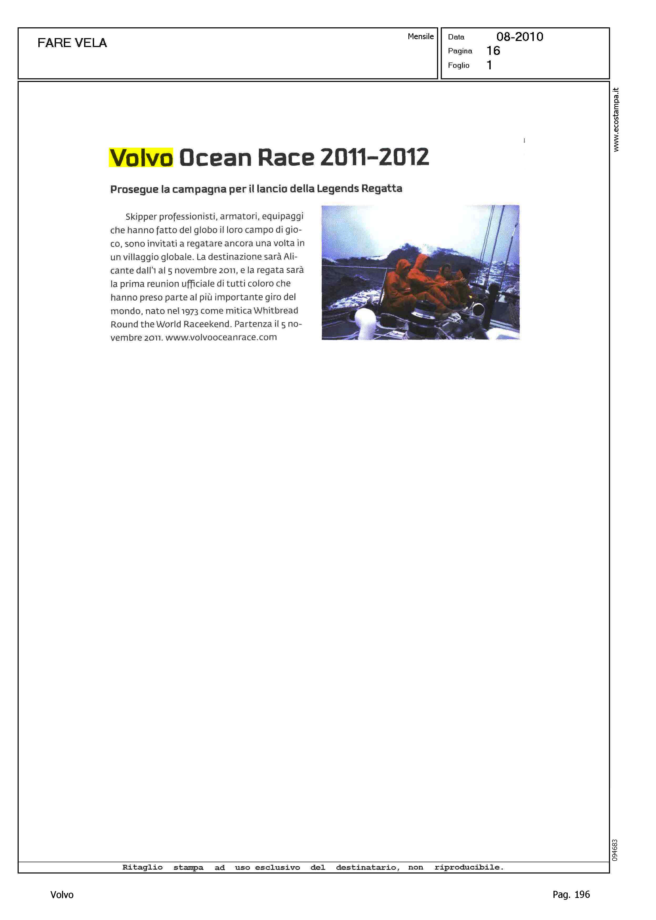 Author: Line: Corporate Model: Corporate Subject: Volvo Ocean Race Title: VOLVO OCEAN RACE 2011-2012Highlight: LEGEND REGATTA