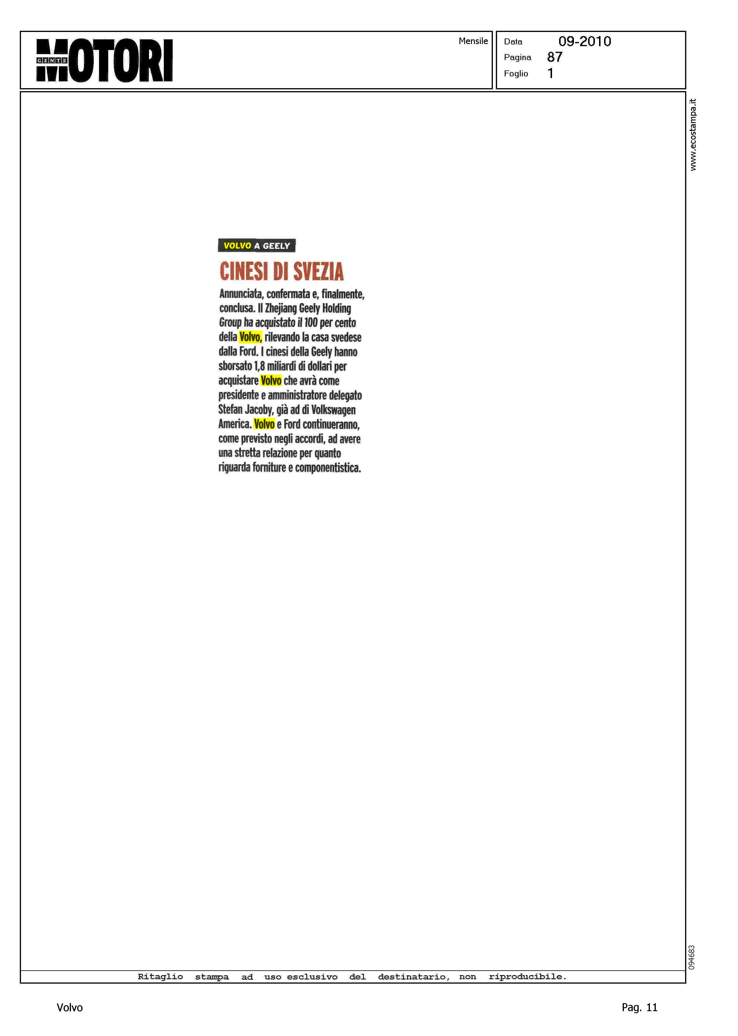 Author: Line: Corporate Model: Corporate Subject: - Title: VOLVO A GEELY - CINESI DI SVEZIAHighlight: GEELY - VOLVO