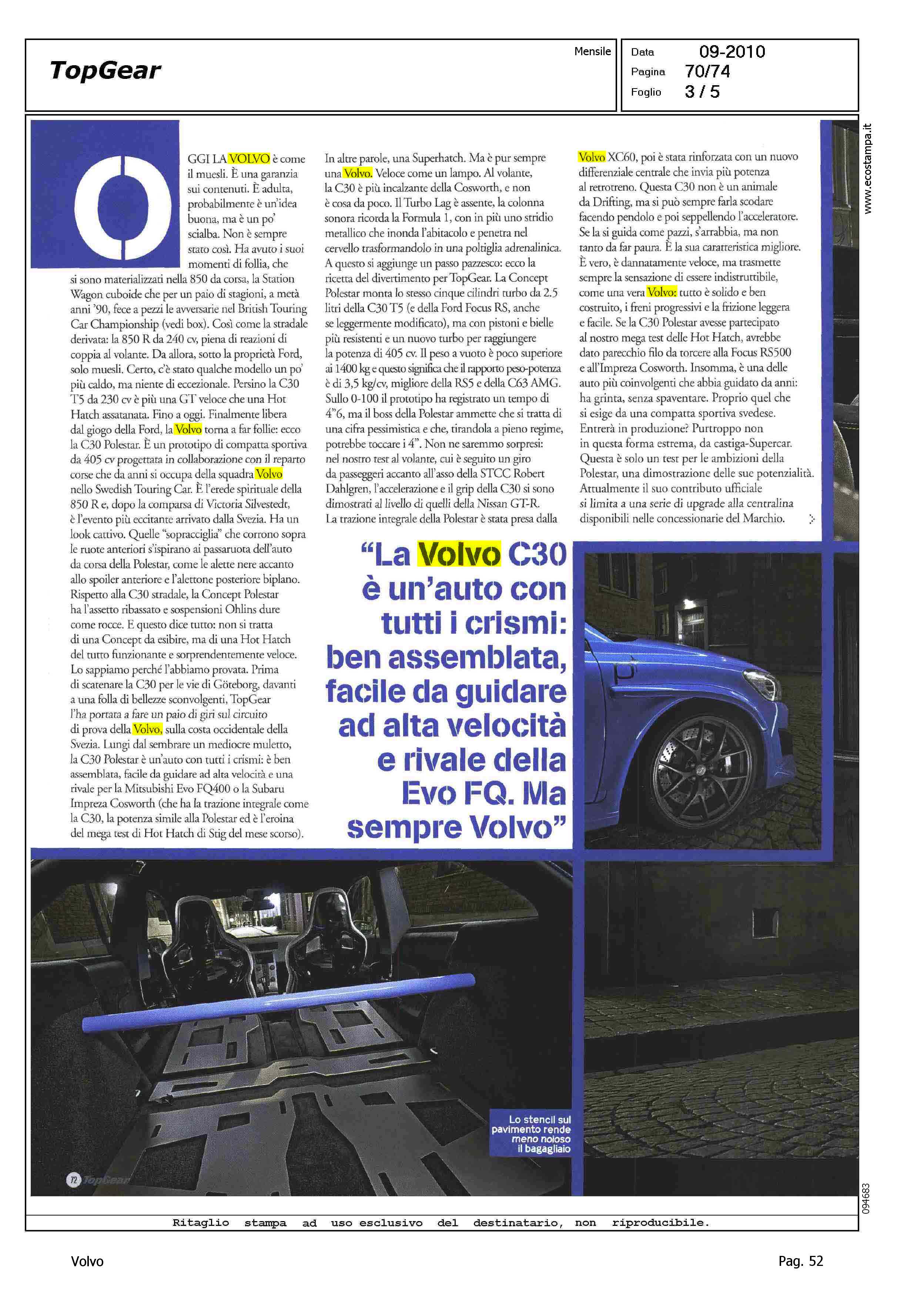 Highlight: IMPEGNO SPORTIVO - PROFILO DEL PRODOTTO - DESIGN - PERFORMANCE - DIMENSIONI E PESI - ACCELERAZIONE, 4,6" - TRAZIONE INTEGRALE - VALORE VOLVO - IPOTESI PREZZO - IPOTESI SVILUPPO MERCATO