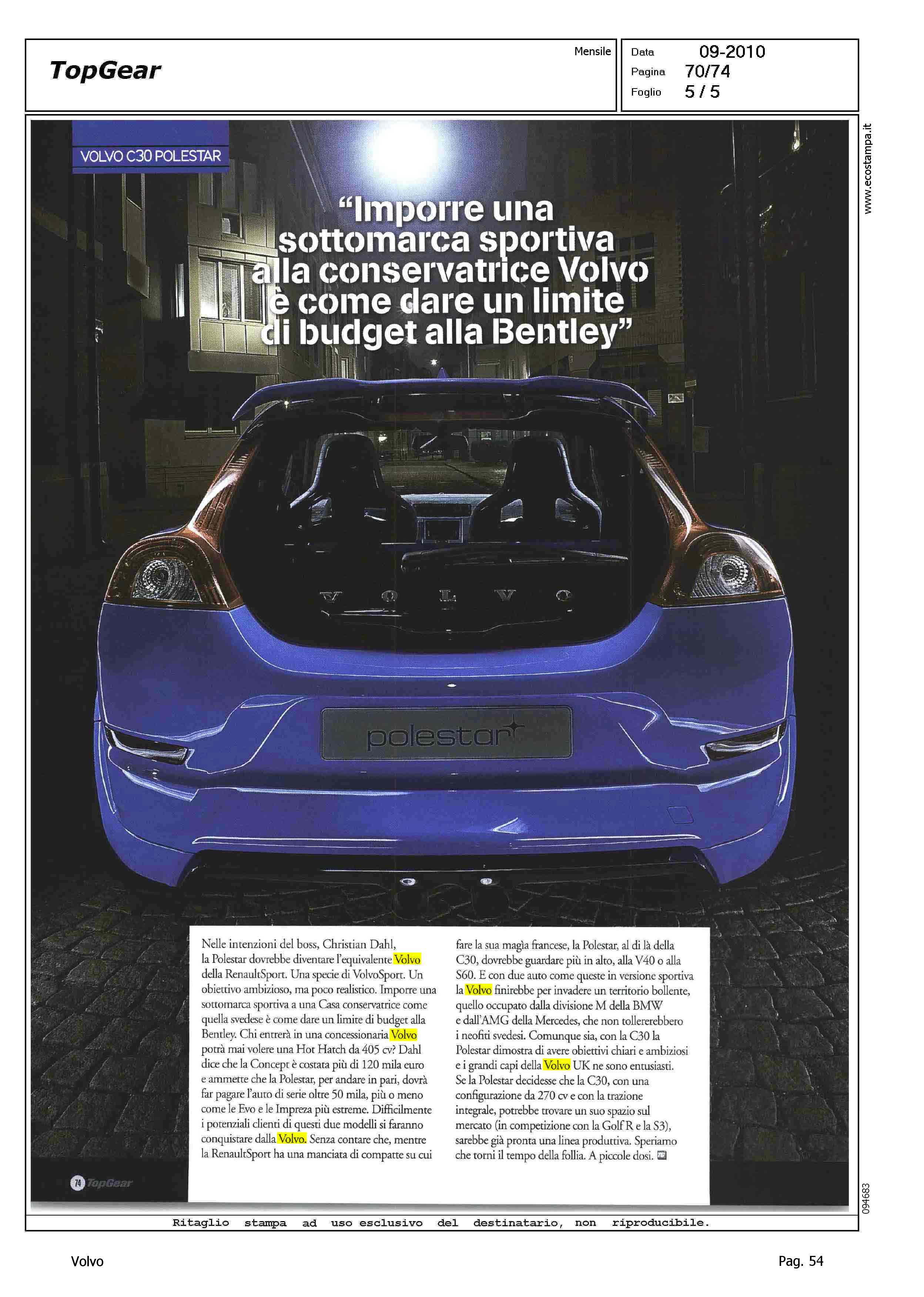 Line: Corporate Model: Volvo C30 Subject: -