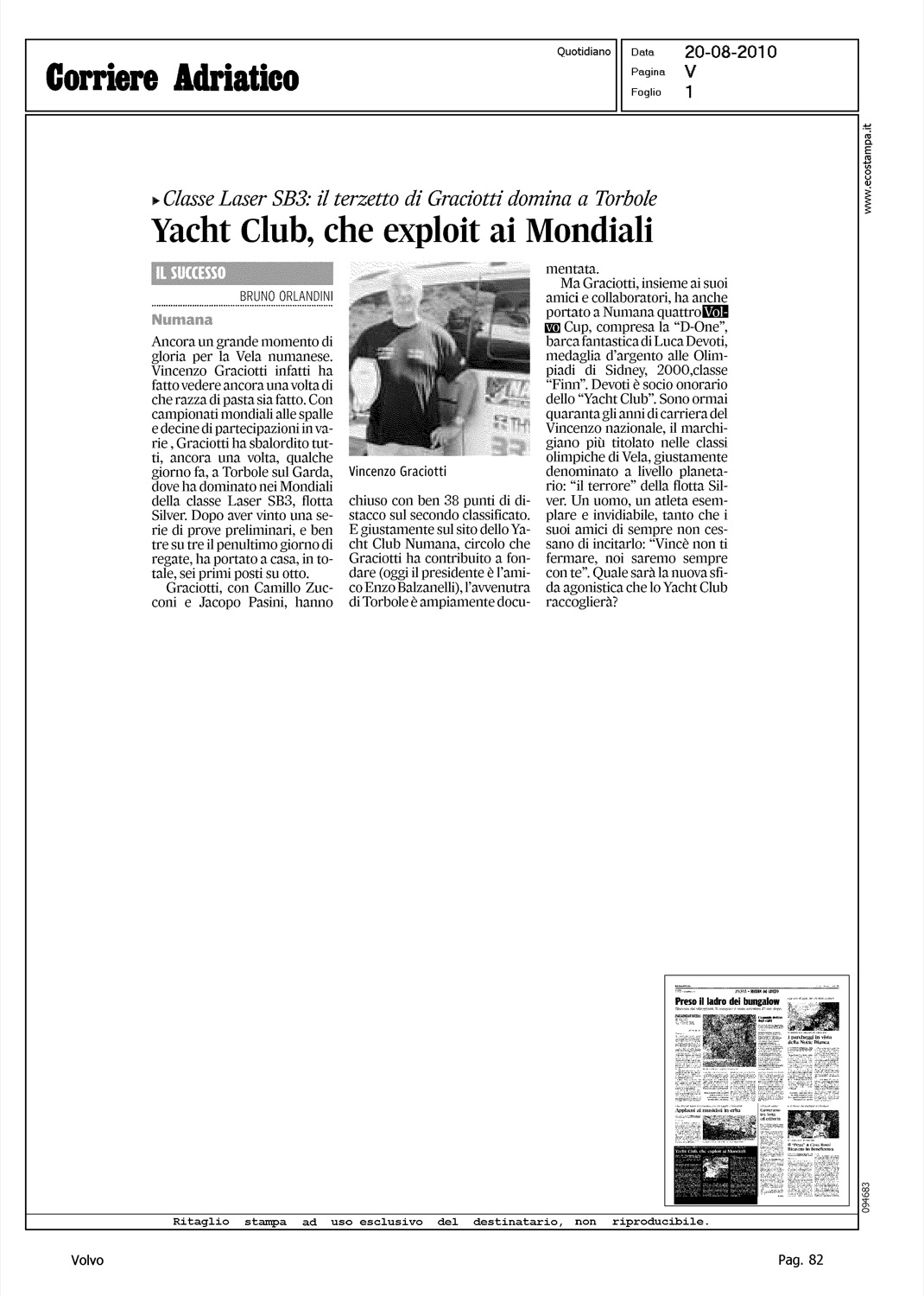 Author: ORLANDINI, BRUNOLine: Corporate Model: Corporate Subject: Volvo Cup Title: YACHT CLUB, CHE EXPLOIT AI MONDIALIHighlight: REGATE DI TORBOLE