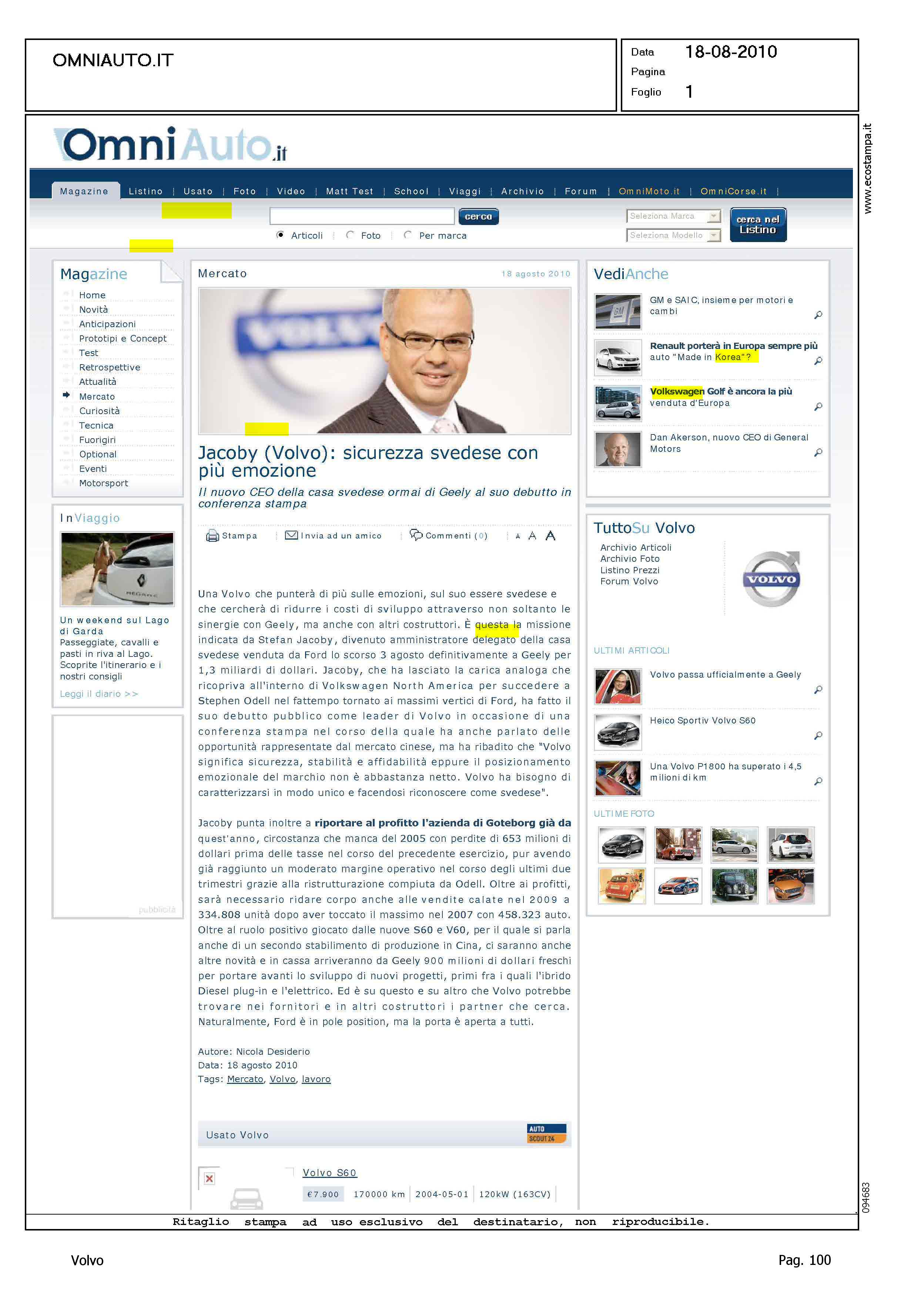 Author: Line: Corporate Model: Corporate Subject: - Title: JACOBY (VOLVO): SICUREZZA SVEDESE CON PIU' EMOZIONEHighlight: SVILUPPO NUOVI MERCATI IN CINA - JACOBY SU VOLVO