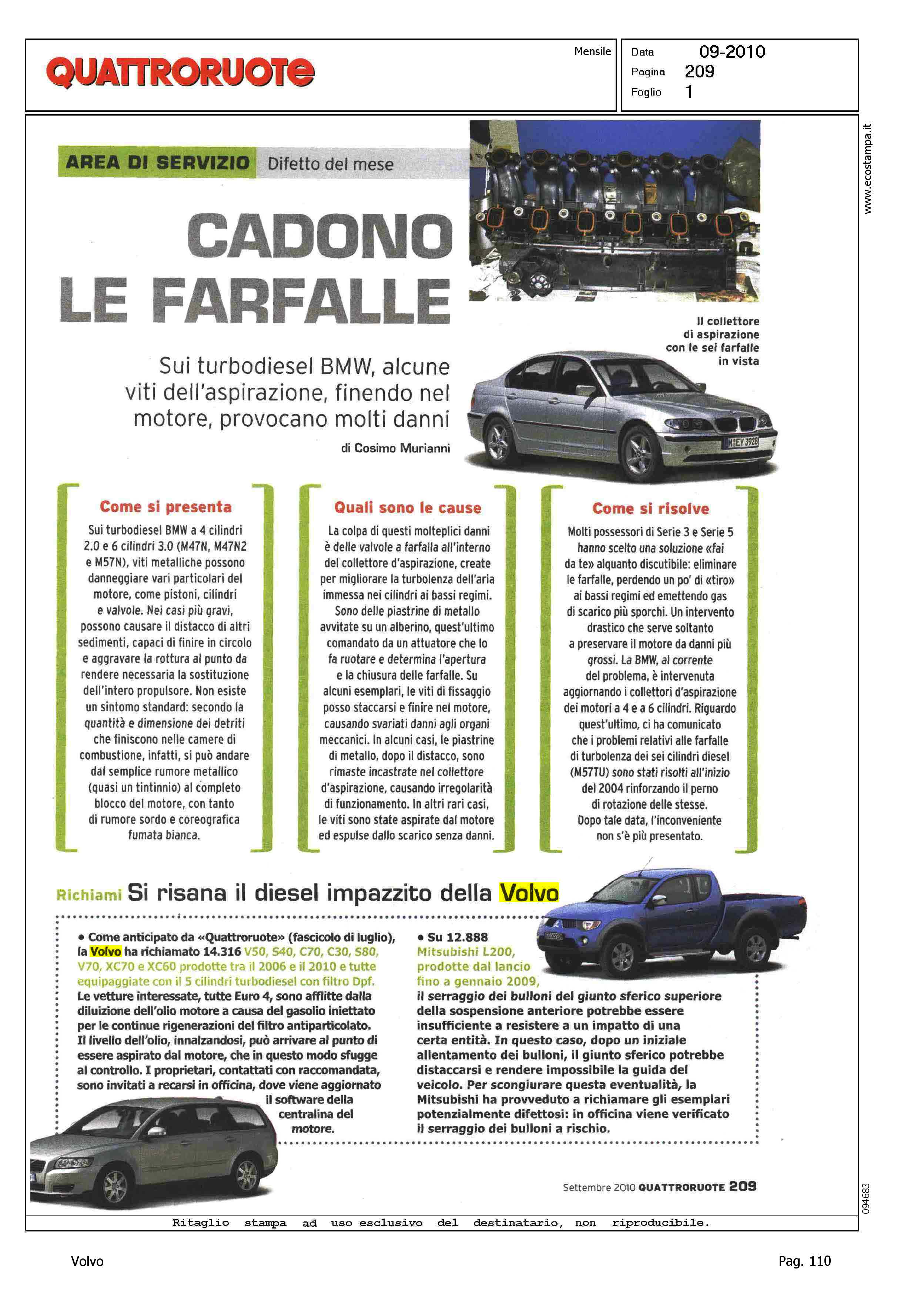 Highlight: RICHIAMO MOTORE GASOLIO - NUMERO VETTURE RICHIAMATE- DESCRIZIONE DEL DIFETTO - TIPOLOGIA INTERVENTO DI RISOLUZIONE