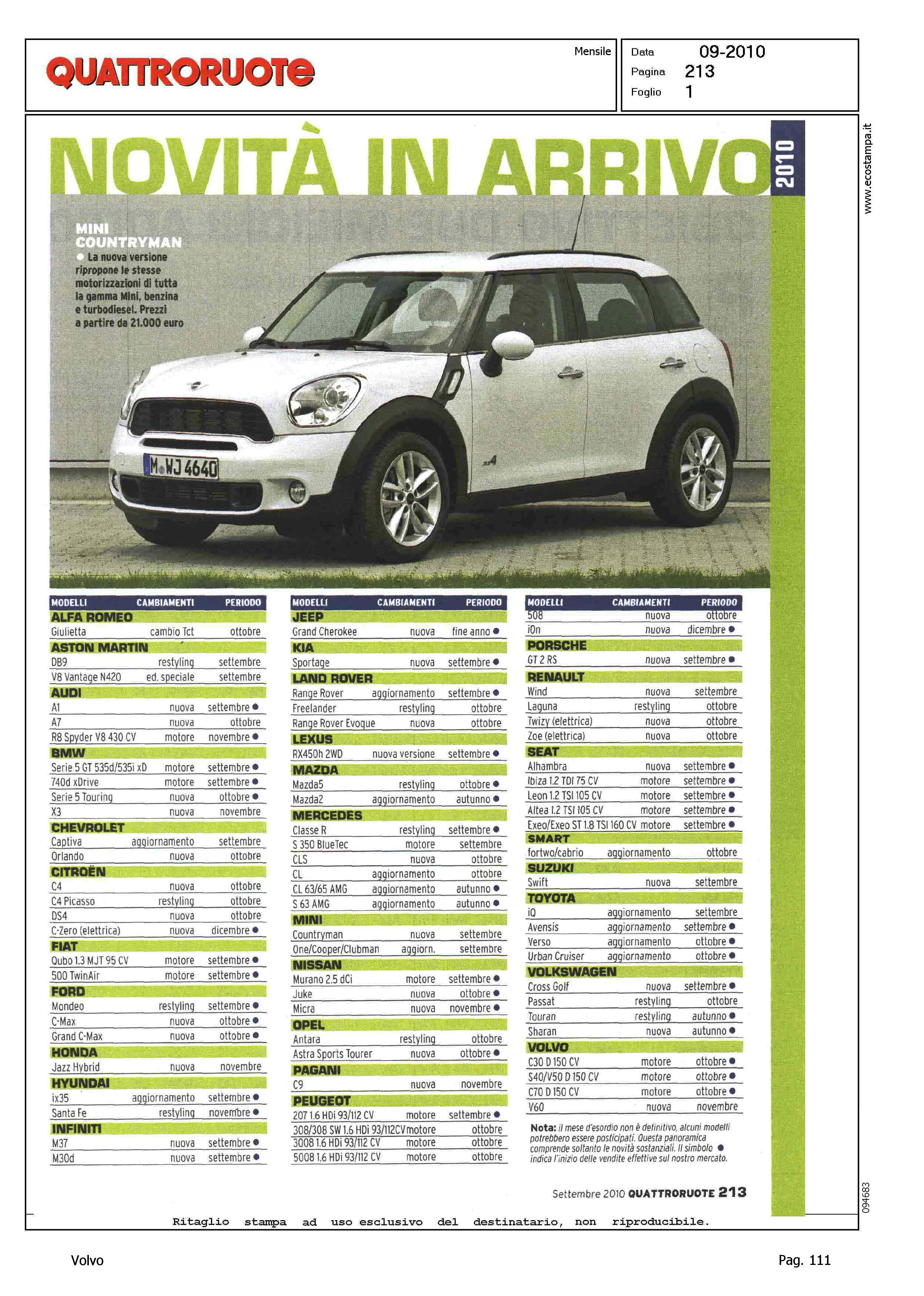 Author: Line: Corporate Model: Corporate Subject: - Title: NOVITA' IN ARRIVOHighlight: TABELLA NOVITA' MERCATO ITALIA - MODELLI/VERSIONI VOLVO
