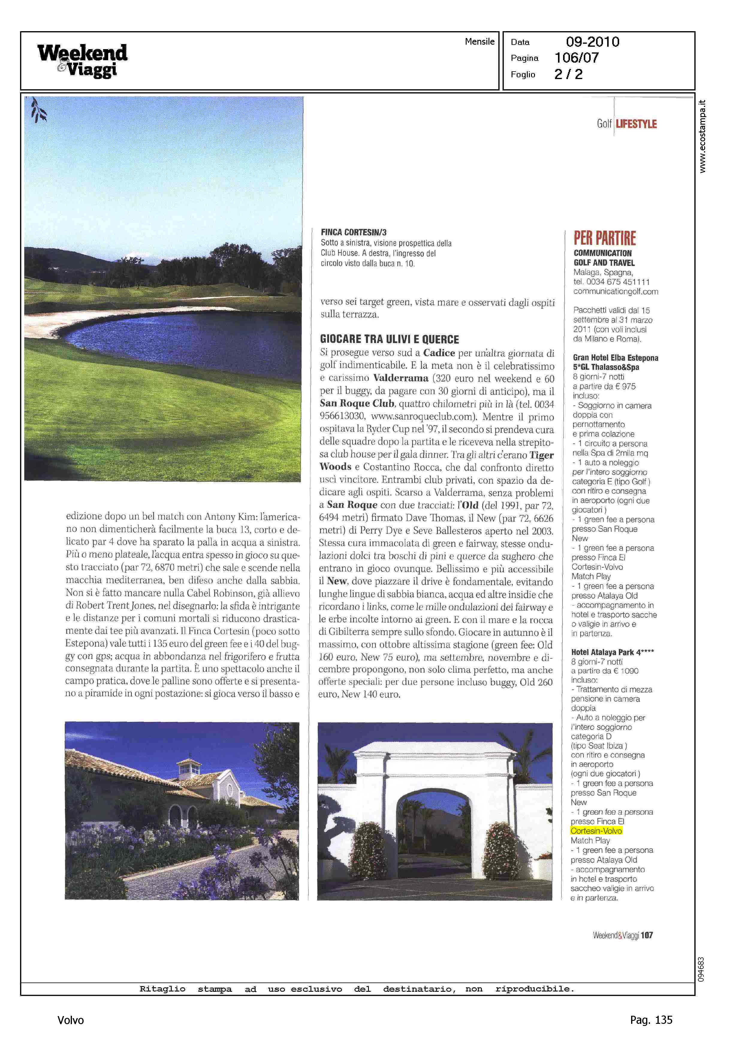 Author: AUDISIO, SILVIALine: Corporate Model: Corporate Subject: - Title: SUI GREEN FIRMATI DELL'ANDALUSIAHighlight: GOLF - CLUB IN SPAGNA - VOLVO WORLD MATCH PLAY CHAMPIONSHIP - MAGGIO 2011