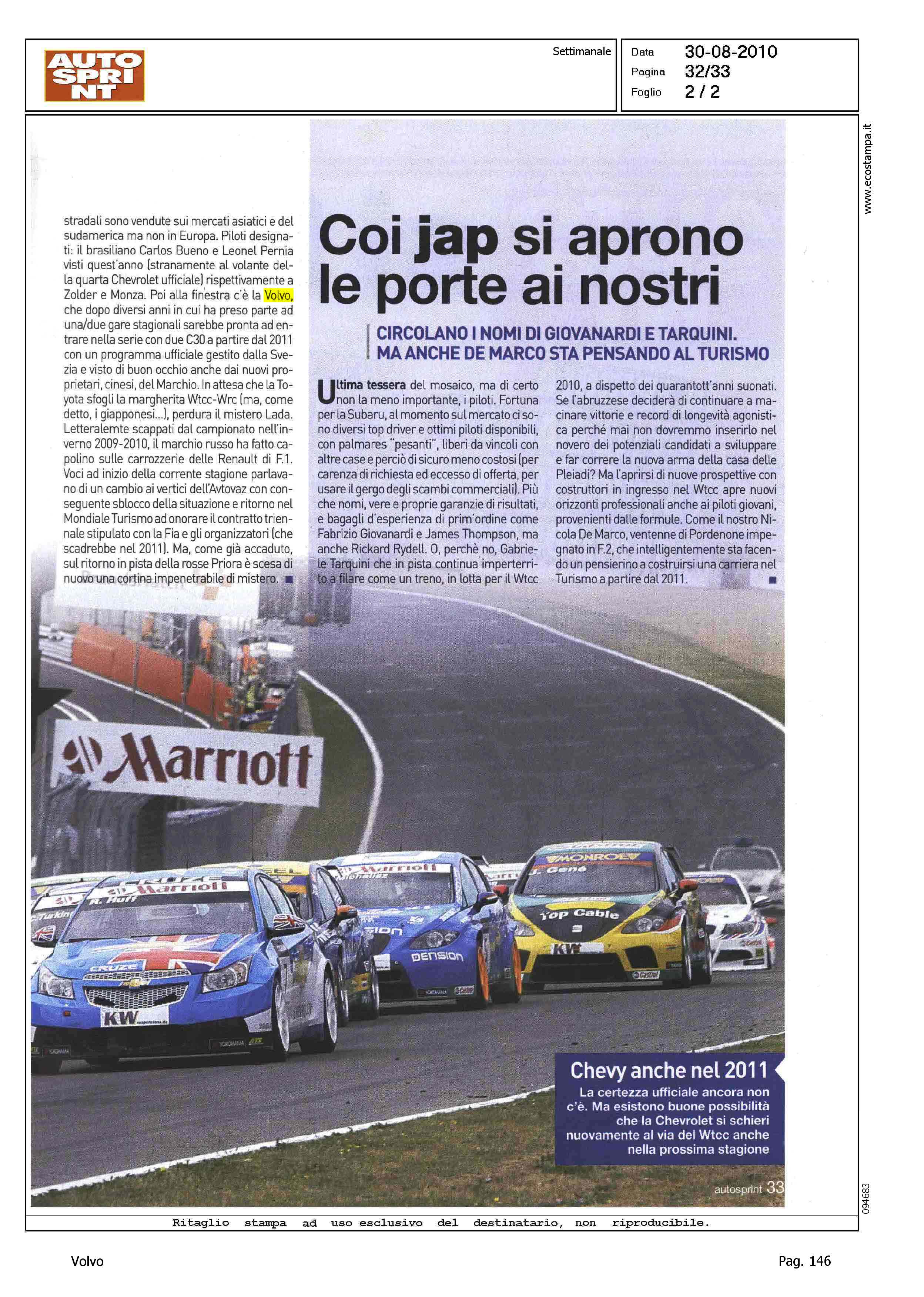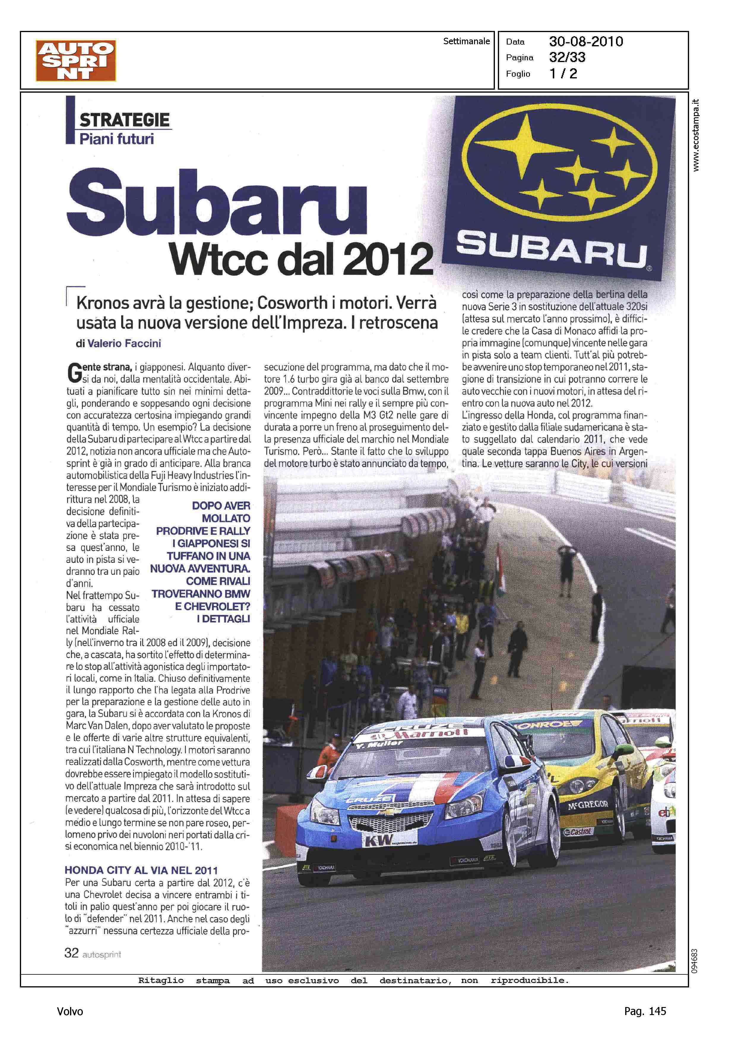 Author: FACCINI, VALERIOLine: Corporate Model: Corporate Subject: - Title: STRATEGIE - PIANI FUTURI - SUBARU WTCC 2012 Highlight: WTCC - PRESENZA VOLVO - STAGIONE GARE 2011 - GEELY