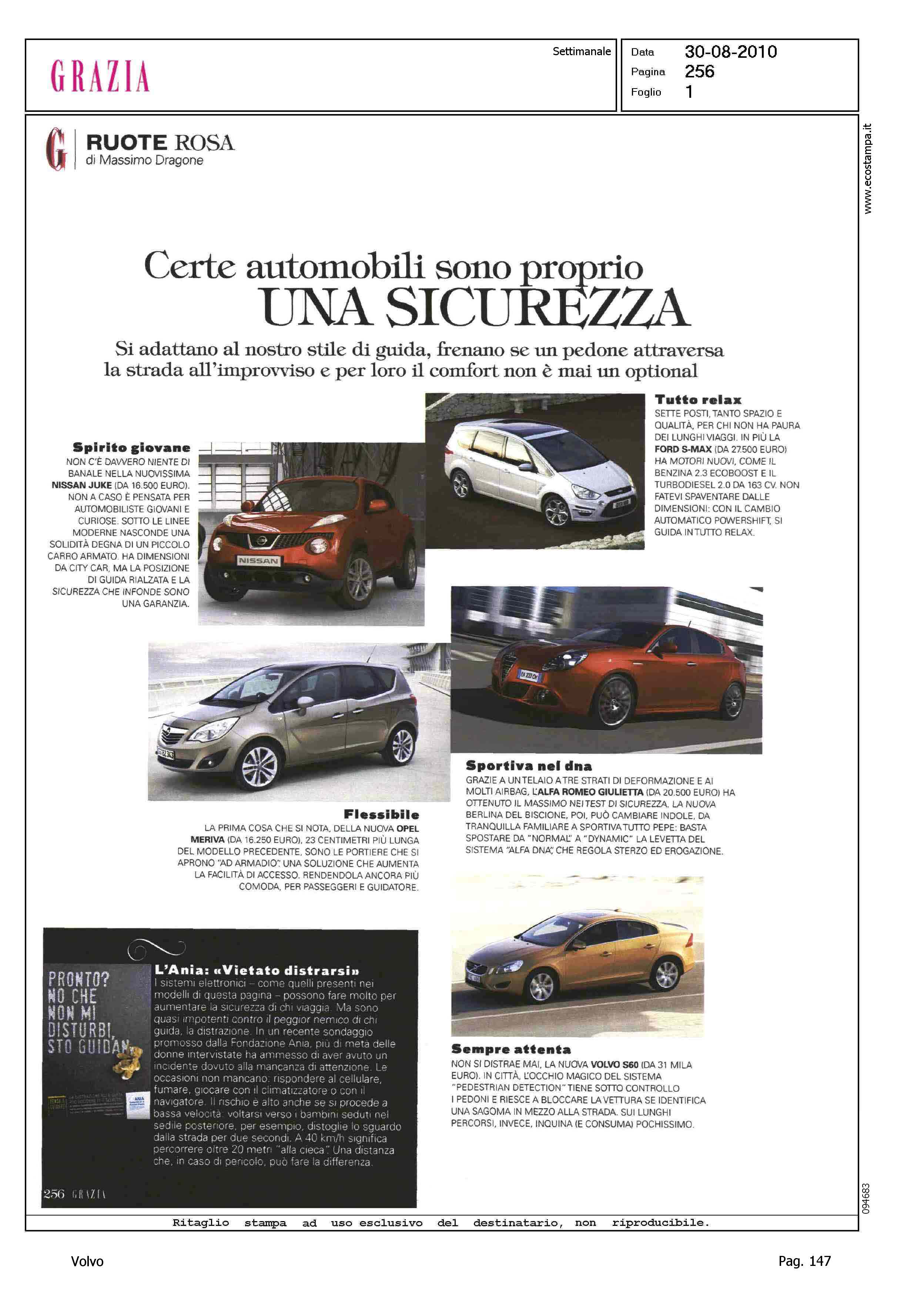 Author: DRAGONE, MASSIMOLine: S60 Model: Linea S60 Testdrive Subject: - Title: RUOTE ROSA - CERTE AUTOMOBILI SONO PROPRIO UNA SICUREZZA - SEMPRE ATTENTAHighlight: PREZZO - SICUREZZA - PEDESTRIAN DETECTION - CONSUMO