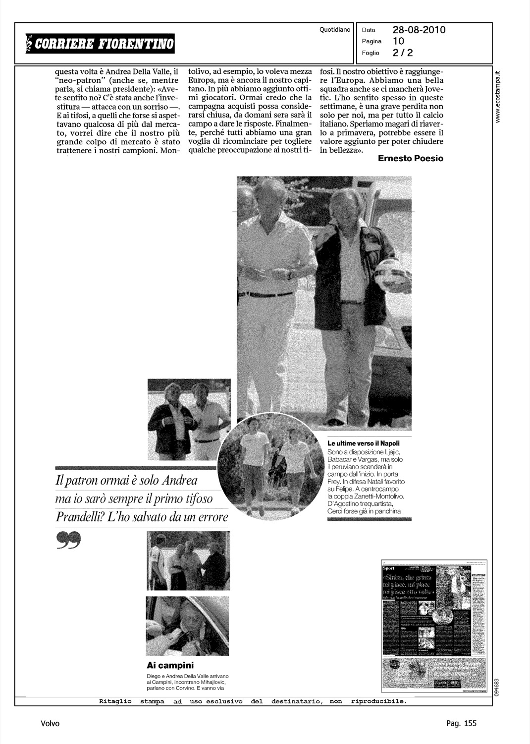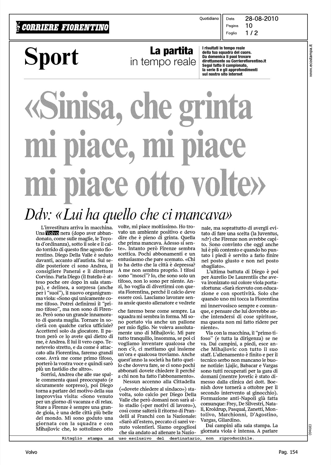 Author: POESIO, ERNESTOLine: Corporate Model: Corporate Subject: - Title: SPORT - "SINISA, CHE GRINTA MI PIACE, MI PIACE, MI PIACE OTTO VOLTE"Highlight: DIEGO DELLA VALLE - VOLVO