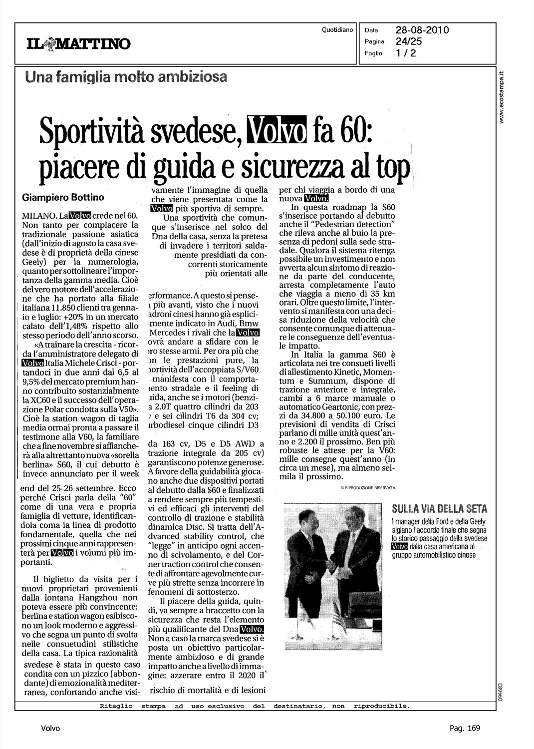 Title: UNA FAMIGLIA MOLTO AMBIZIOSA - SPORTIVITA' SVEDESE, VOLVO FA 60: PIACERE DI GUIDA E SICUREZZA AL TOP