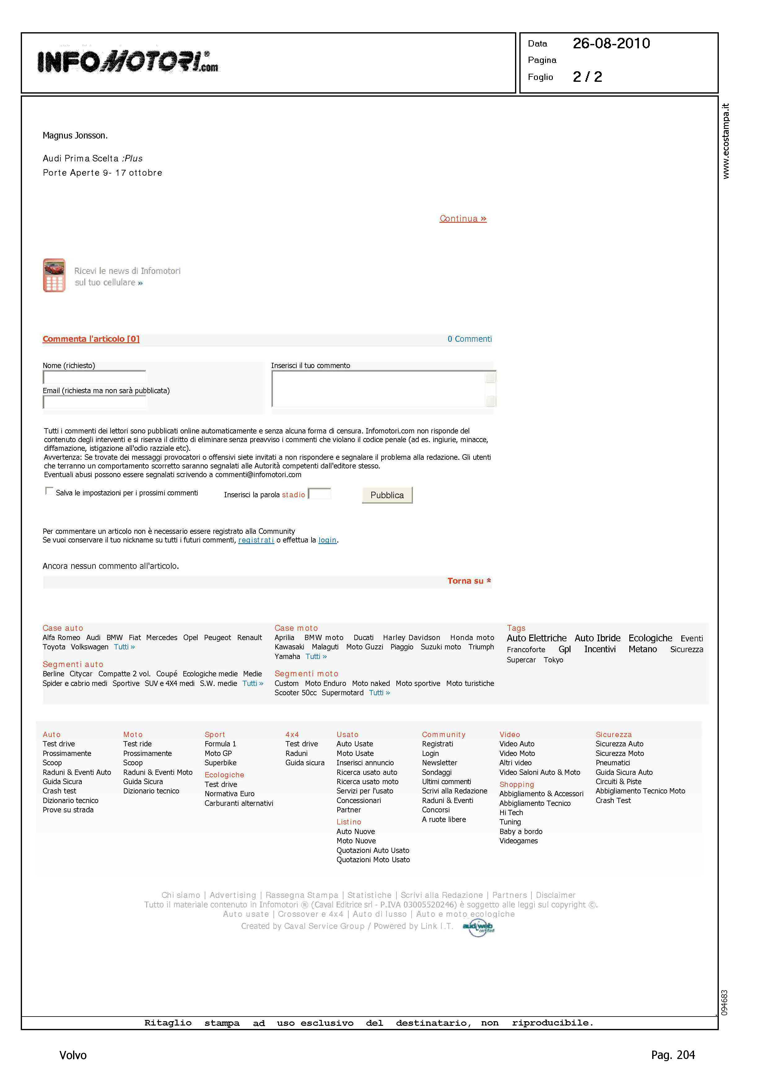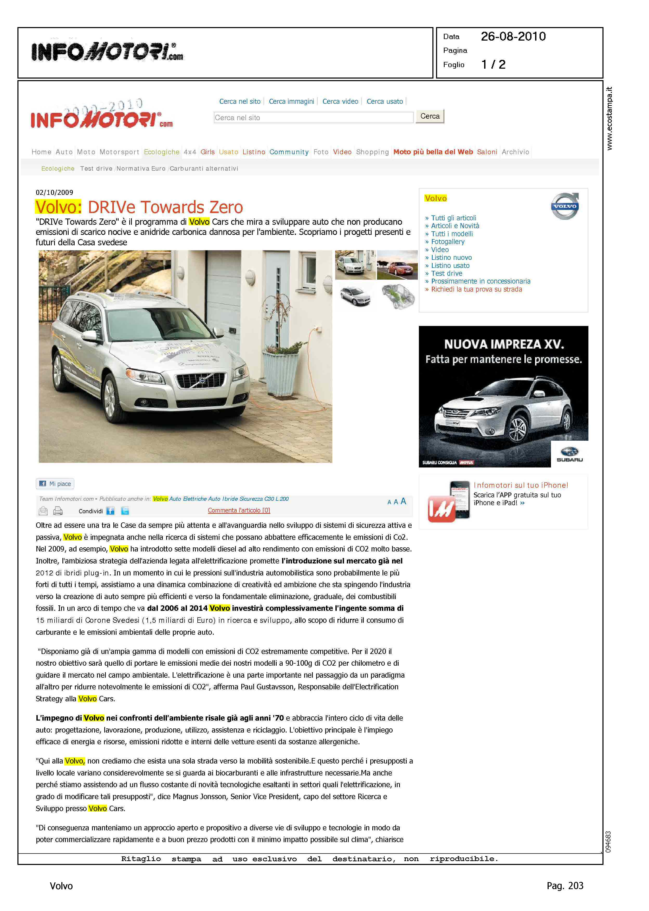 Highlight: VALORE VOLVO - AMBIENTE - SVILUPPO PROGETTO TOWARDS ZERO - GUSTAVSSON SU PROGETTO VALORE VOLVO AMBIENTE - JONSSON SU RICERCA E SVILUPPO VOLVO