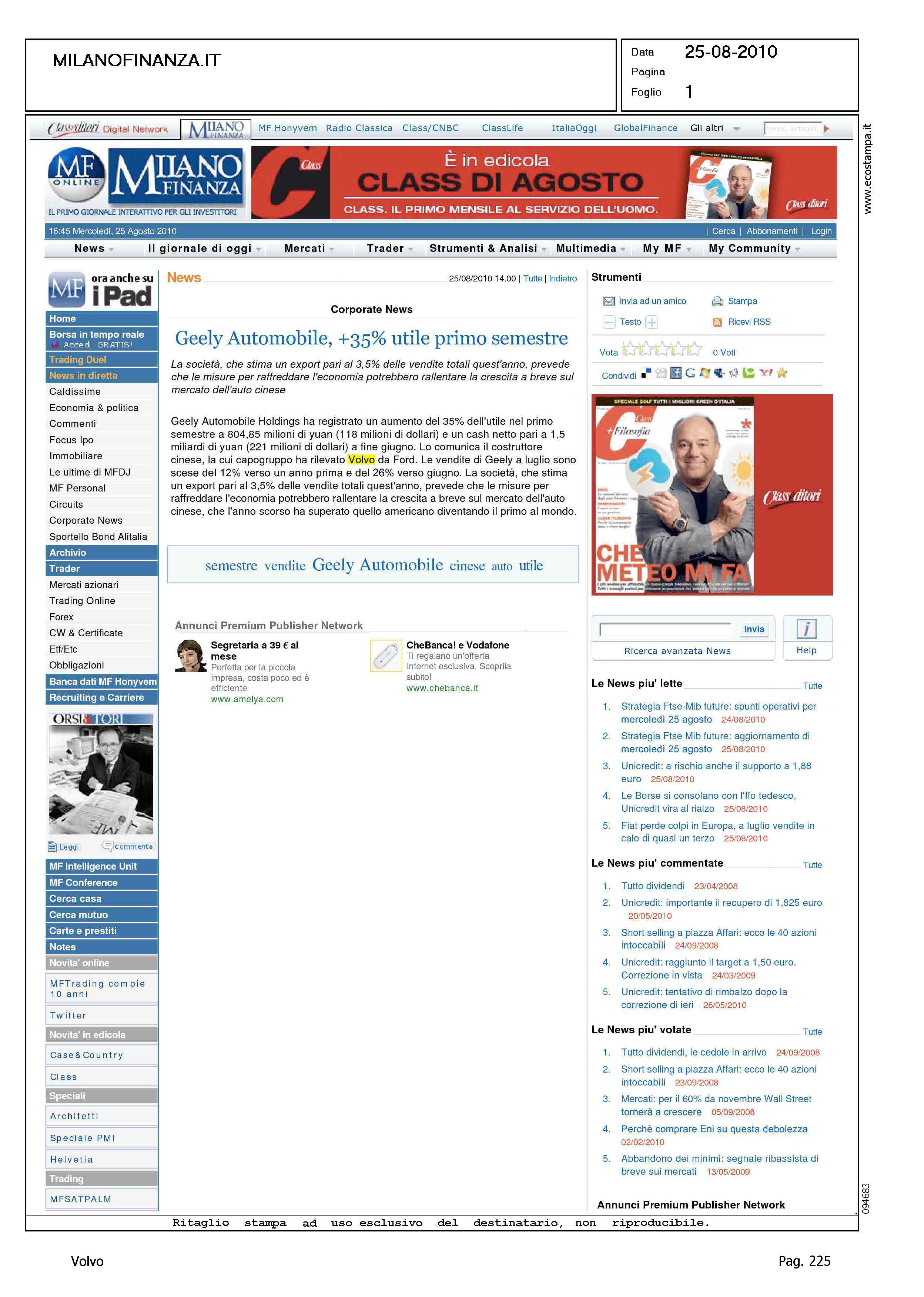Author: Line: Corporate Model: Corporate Subject: - Title: GEELY AUTOMOBILE, +35% UTILE PRIMO TRIMESTREHighlight: GEELY - ECONOMIA - UTILI