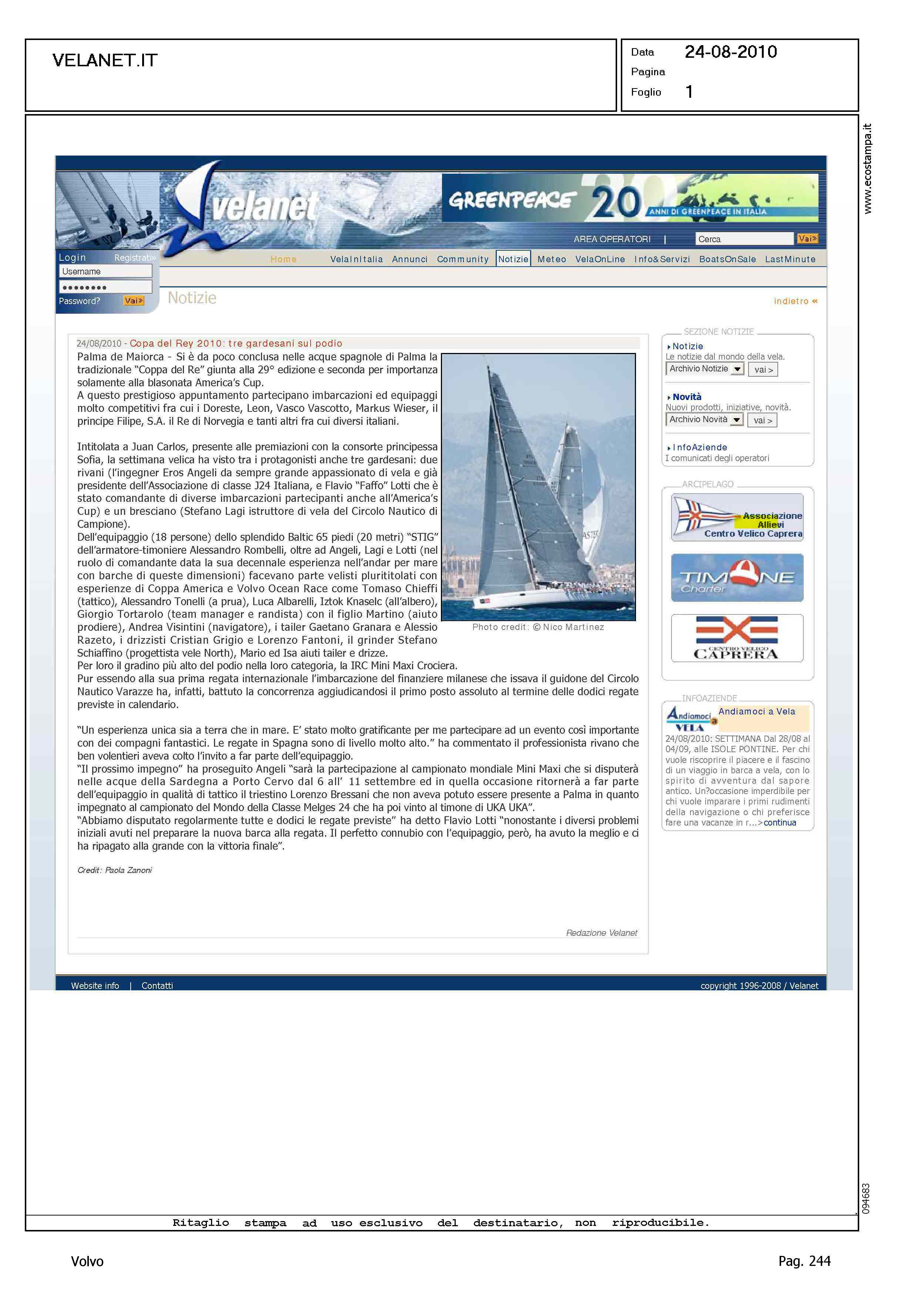 Author: Line: Corporate Model: Corporate Subject: Volvo Cup Title: COPA DEL REY 2010: TRE GARDESANI SUL PODIOHighlight: REGATE COPA DEL REY