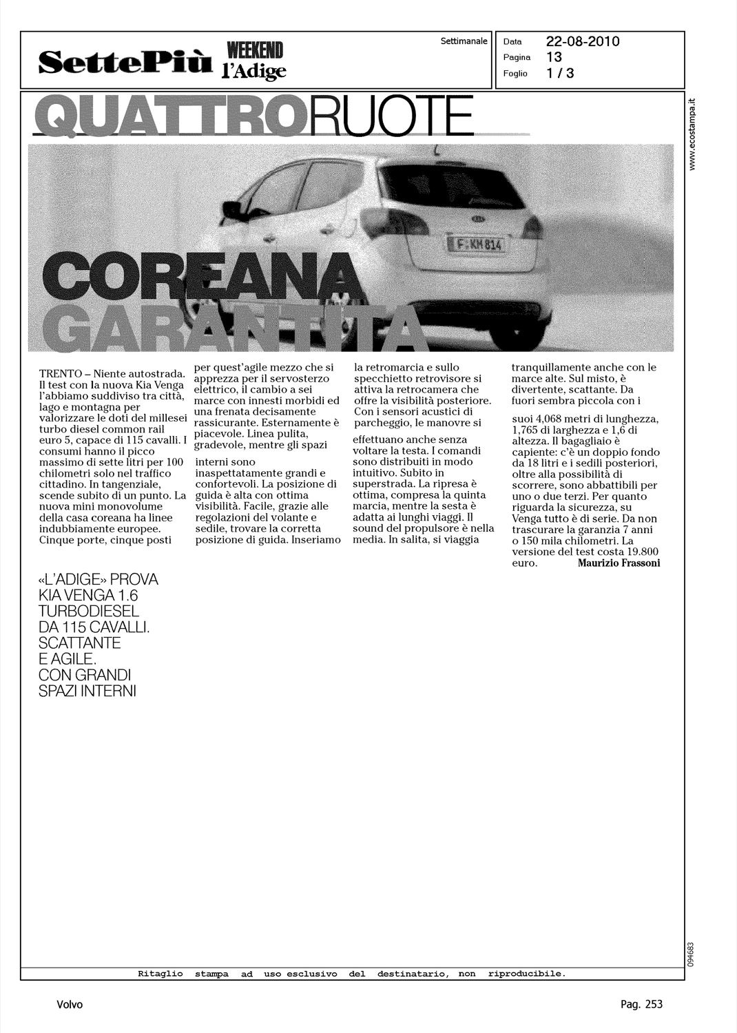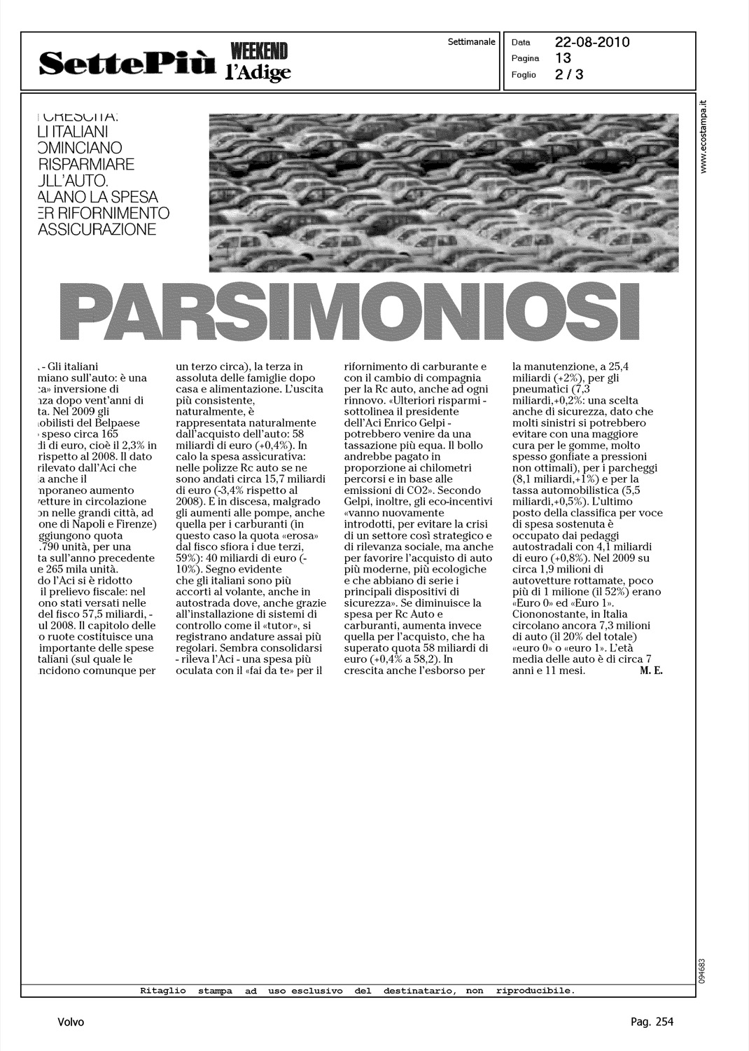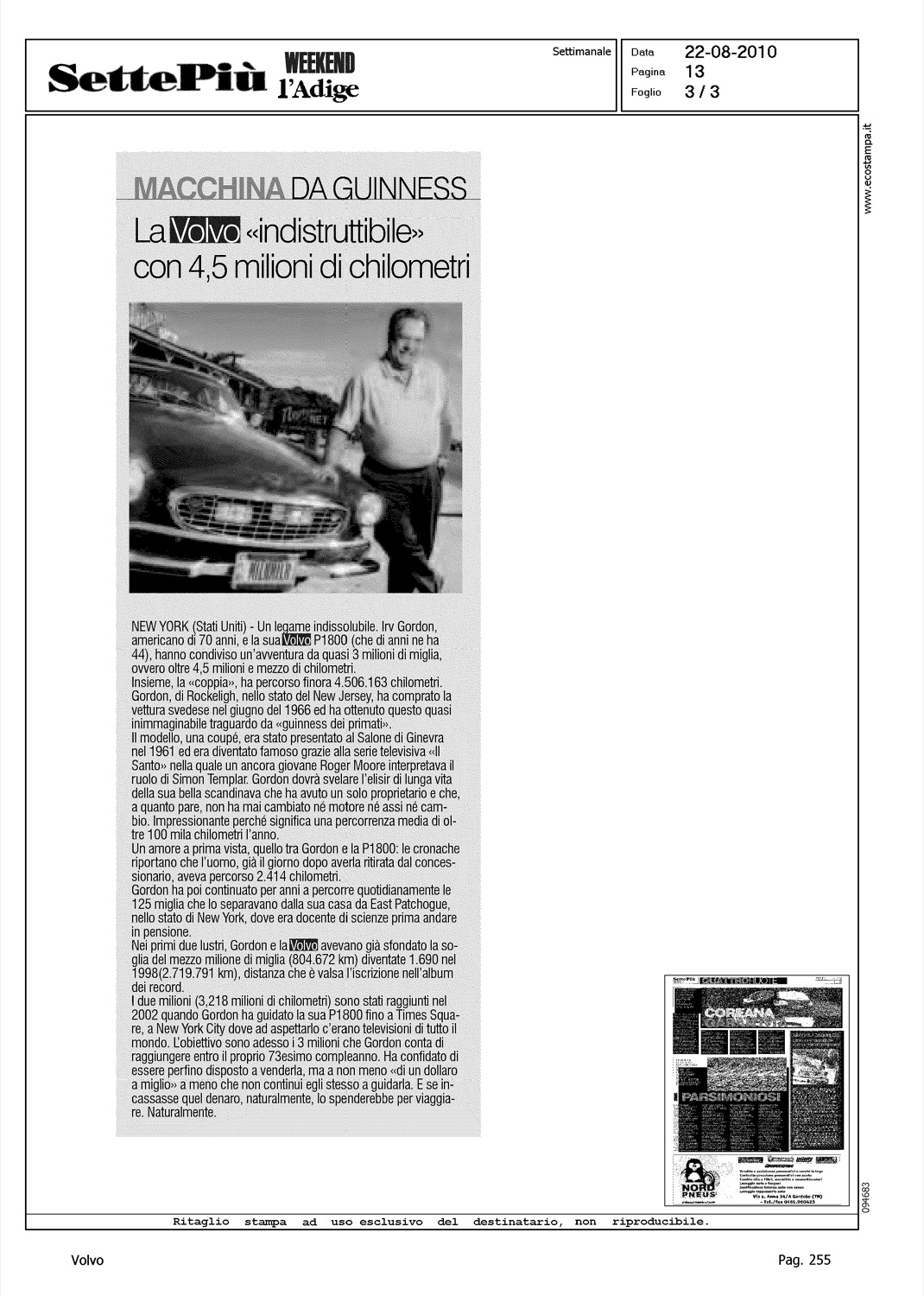 Author: FRASSONI, MAURIZIOLine: Corporate Model: Corporate Subject: - Title: MACCHINA DA GUINNESS - LA VOLVO 'INDISTRUTTIBILE' CON 4,5 MILIONI DI CHILOMETRIHighlight: VOLVO P1800 - IRV GORDON - 4.5 MILIONI KM