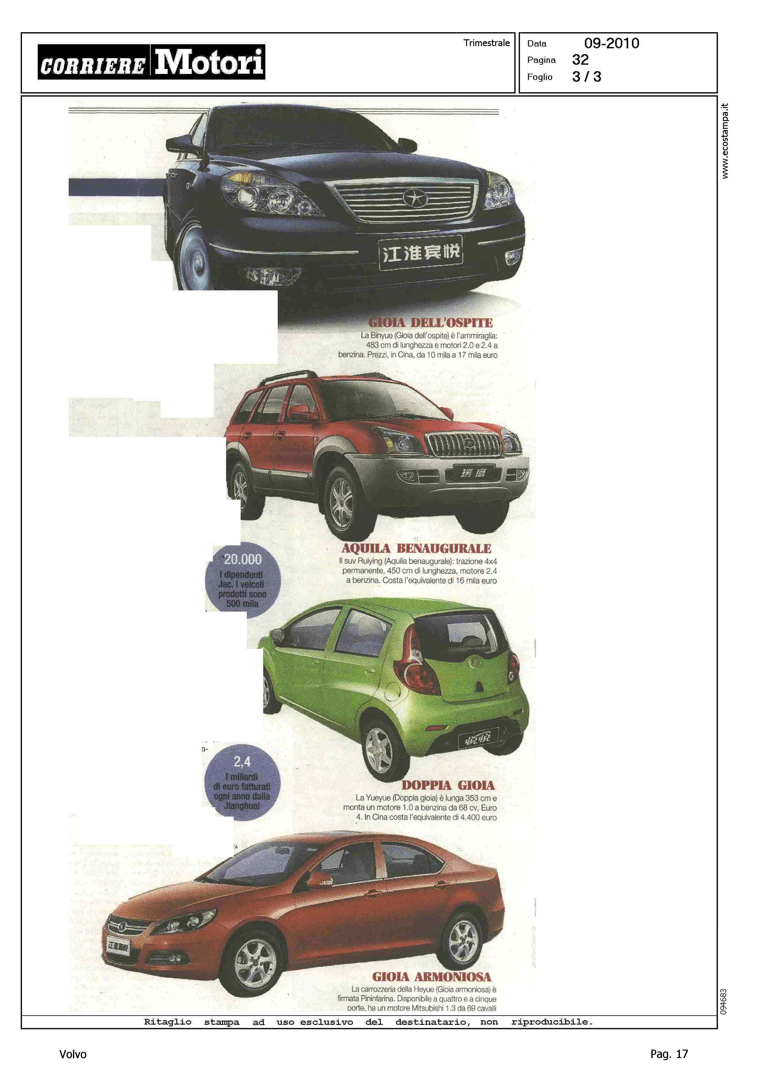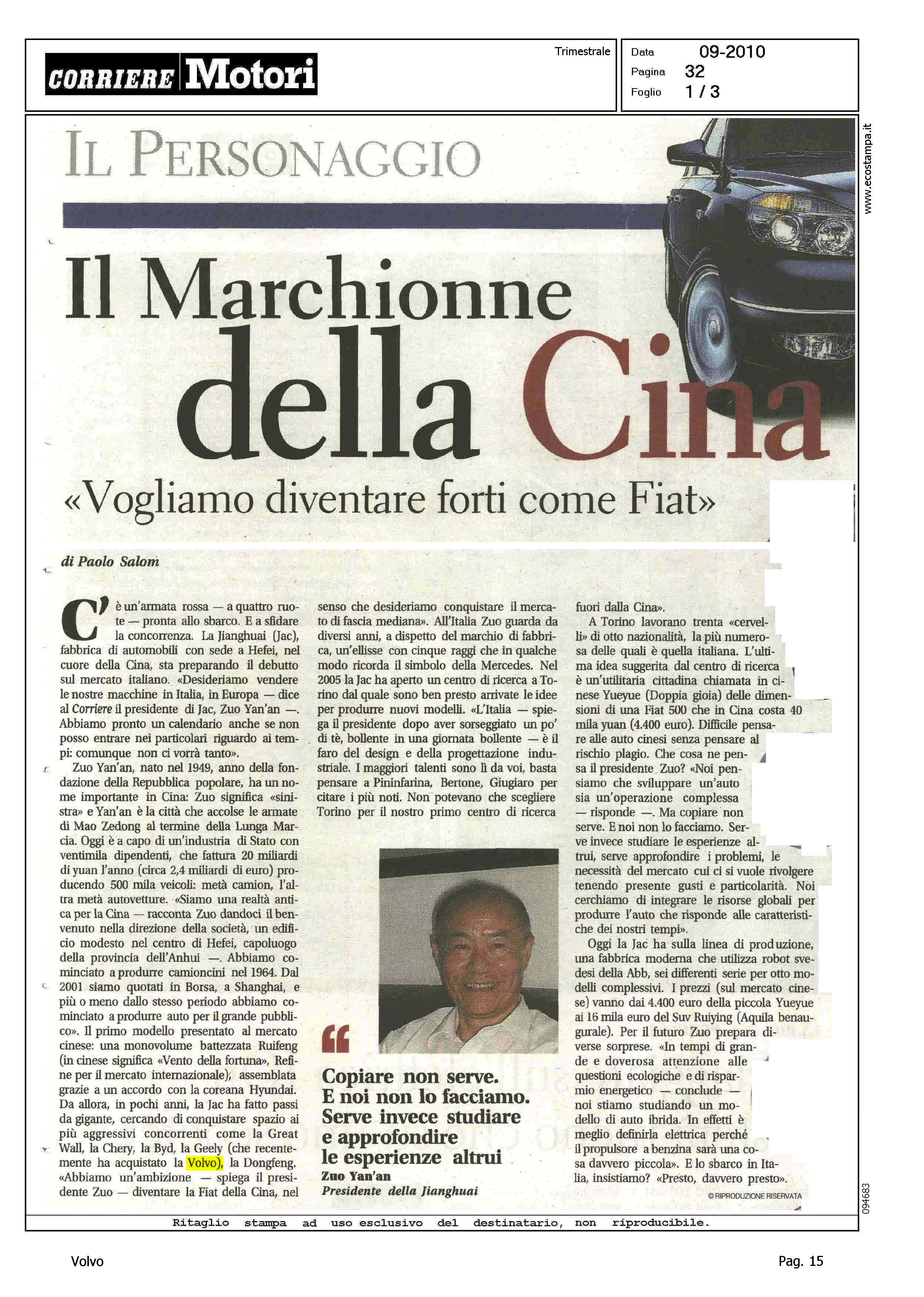 Author: SALOM, PAOLOLine: Corporate Model: Corporate Subject: - Title: IL PERSONAGGIO - IL MARCHIONNE DELLA CINAHighlight: GEELY - INDUSTRIA AUTO IN CINA - JAC