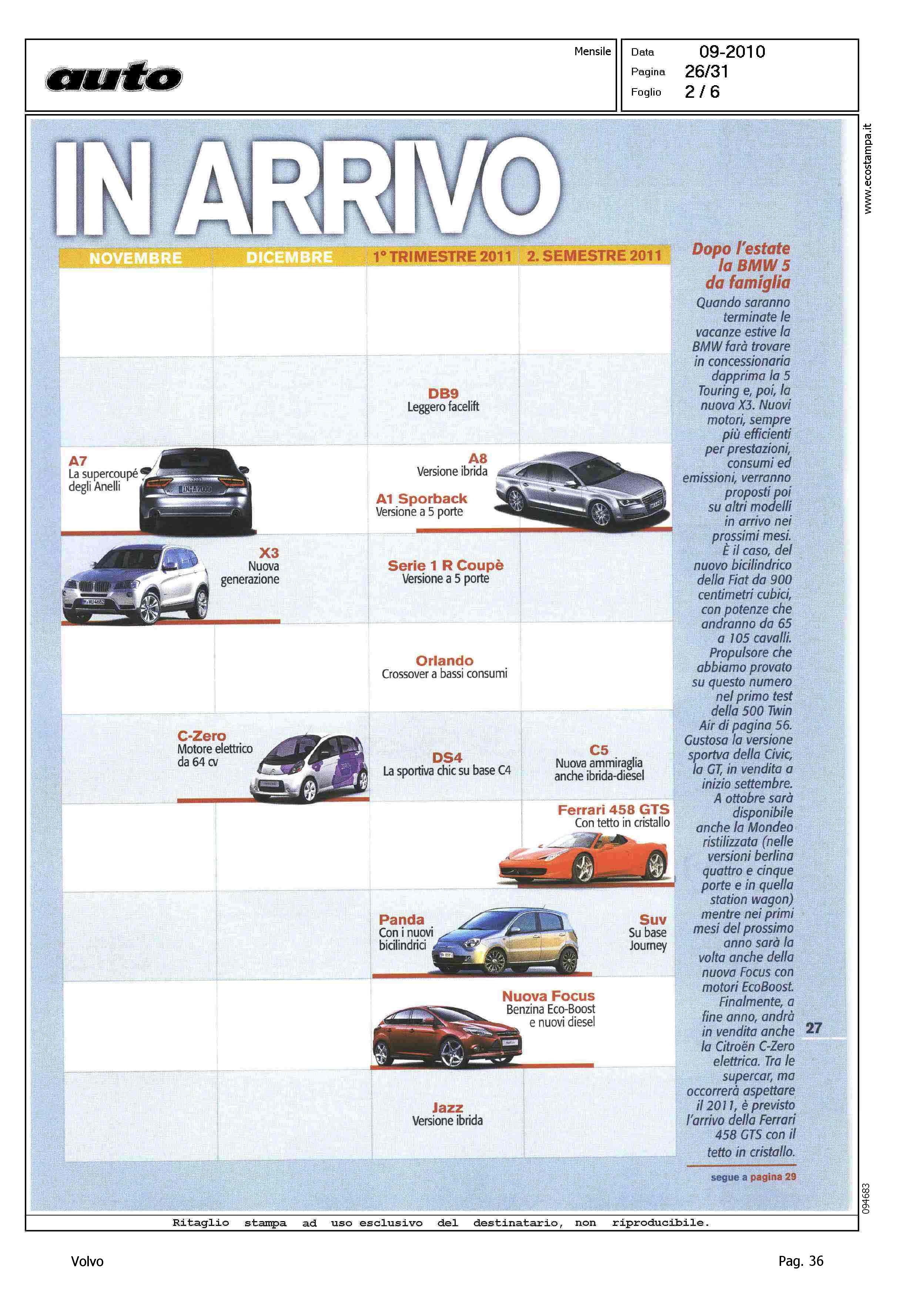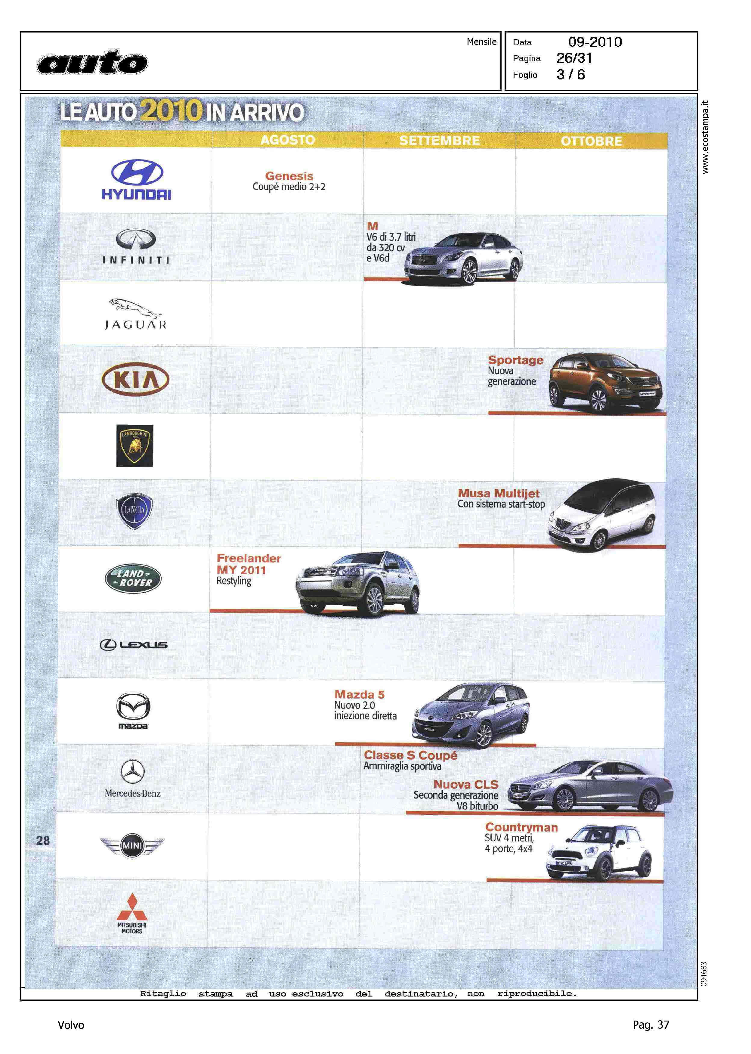 Author: Line: Corporate Model: Corporate Subject: - Title: LE AUTO 2010 IN ARRIVOHighlight: CALENDARIO NOVITA' 2010, 2011 - DICEMBRE NUOVA V60