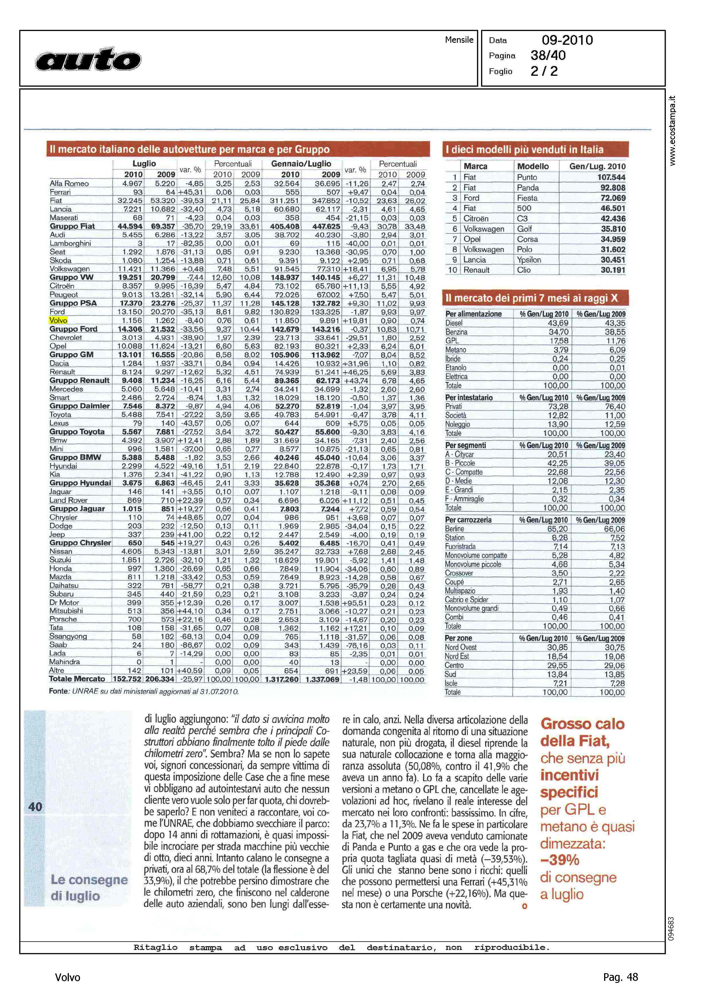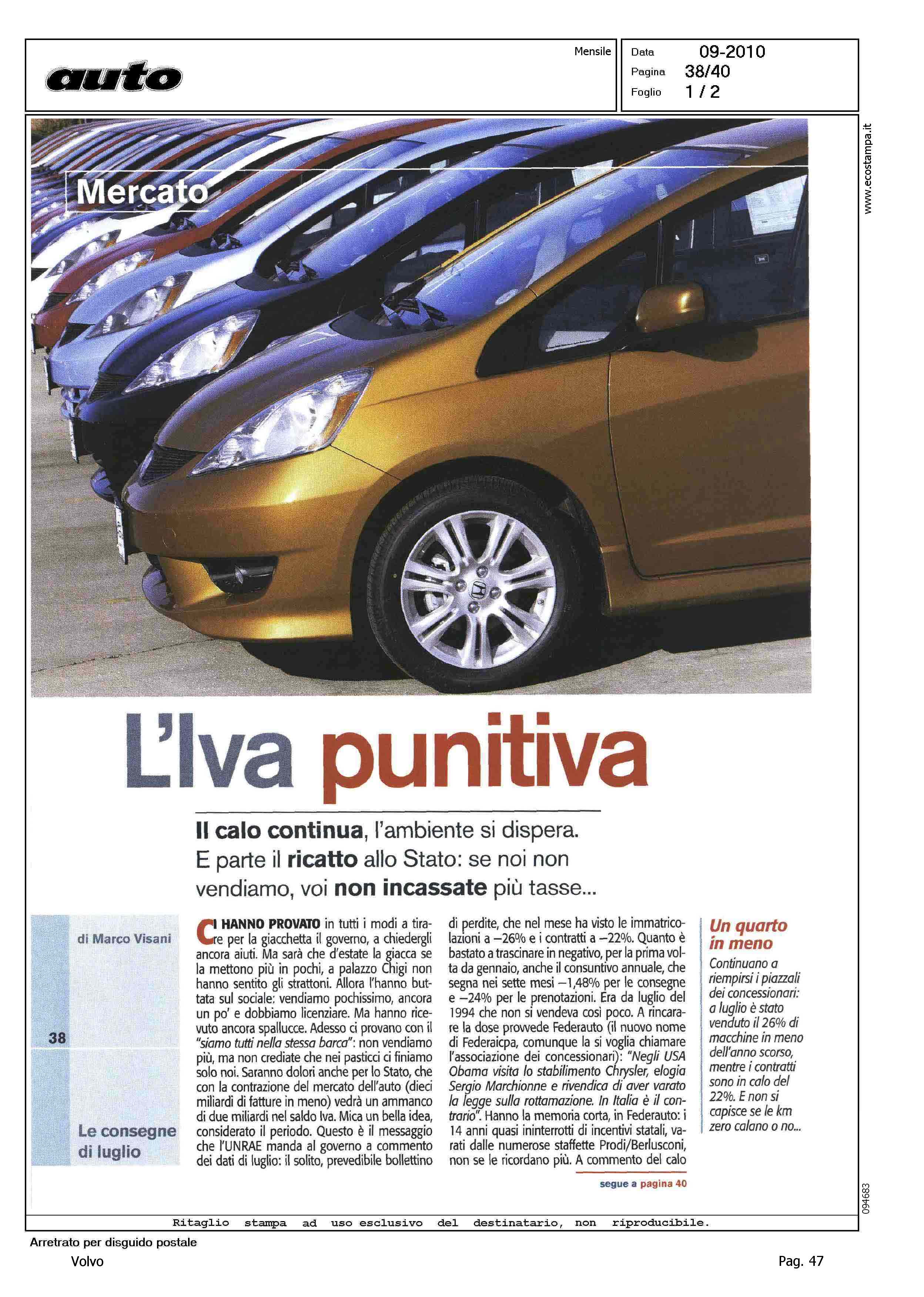 Author: VISANI, MARCOLine: Corporate Model: Corporate Subject: - Title: L'IVA PUNITIVAHighlight: MERCATO ITALIA -CONSEGNE DI LUGLIO - TABELLE - POSIZIONE VOLVO