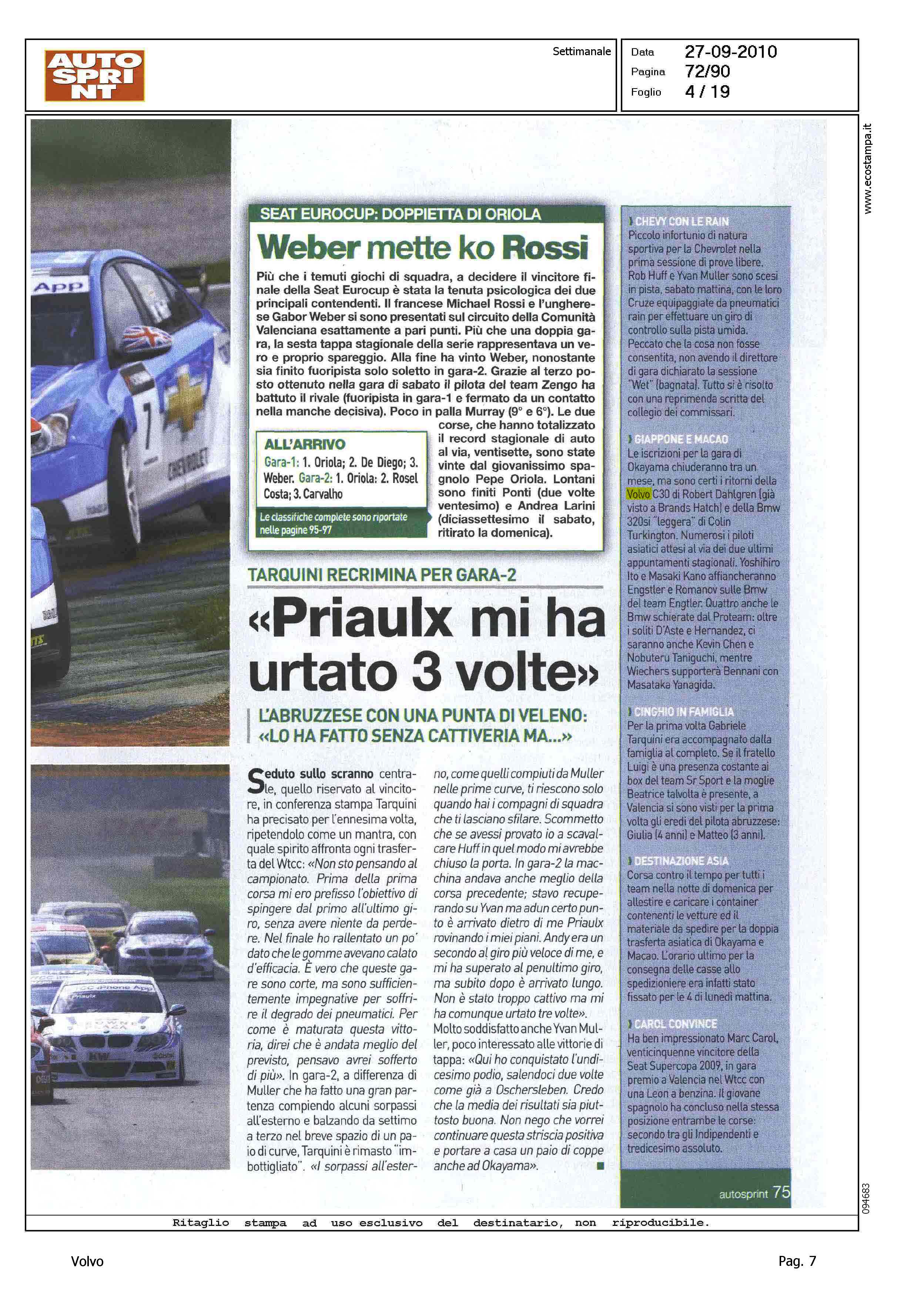 Author: FACCINI, VALERIOLine: Corporate Model: Corporate Subject: - Title: WTCC - GIAPPONE E MACAOHighlight: VOLVO C30 - WTCC - GARA DI OKAYAMA