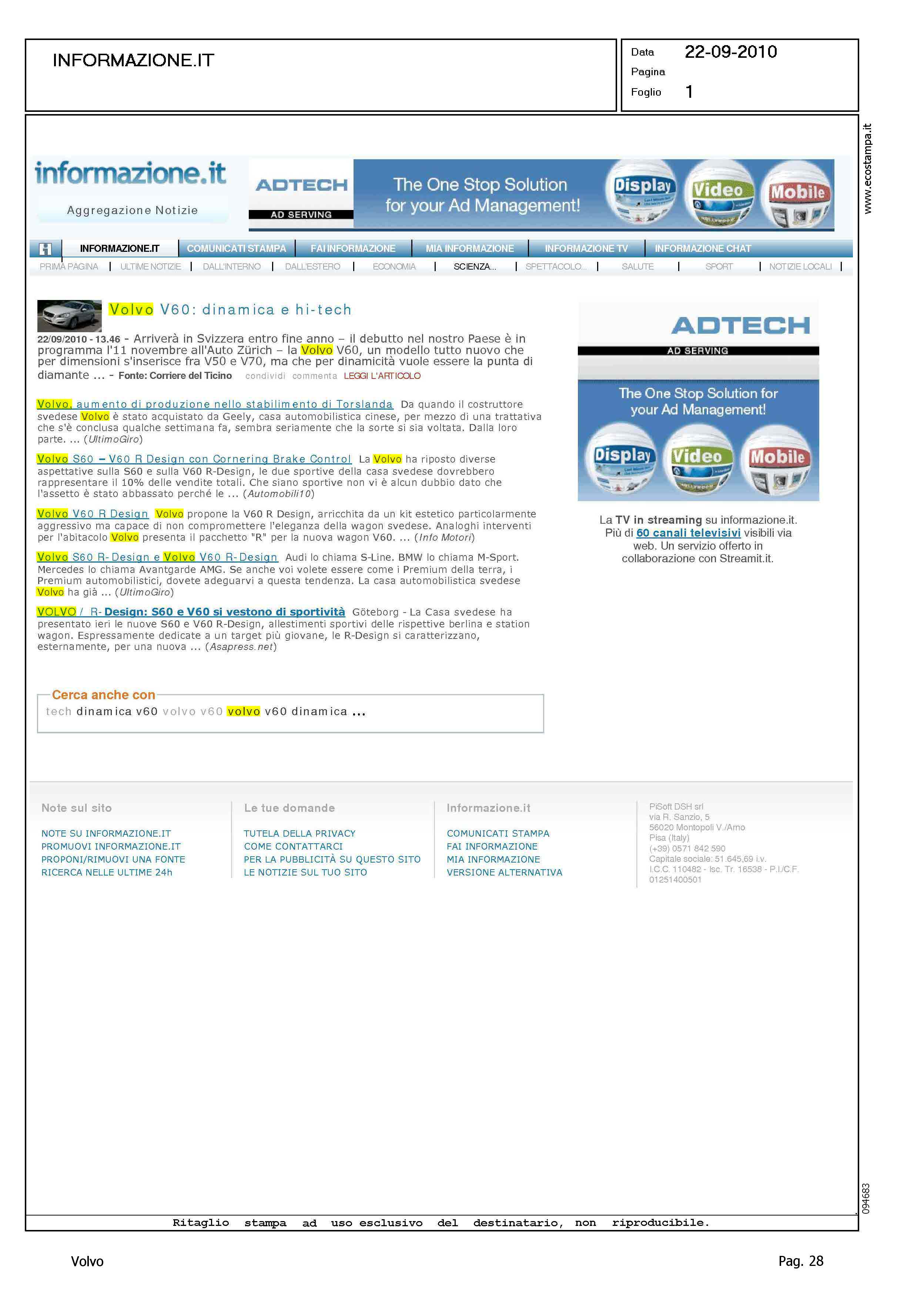 Highlight: AGGREGATORE DI NOTIZIE ON LINE - SEI NOTIZIE - VOLVO V60 - VOLVO V60 R DESIGN - PRODUZIONE TORSLANDA