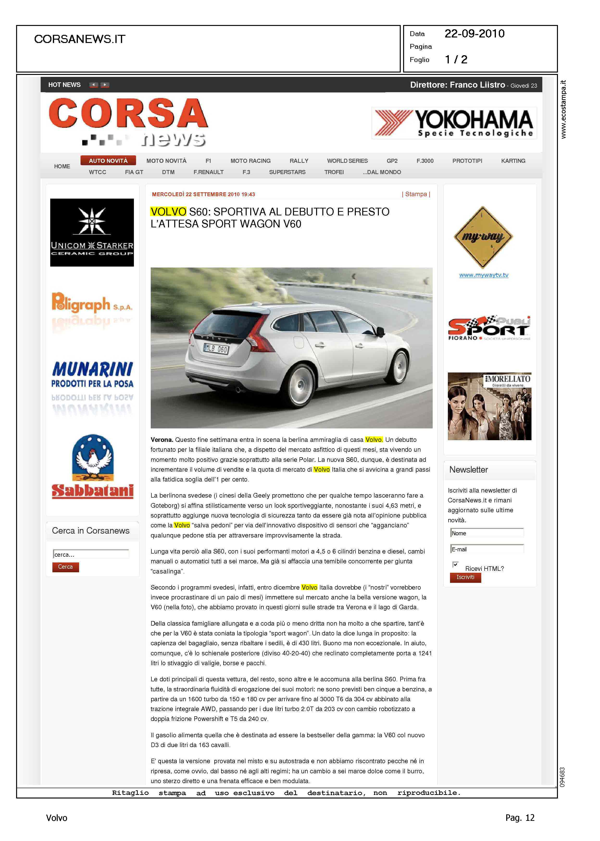 Title: VOLVO S60: SPORTIVA AL DEBUTTO E PRESTO L'ATTESA SPORT WAGON V60