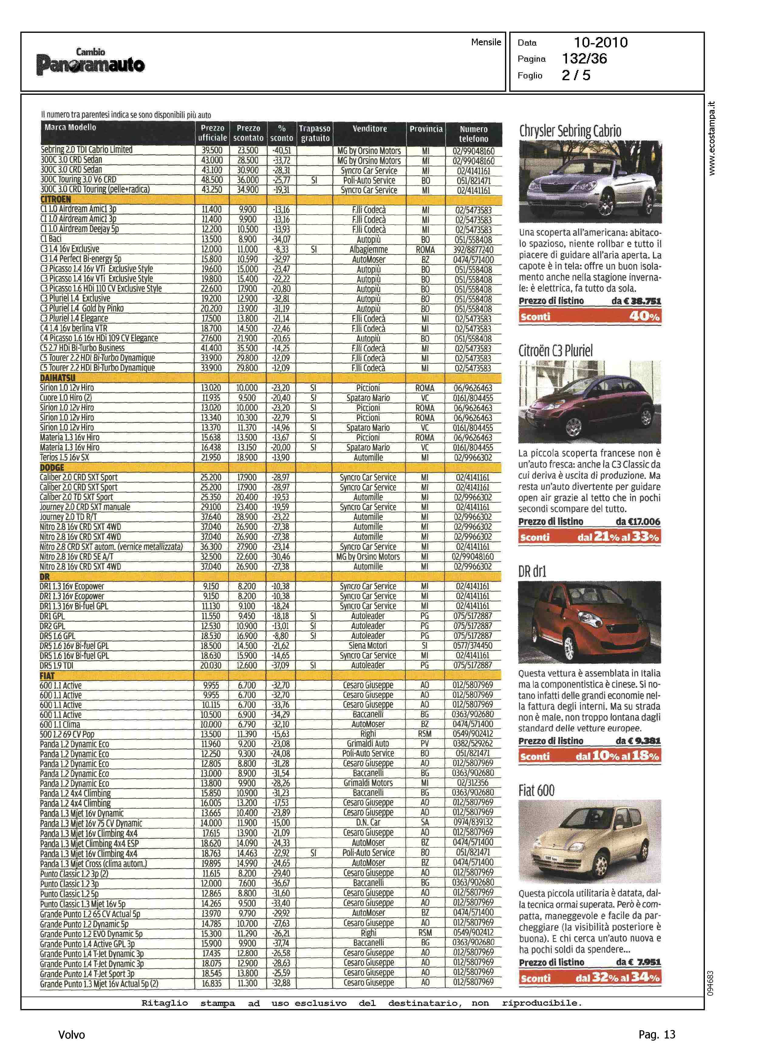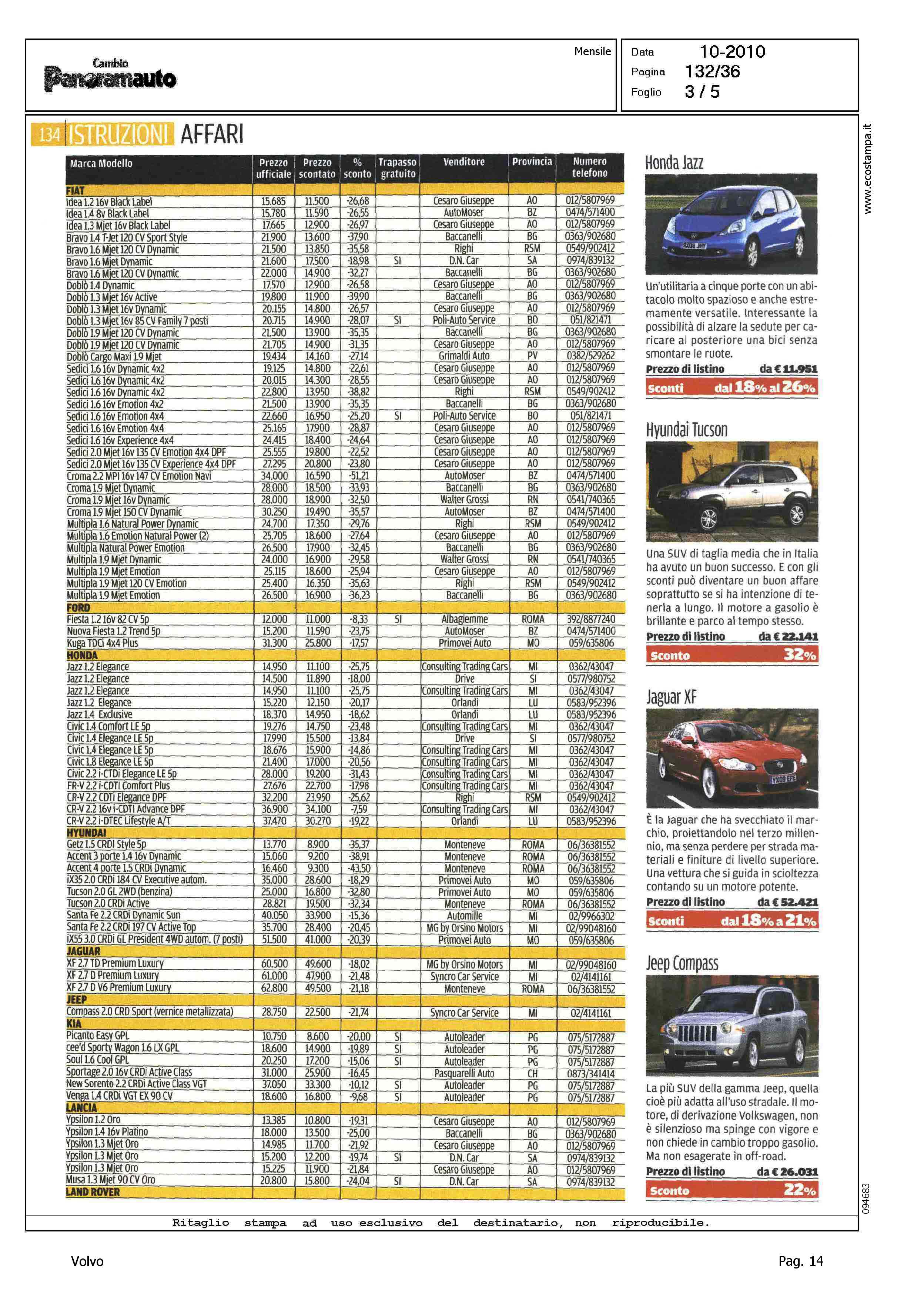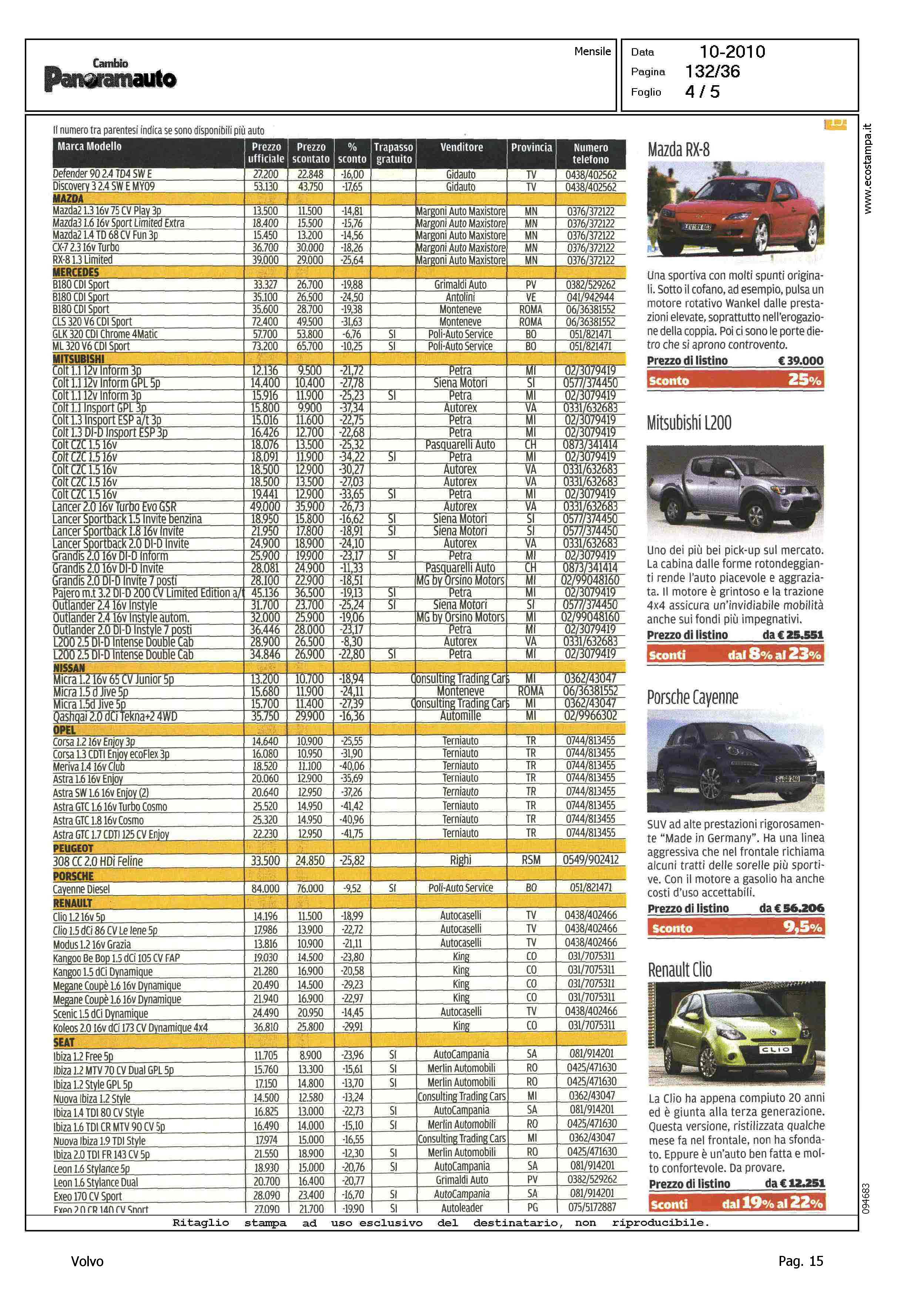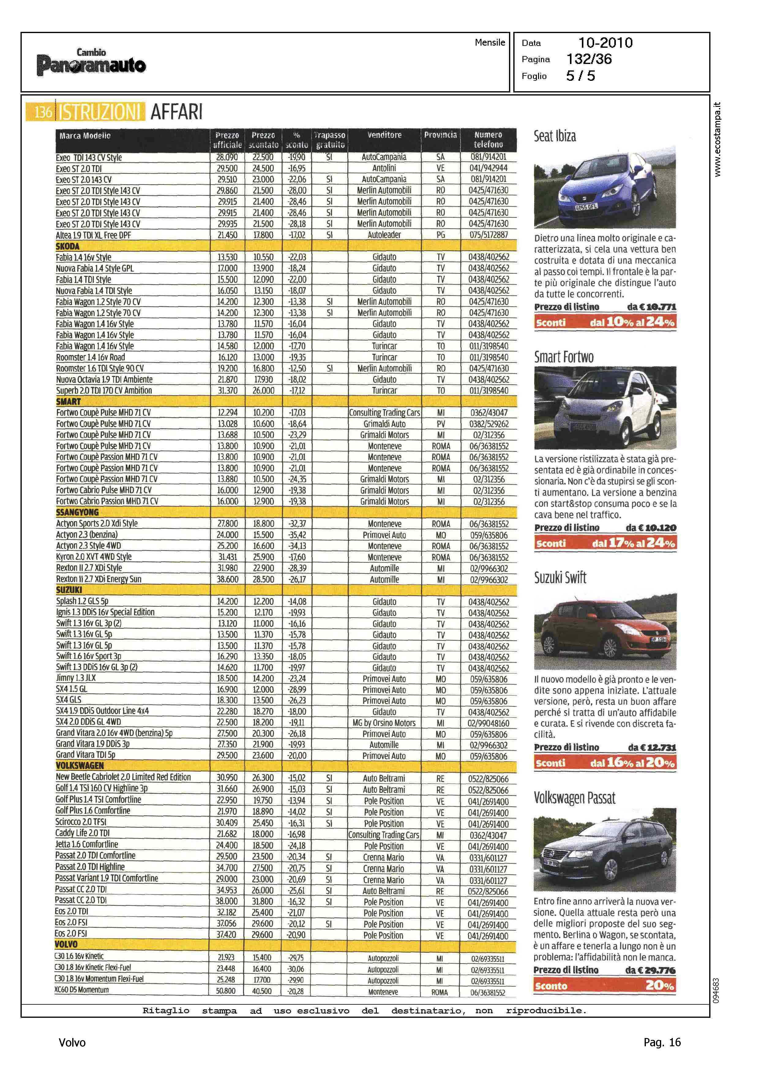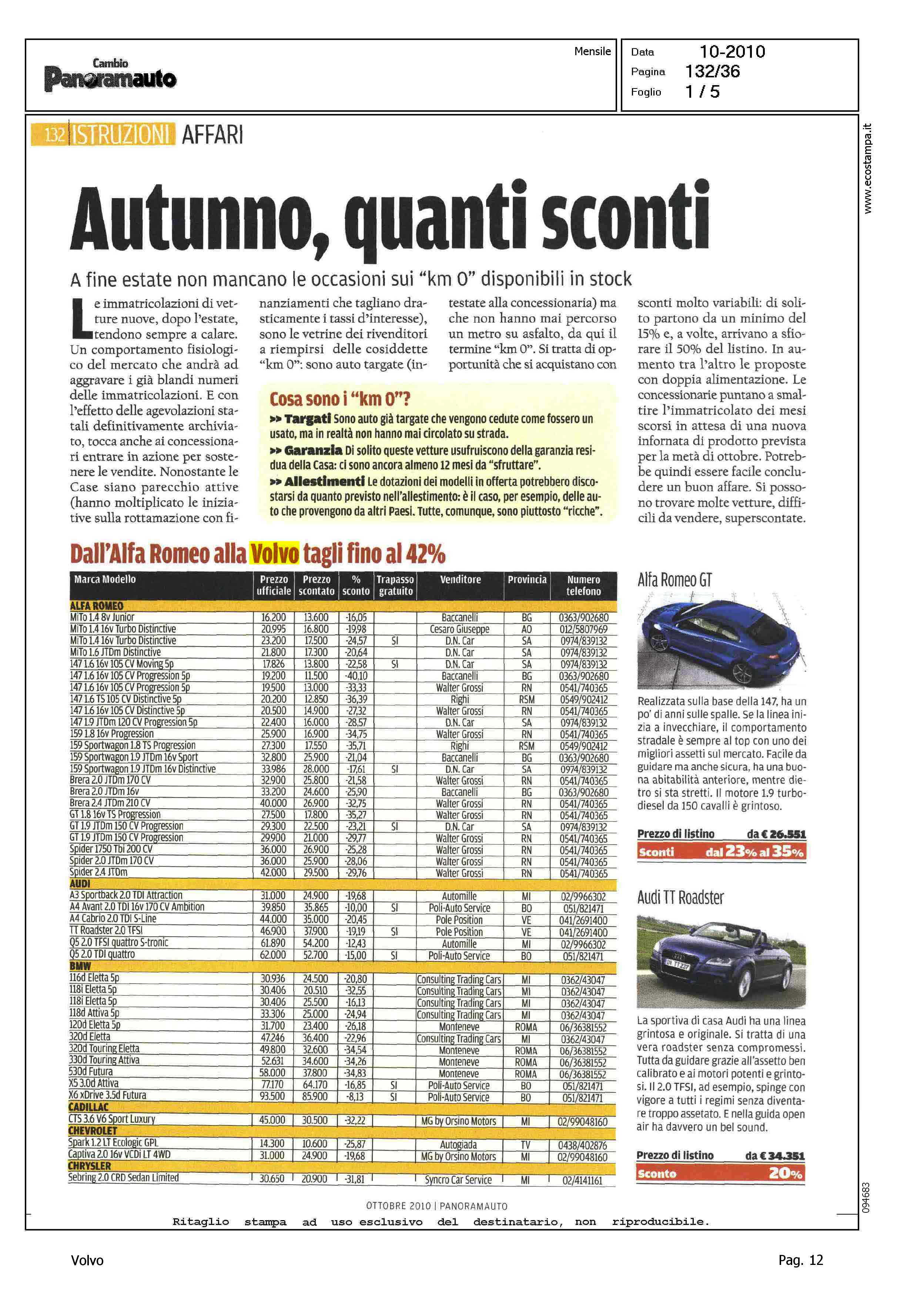 Author: Line: Corporate Model: Corporate Subject: - Title: AUTUNNO, QUANTI SCONTI - DALL'ALFA ROMEO ALLA VOLVO TAGLI FINO AL 42%Highlight: MERCATO ITALIA - PROMOZIONI DELLE CASE - SCONTI - TABELLE PER MARCA