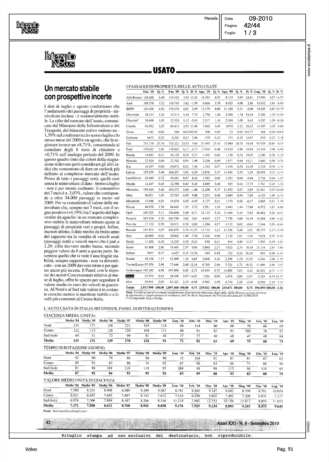 Author: Line: Corporate Model: Corporate Subject: - Title: USATO - UN MERCATO STABILE CON PROSPETTIVE INCERTEHighlight: USATO - TABELLE - POSIZIONE VOLVO