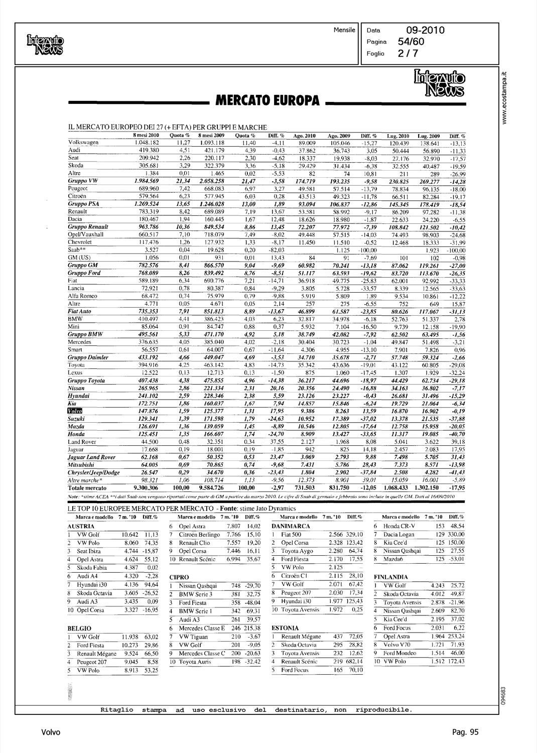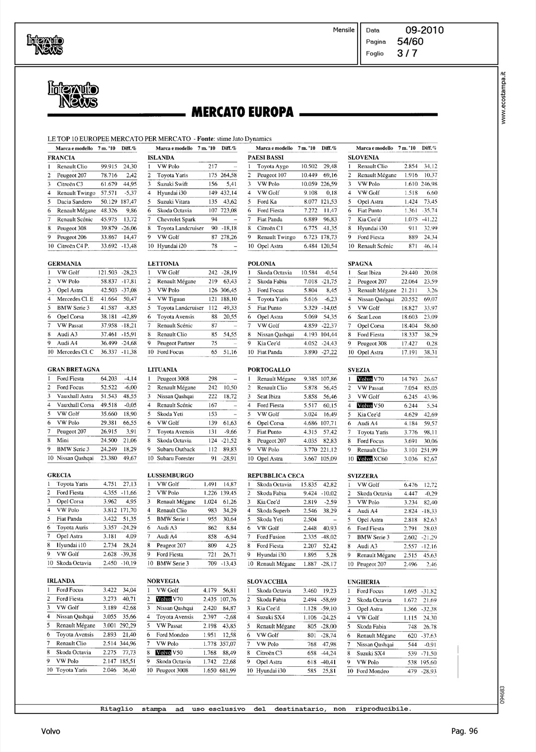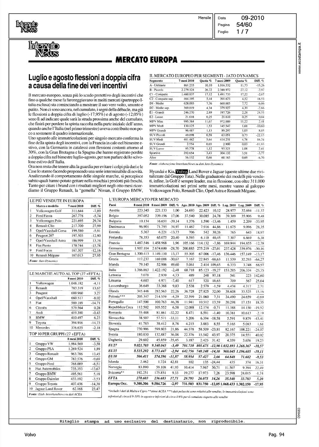 Author: Line: Corporate Model: Corporate Subject: - Title: MERCATO EUROPA - LUGLIO E AGOSTO FLESSIONI A DOPPIA CIFRA A CAUSA DELLA FINE DEI VERI INCENTIVIHighlight: MERCATO EUROPA - TABELLE - POSIZIONE VOLVO