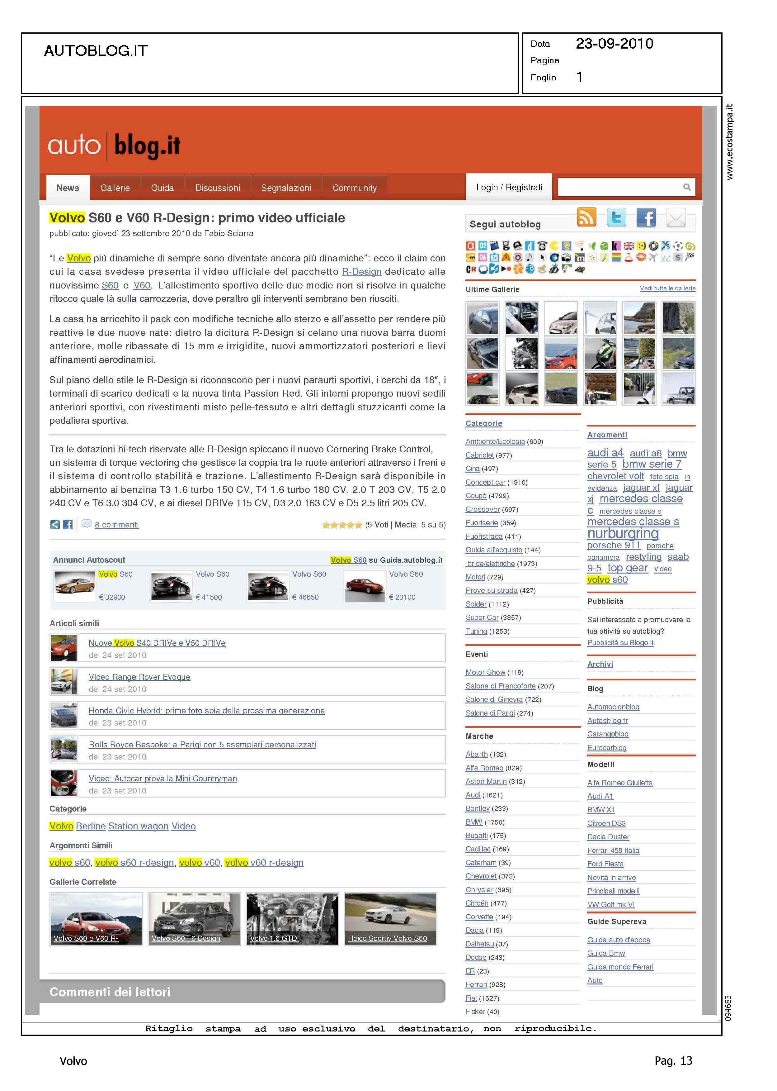 Highlight: R DESIGN - VIDEO - ASSETTO - STERZO - AERODINAMICA - DESIGN - ACCESSORI - ACCESSORI SICUREZZA DINAMICA DI MARCIA - MOTORI