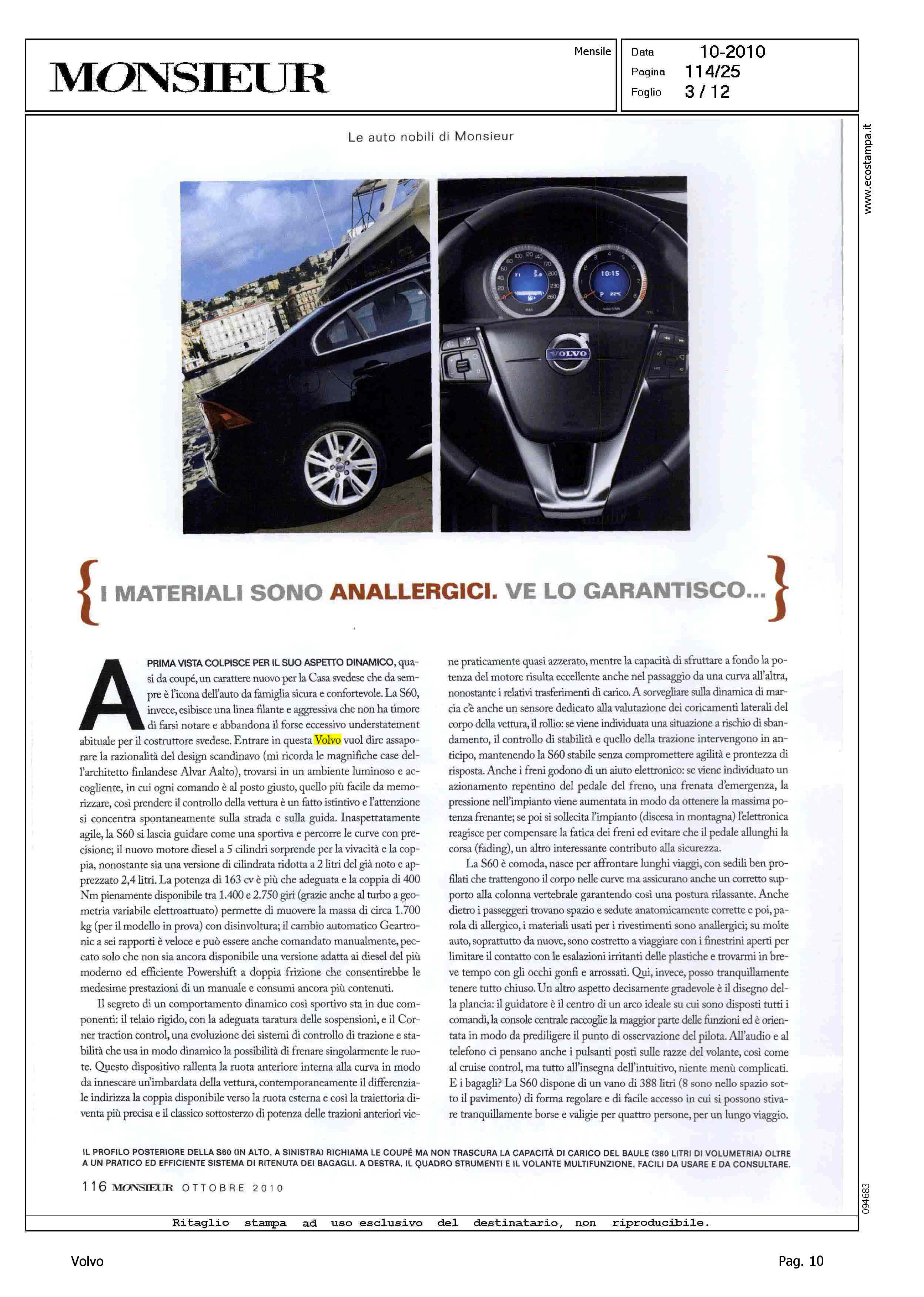 Line: S60 Model: Linea S60 Testdrive Subject: -