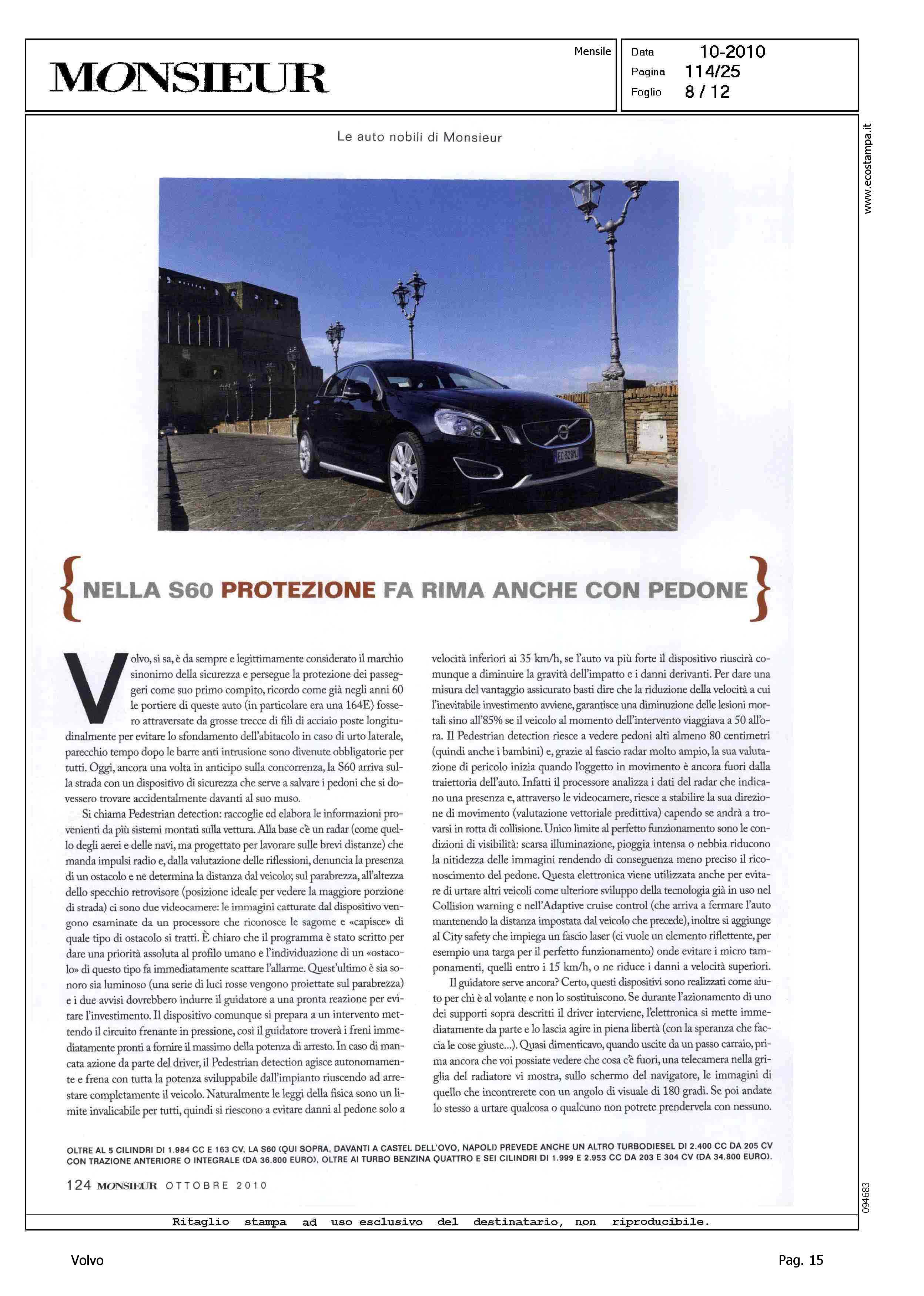 Highlight: DESIGN - MOTORE - CAMBIO - TELAIO - ACCESSORI SICUREZZA DINAMICA DI MARCIA - CONFORT - MATERIALI ANTIALLERGICI - ABITACOLO - INTERNI - AUDIO - BAGAGLIAIO - (ARTICOLO 2) - SICUREZZA - PEDESTRIAN DETECTION - DESCRIZIONE DEL FUNZIONAMENTO - CITY SAFETY
