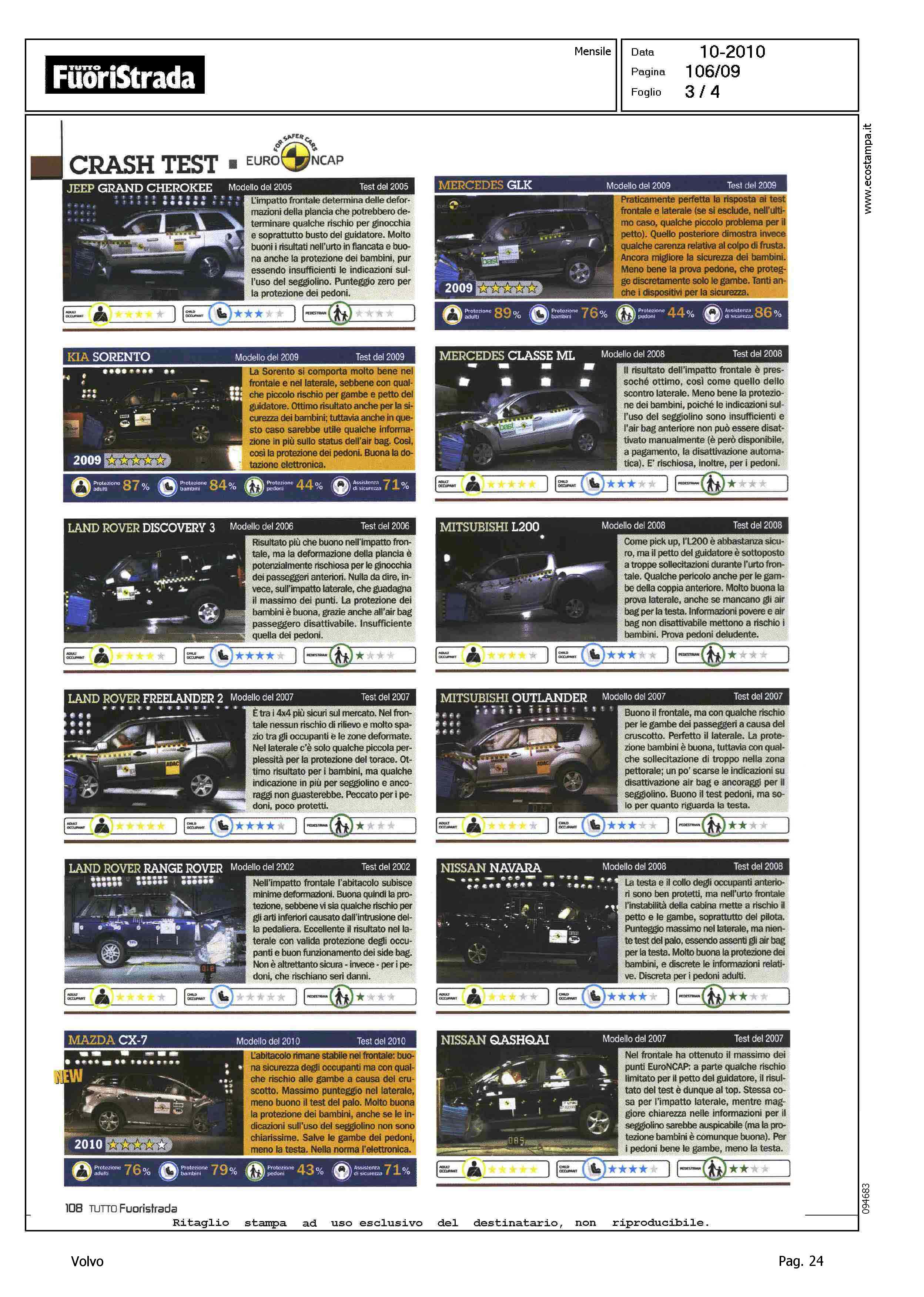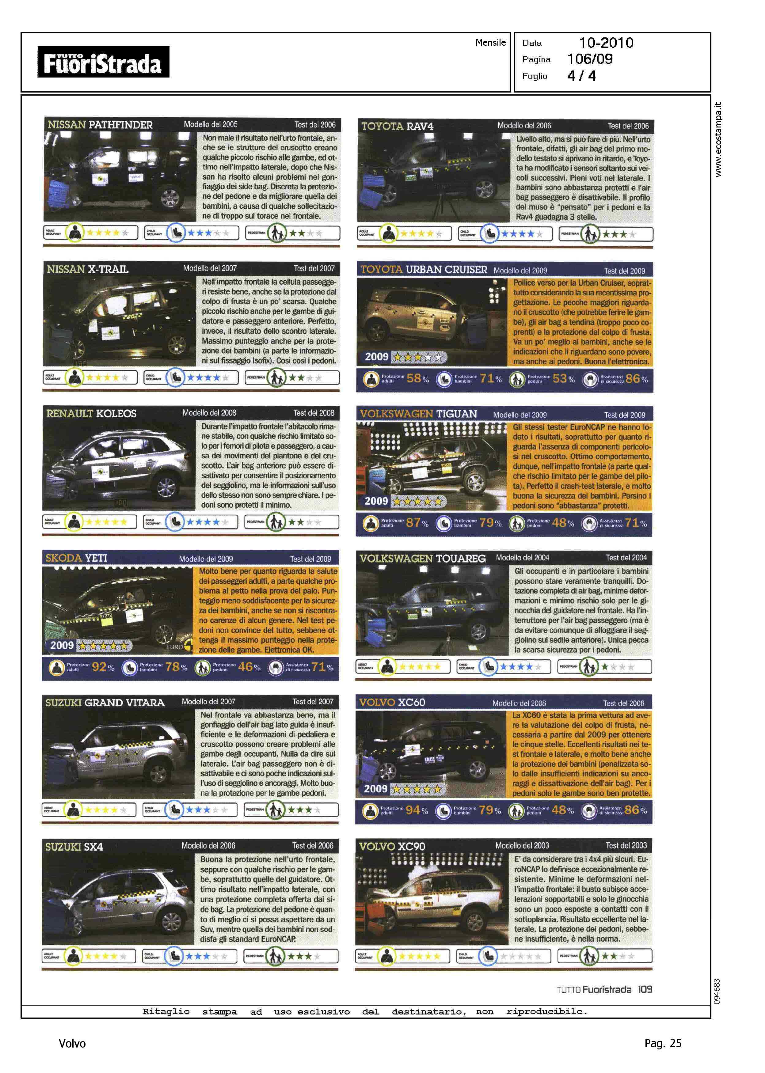 Author: Line: Corporate Model: Corporate Subject: - Title: CRASH TEST - 4X4 E SICUREZZAHighlight: CRASH TEST EURONCAP - VOLVO XC60 - VOLVO XC90 - SCHEDA VALUTAZIONE