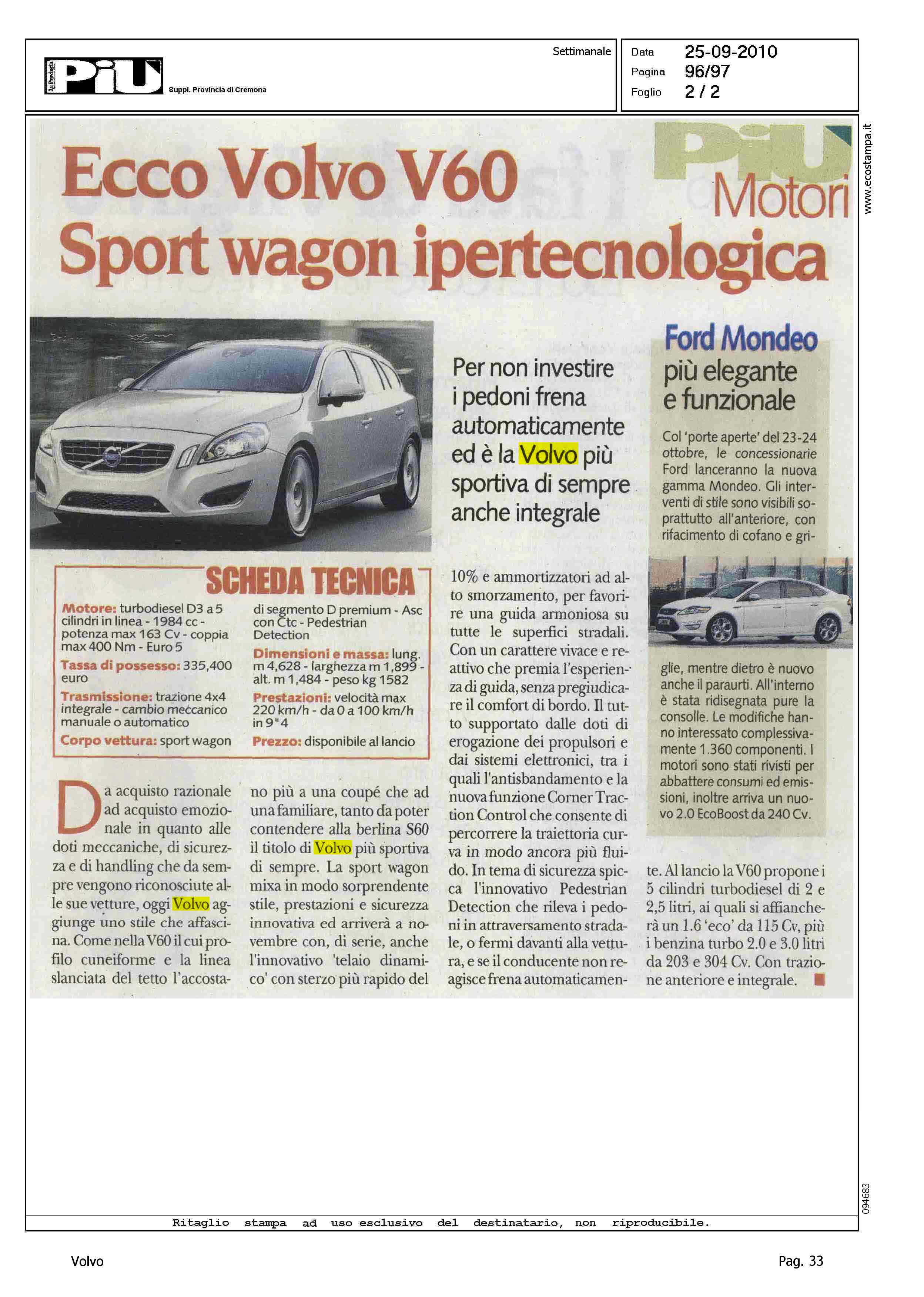 Title: ECCO VOLVO V60 - SPORT WAGON IPERTECNOLOGICA