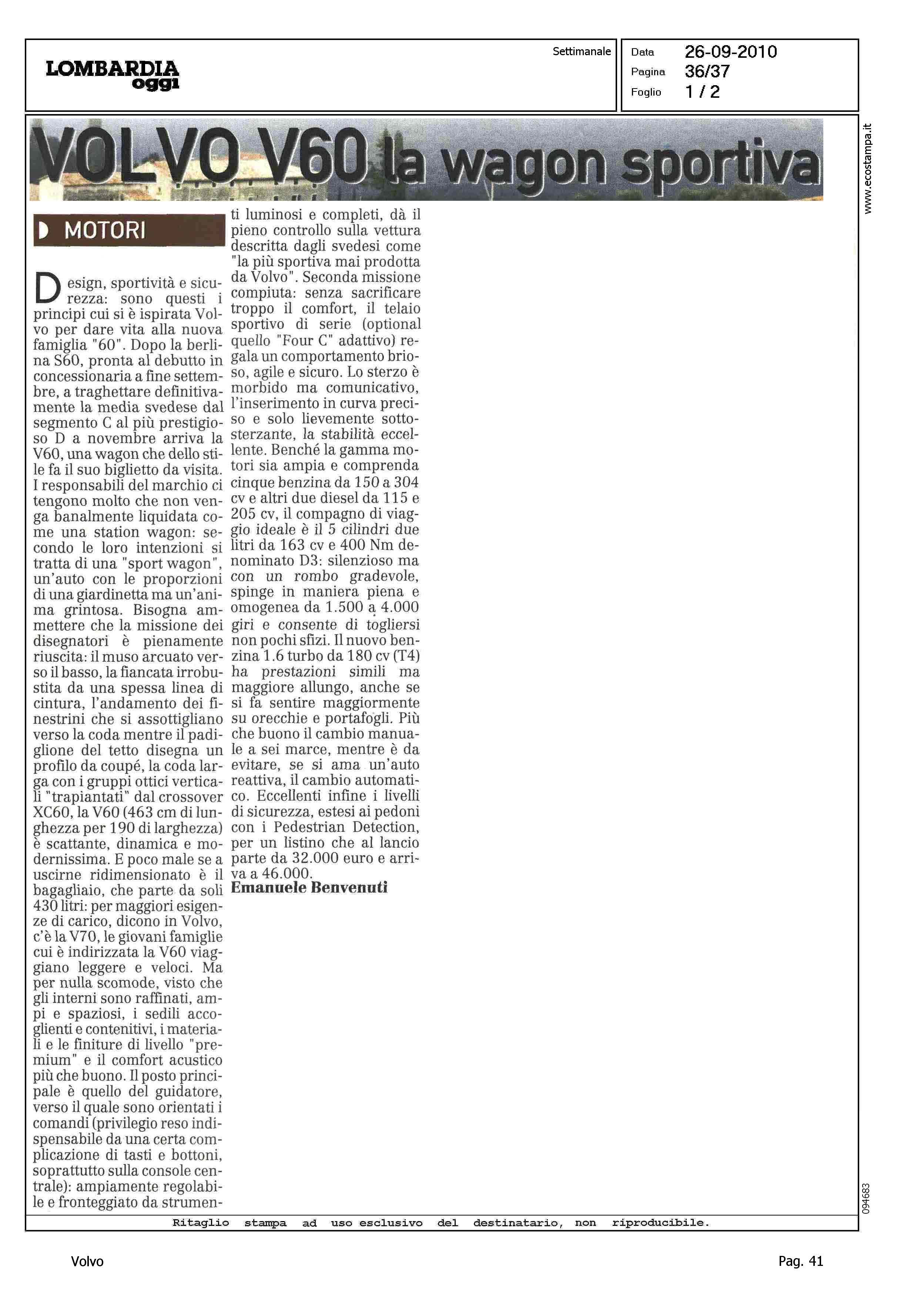 Title: VOLVO V60 LA WAGON SPORTIVA - SICURA ANCHE PER I PEDONI