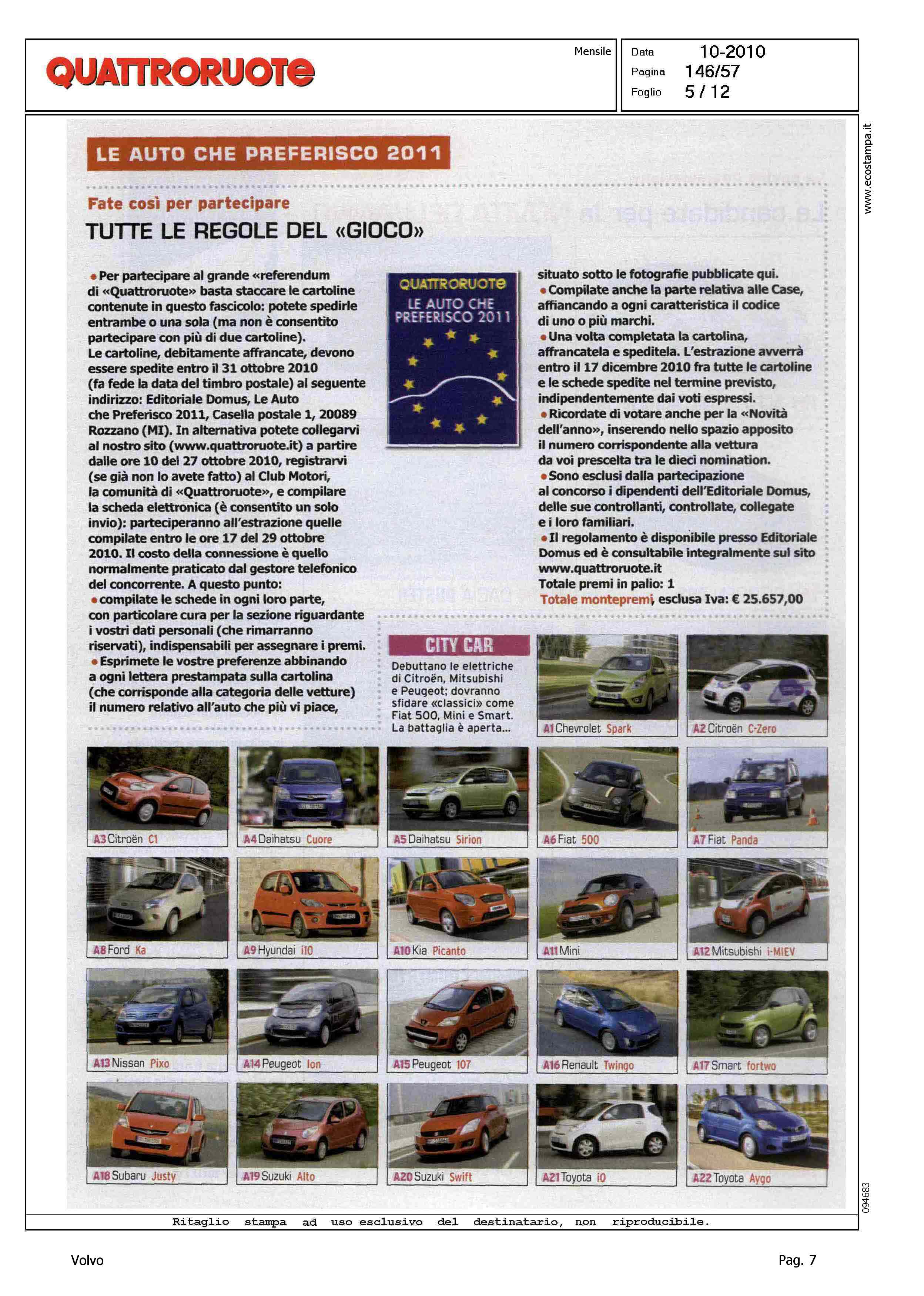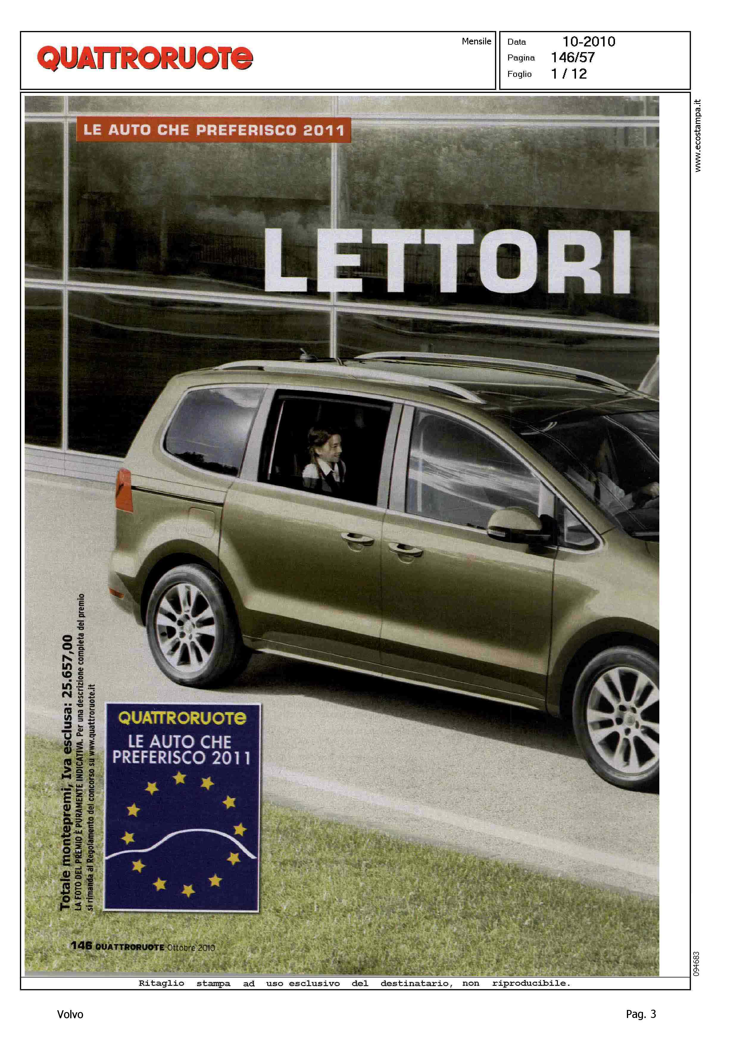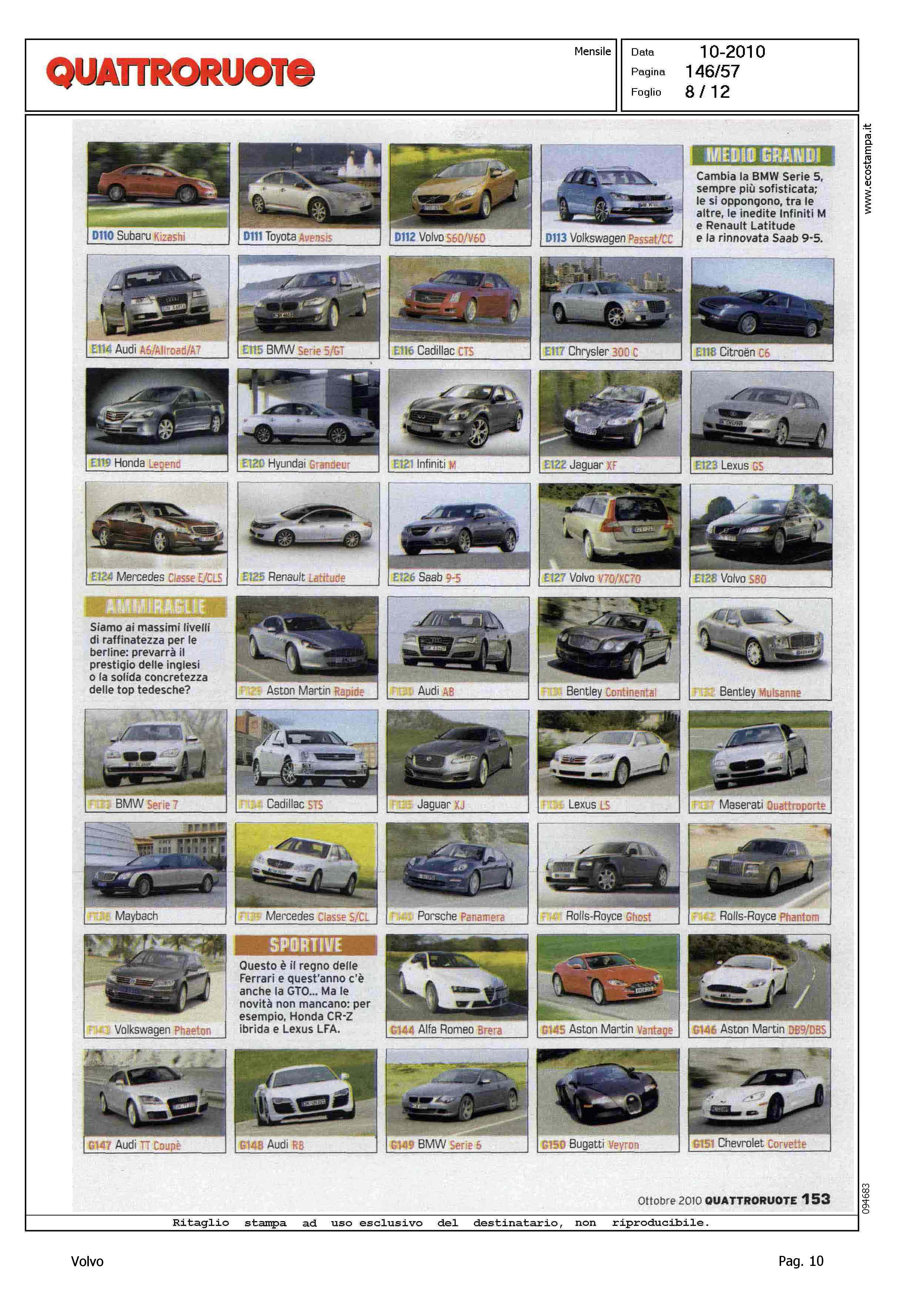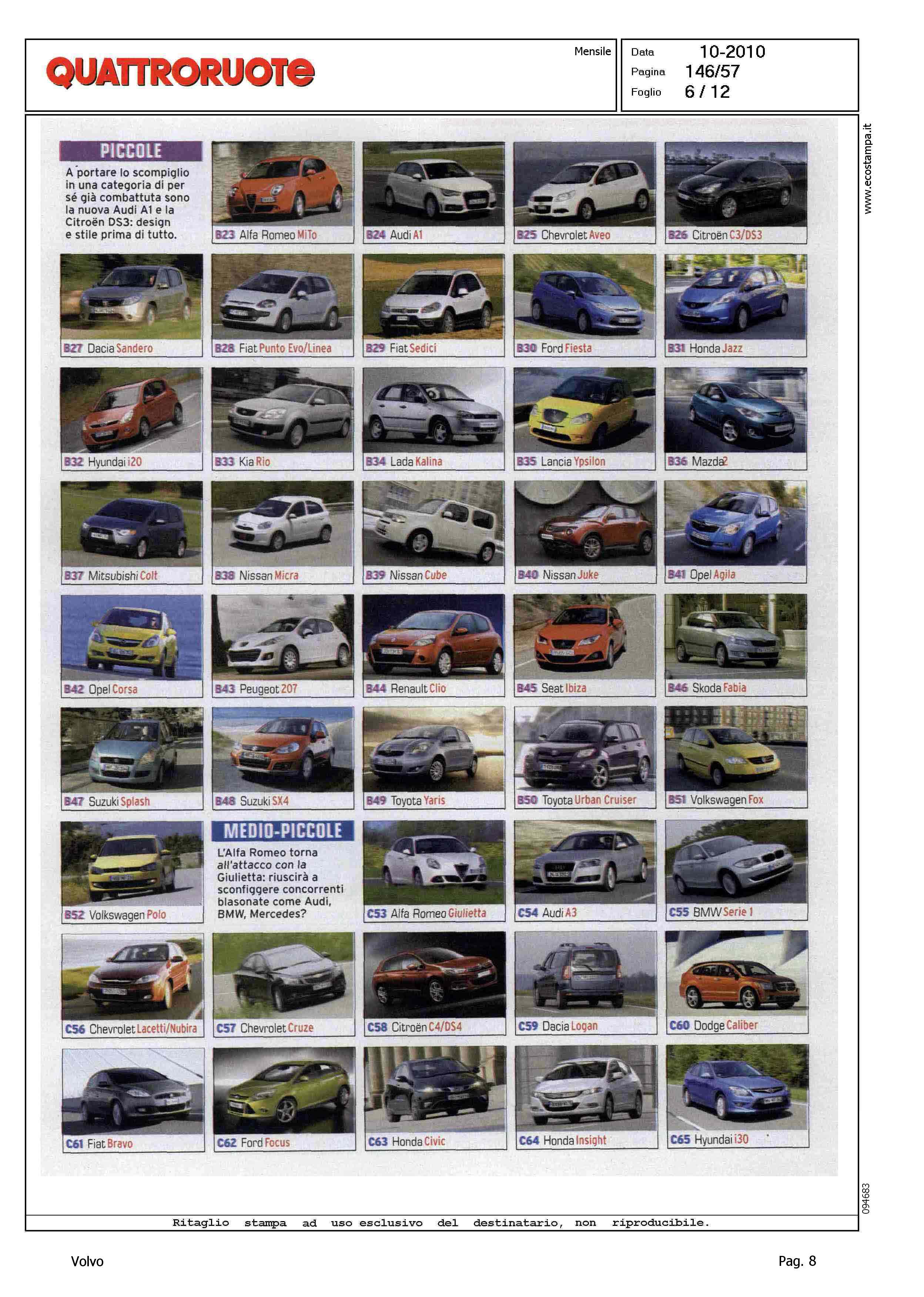 Highlight: (USCITA OTTOBRE) - SONDAGGIO LETTORI - VOTAZIONE MODELLO - PRESENZA VOLVO: CATEGORIA MEDIO-PICCOLE, VOLVO C30, VOLVO S40/V50 - CATEGORIA MEDIE, VOLVO S60 - CATEGORIA MEDIO-GRANDI, VOLVO S60, VOLVO XC70, VOLVO V70 - CATEGORIA CABRIO, VOLVO C70 CONV. - CATEGORIA FUORISTRADA, VOLVO XC60, VOLVO XC90